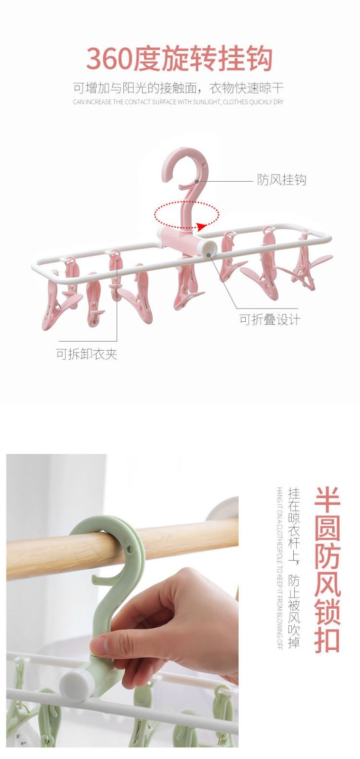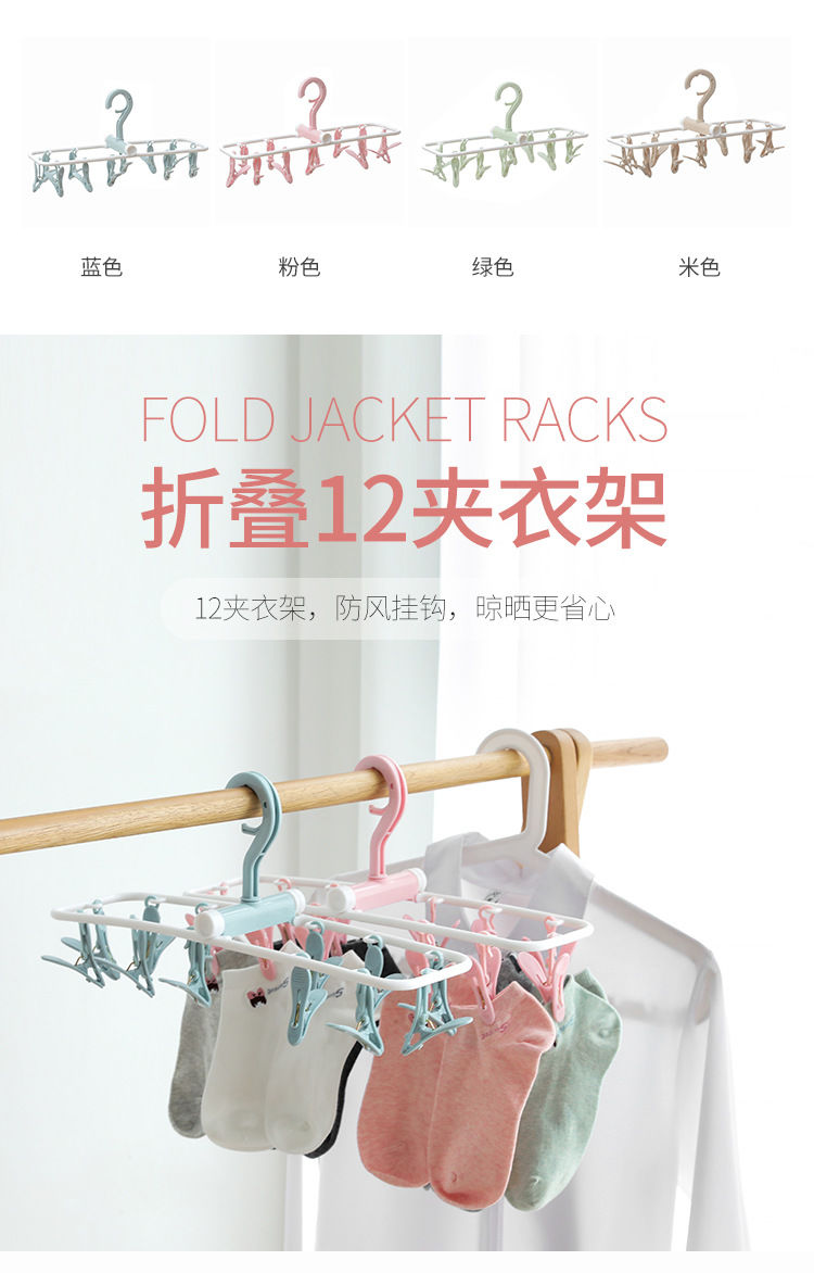 折叠衣架12夹晾袜子衣架家用方形晒衣架防风宿舍学生儿童成人架挂