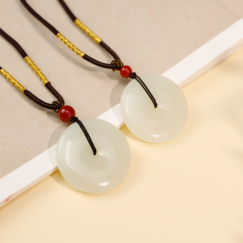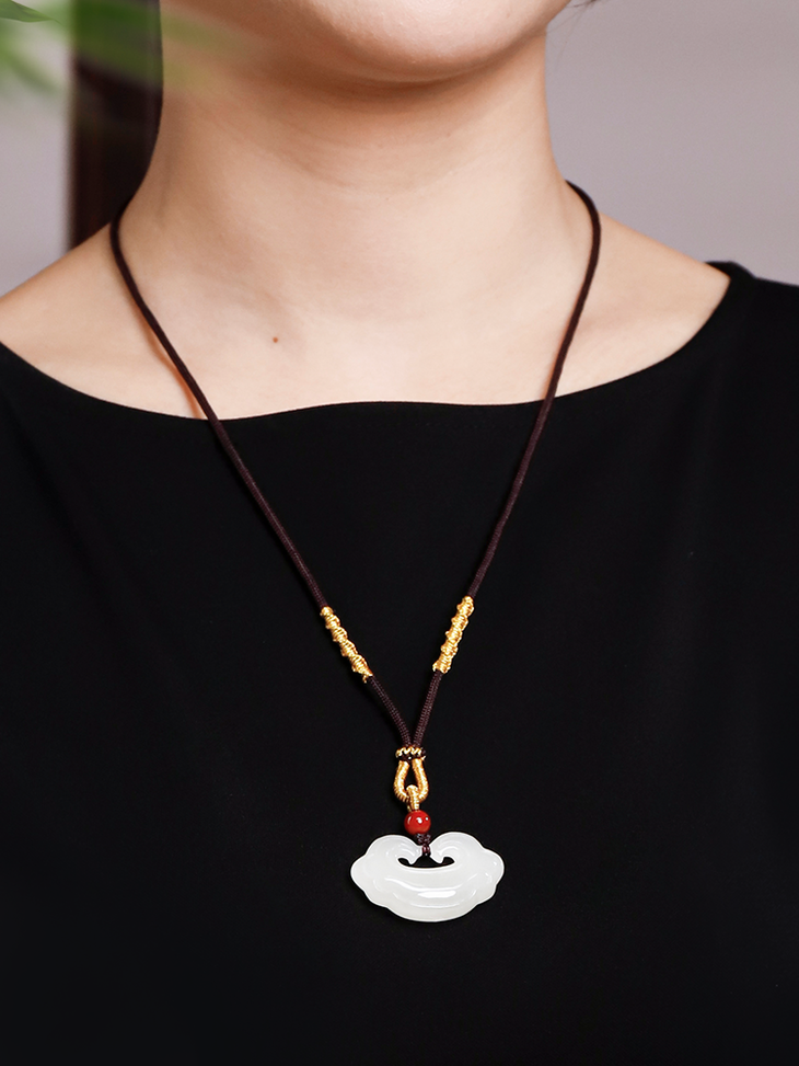 玉锁平安,福运绵长。 甄选上乘和田白玉料,精雕细琢成福锁造型,寓意锁住平安,幸福常伴。