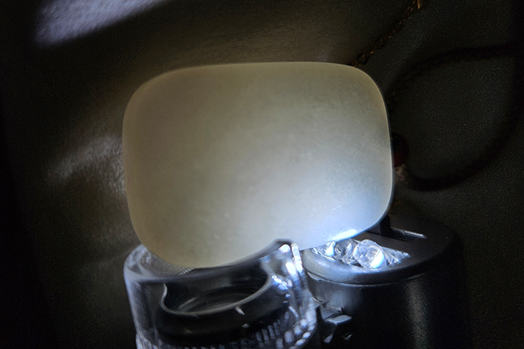 打灯能看到如同毛毡一般的细腻结构,新疆玉特有的玉结构。