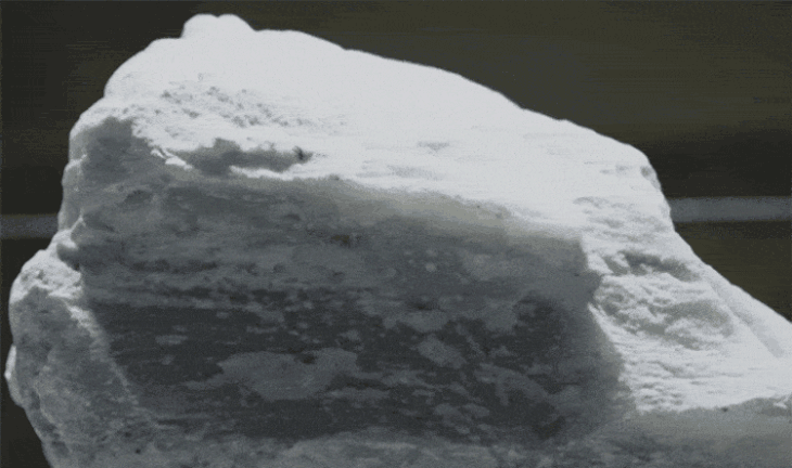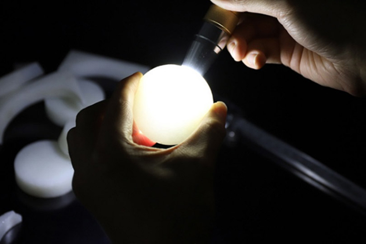 在透光下看,像凝脂般的半透明,内部粉粉雾雾的质地,干净细腻,几乎没有杂质。