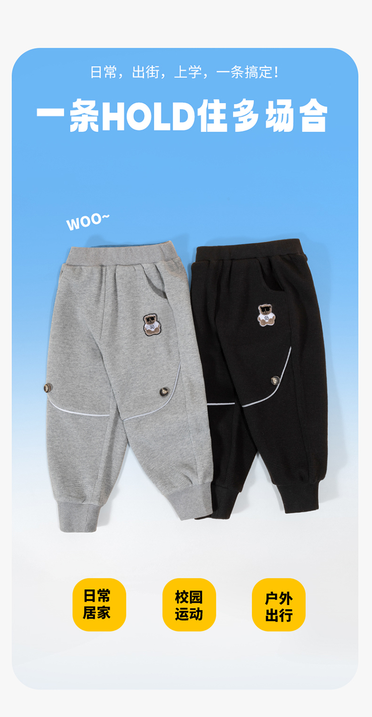 【柔软舒适】春秋新款儿童休闲裤华夫格男童裤子卫裤时尚儿童裤子ZB1DK026