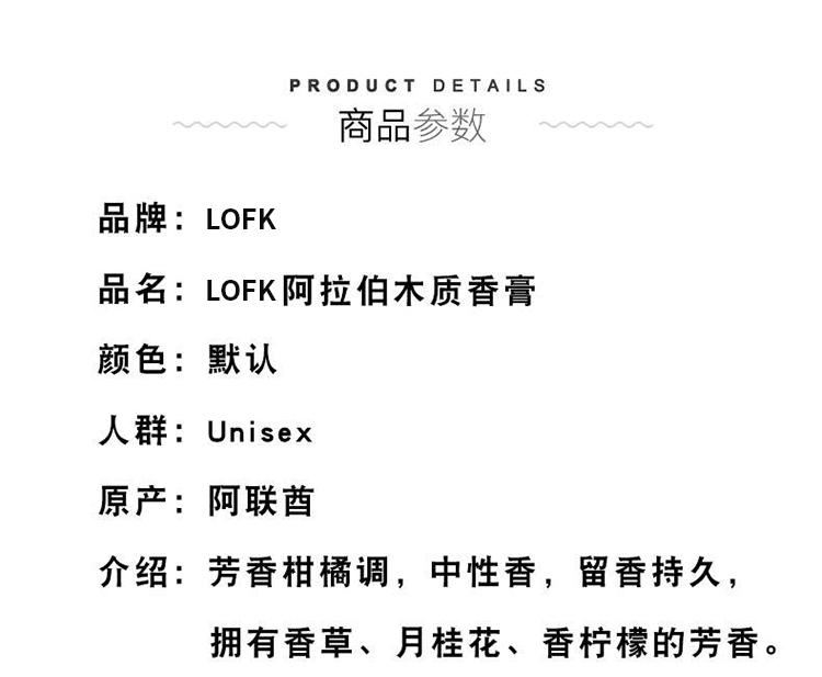 【品名】LOFK阿拉伯香膏 持久留香 天然香体膏 6g/个 【规格】木质香/乌木香:6g/个 【备案编号】 木质香:粤G妆网备字2025128948 乌木香:粤G妆网备字2025128947 【执行标准】 木质香:QB/T1857(O/W) 乌木香:QB/T1857(O/W) 【产地】国内 【发货包装】独立包装 【发货地】浙江 【发货快递】韵达 【补邮费地区】新疆、西藏+15元 【发货时效】48-72小时,周末节假日顺延 【保健品服用方法】 【电子产品质保期】 |