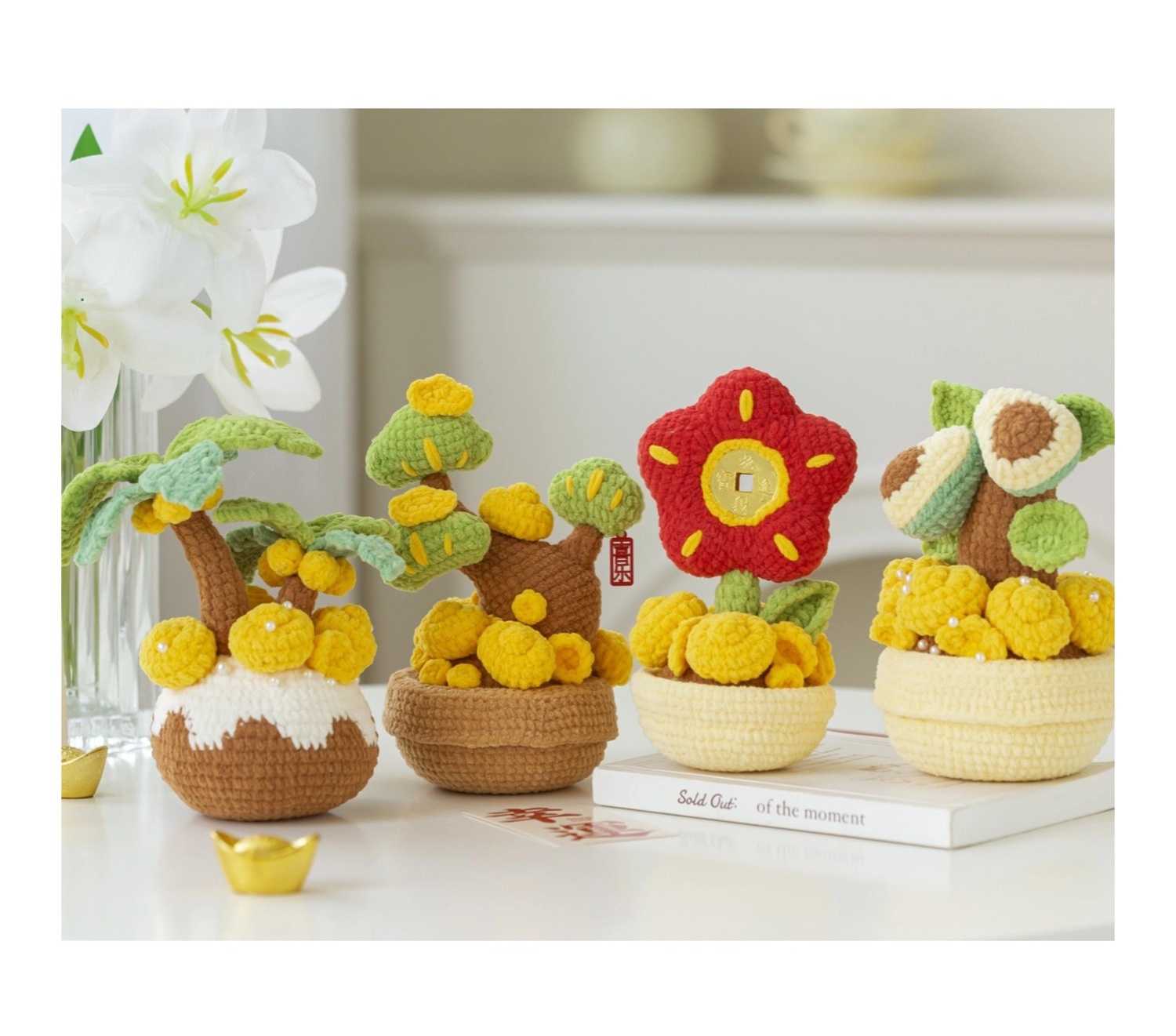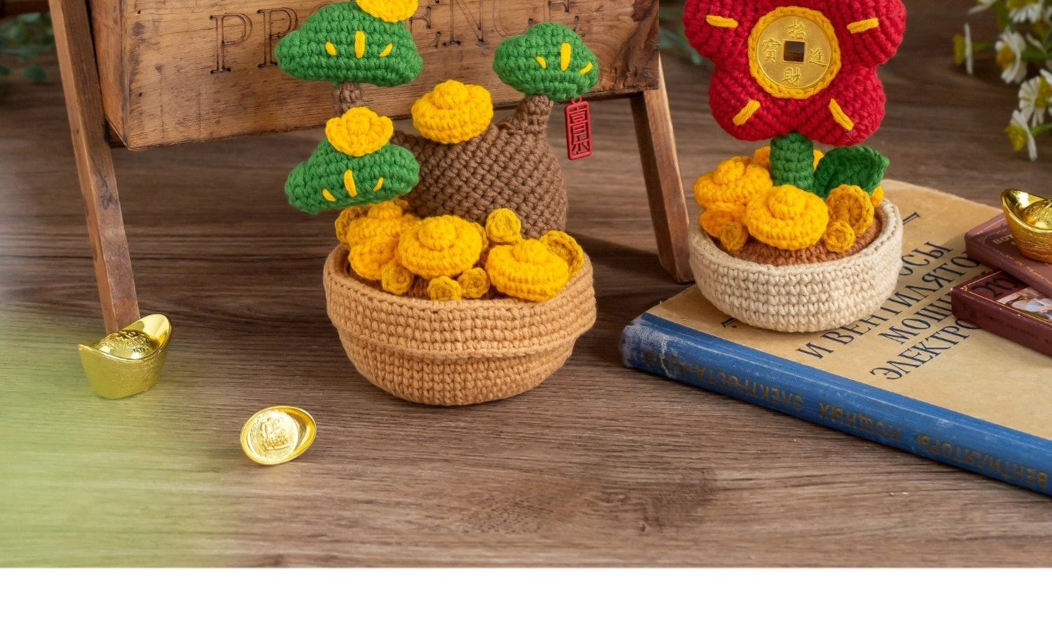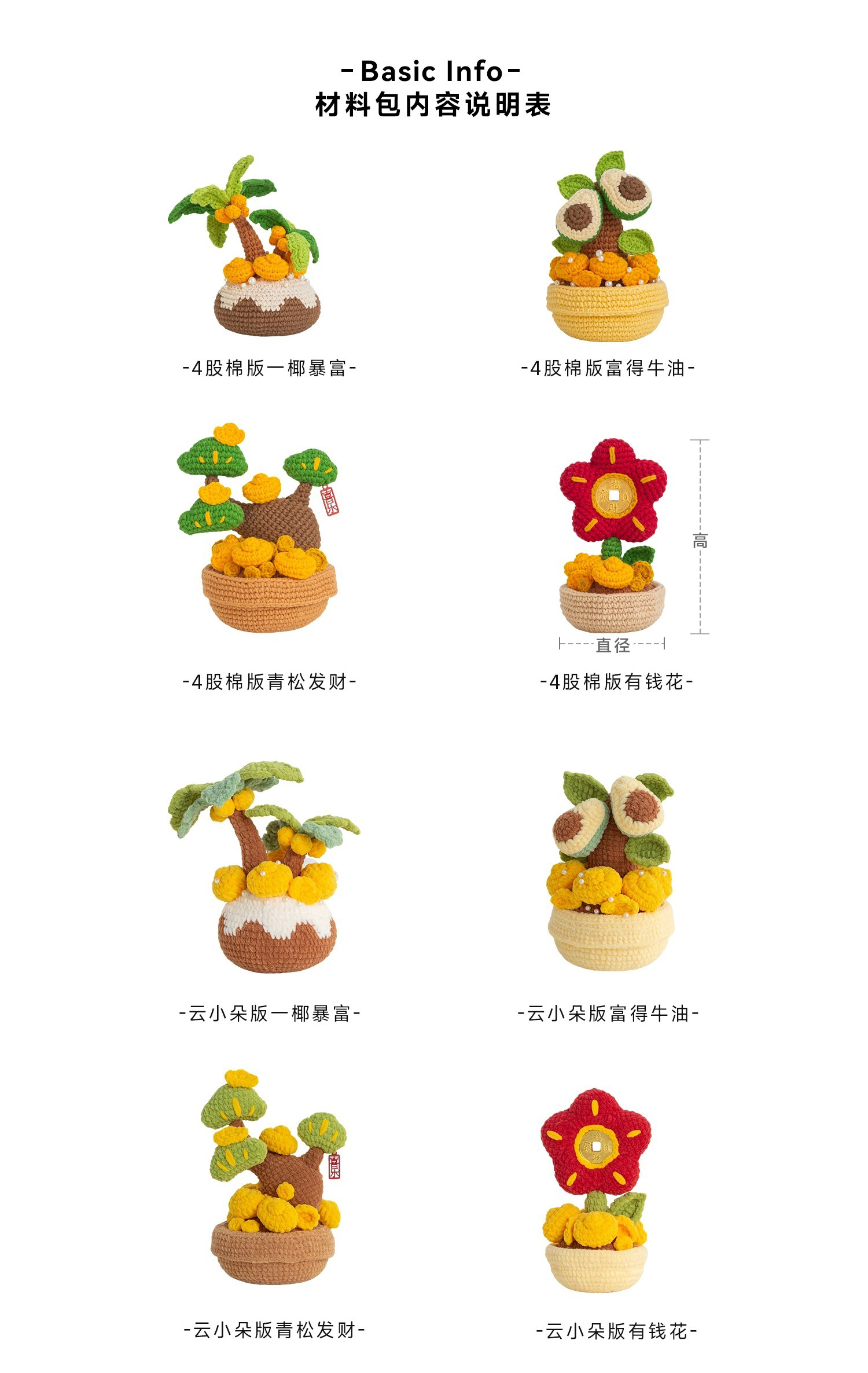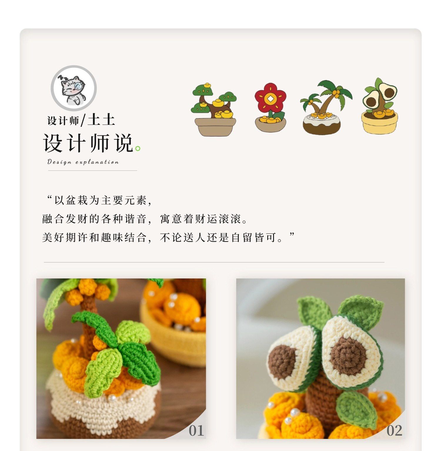 苏苏姐家发财盆栽手工diy编织钩针毛线团自制摆件小物材料
