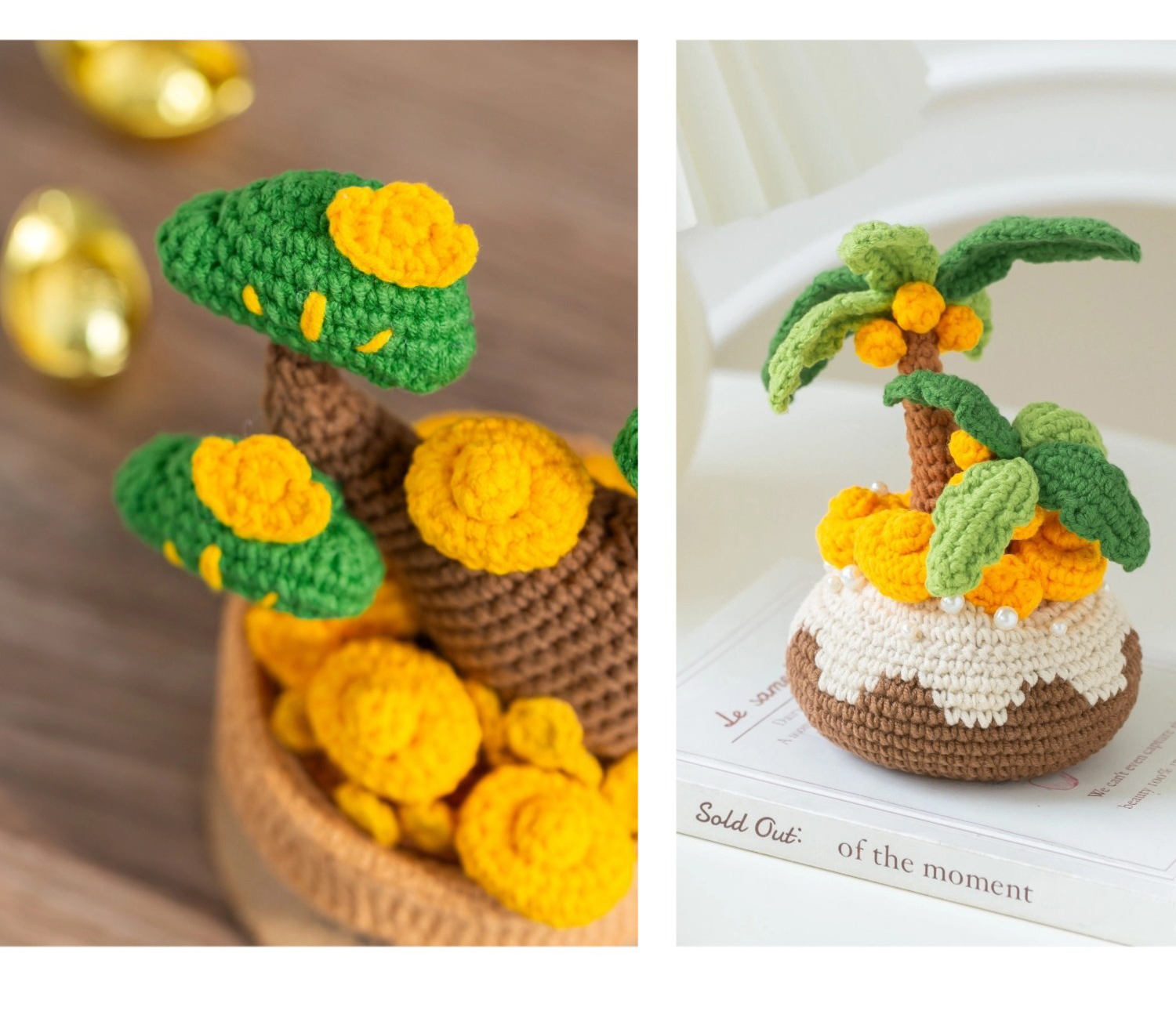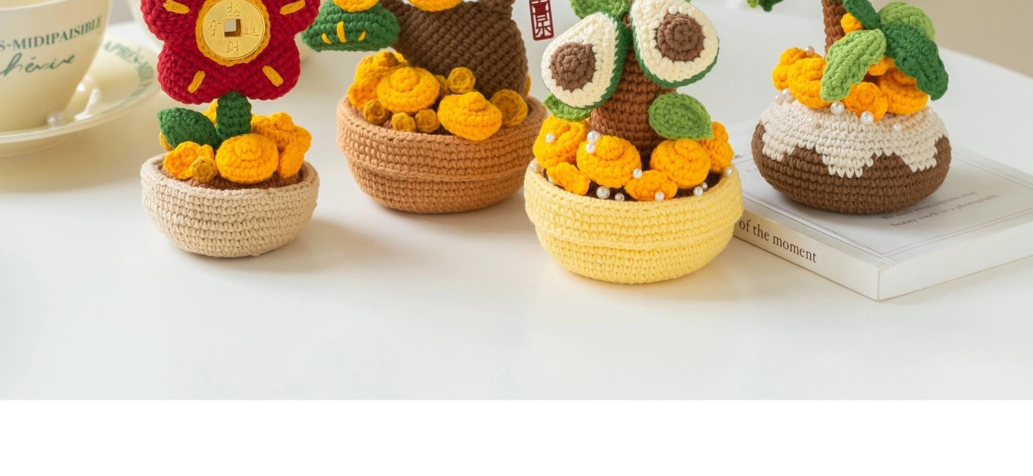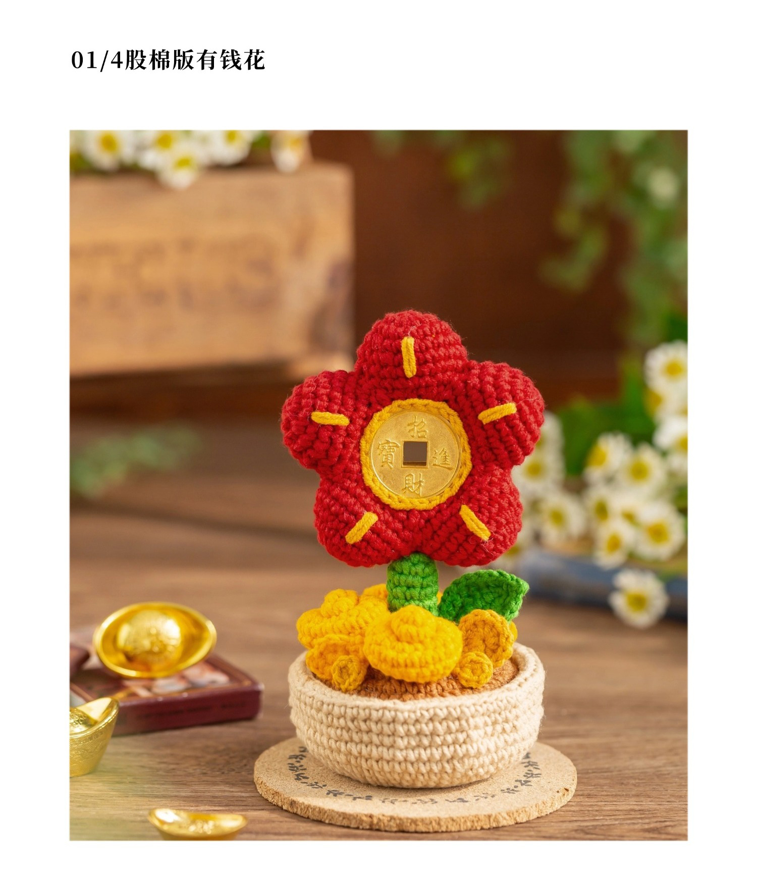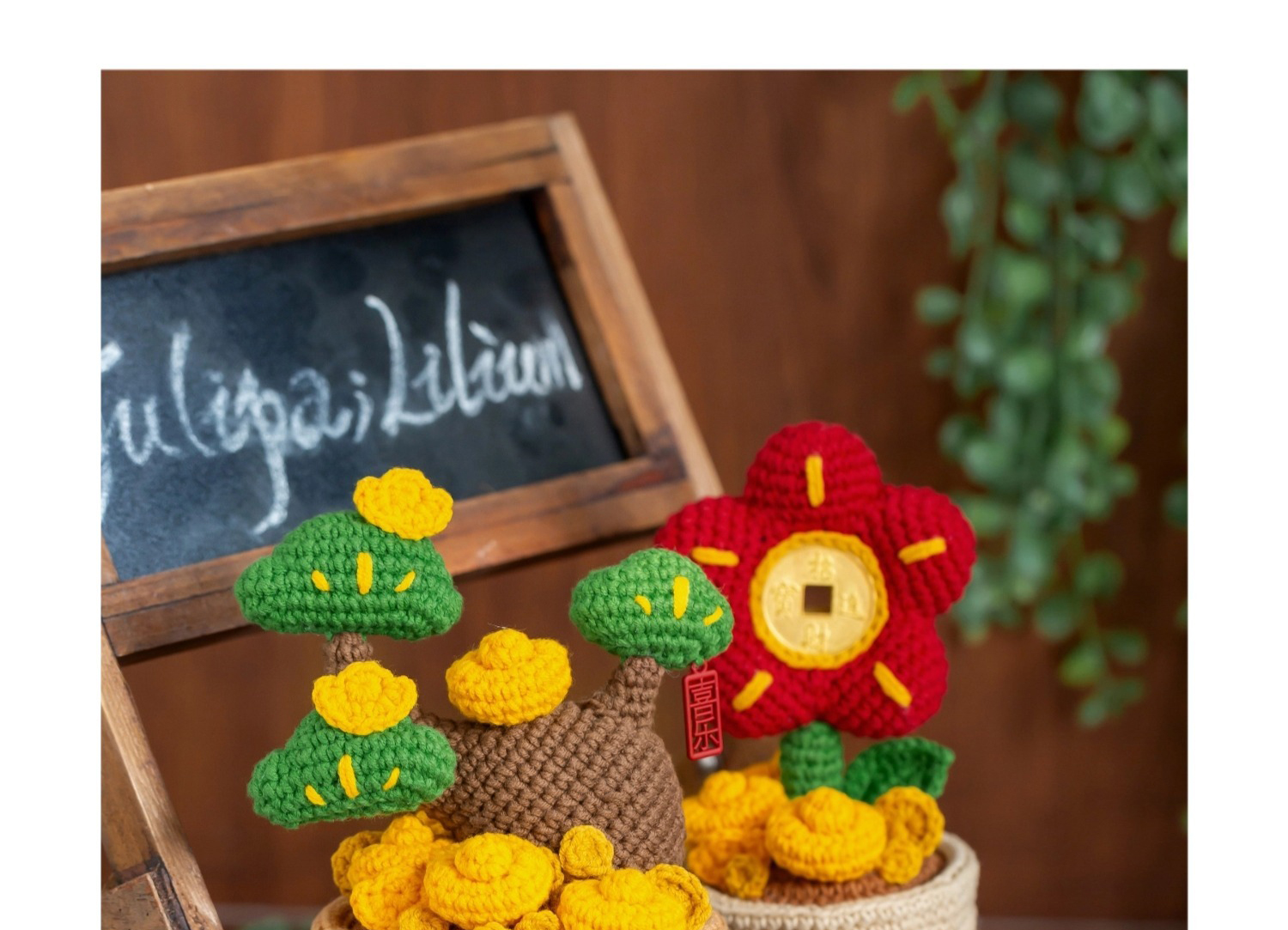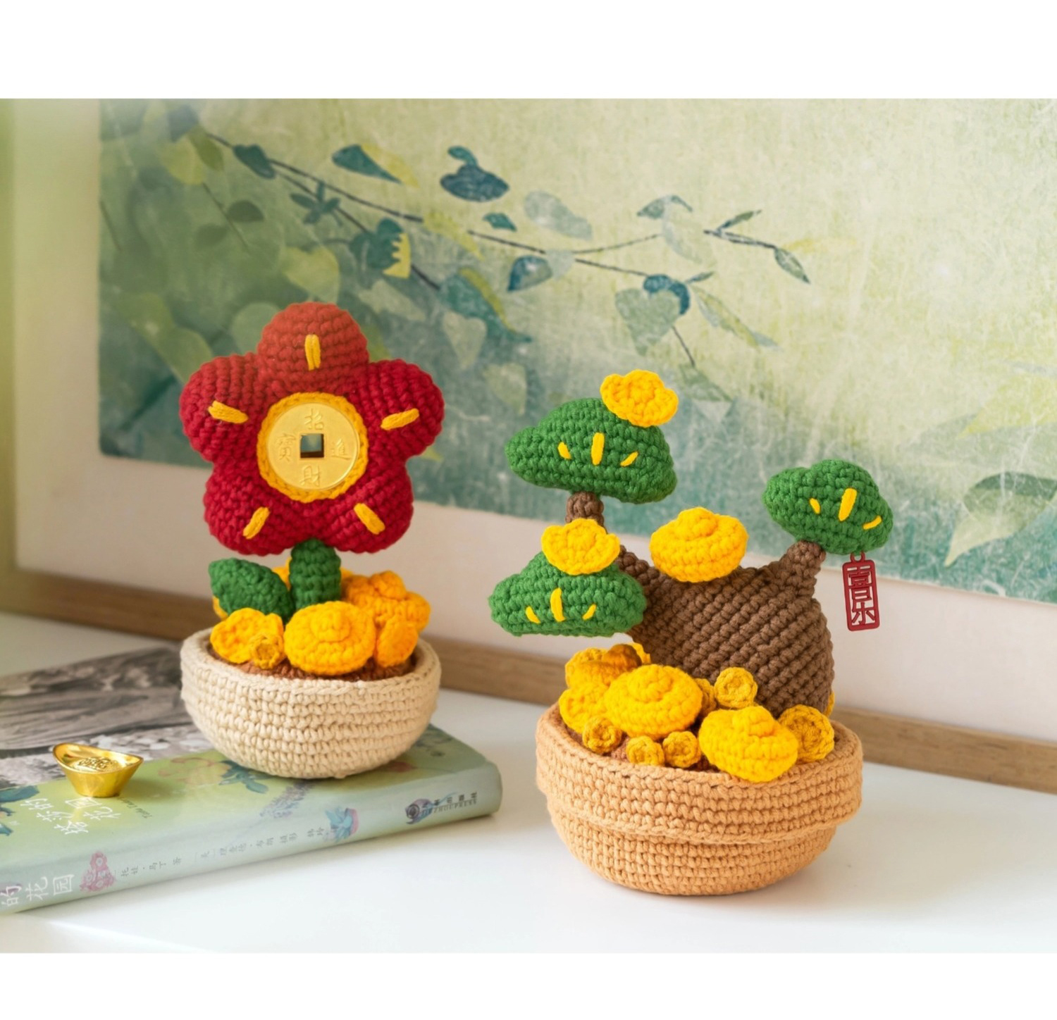 苏苏姐家发财盆栽手工diy编织钩针毛线团自制摆件小物材料