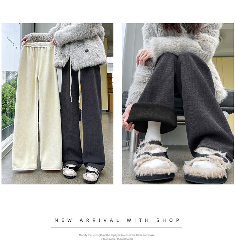 【超美超暖❗️羊羔绒阔腿裤】加绒保暖,高腰宽松版型,臀上贴合,巨显瘦还显高!女冬季新款加厚垂感直筒裤保暖格子裤L