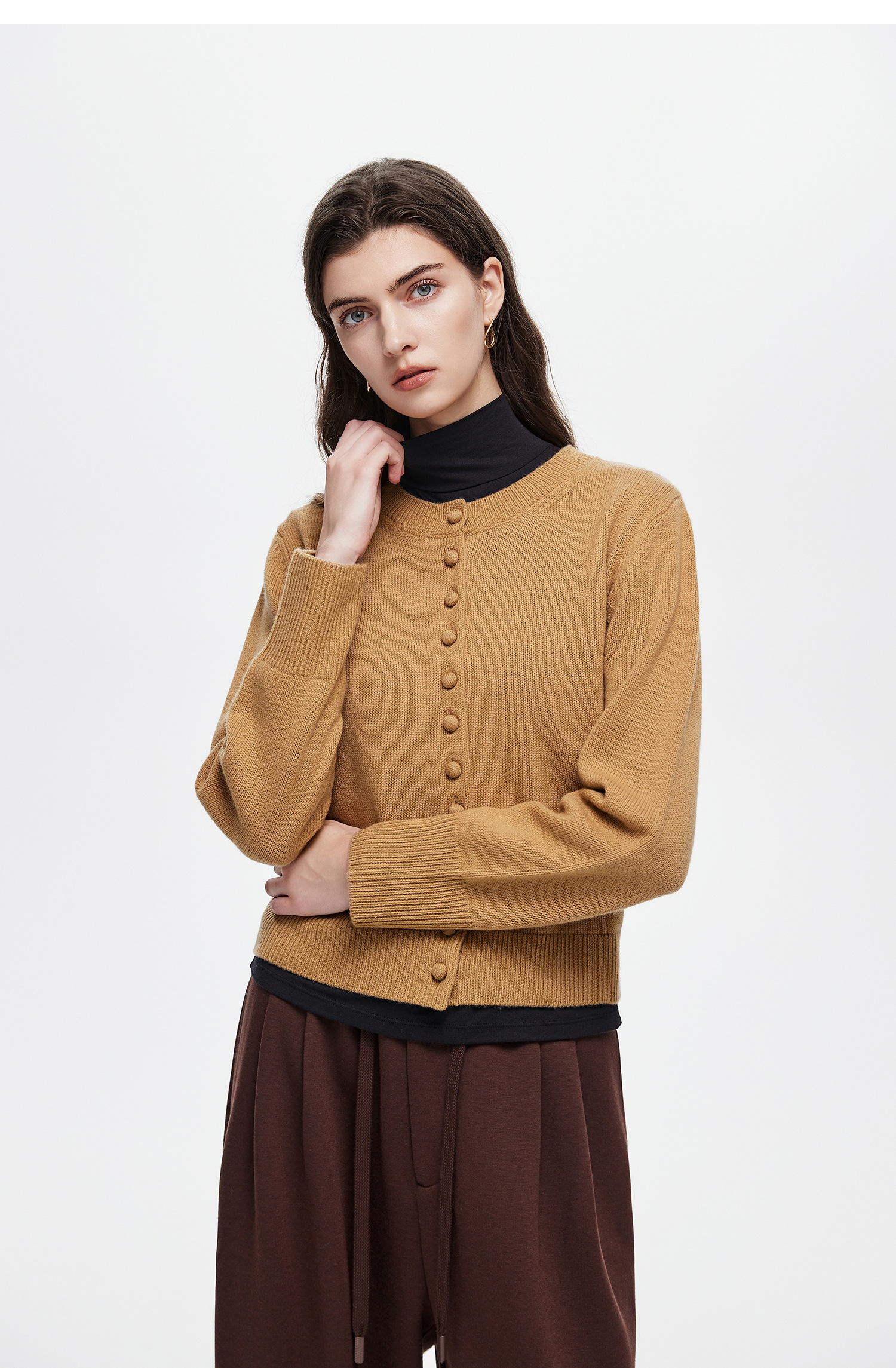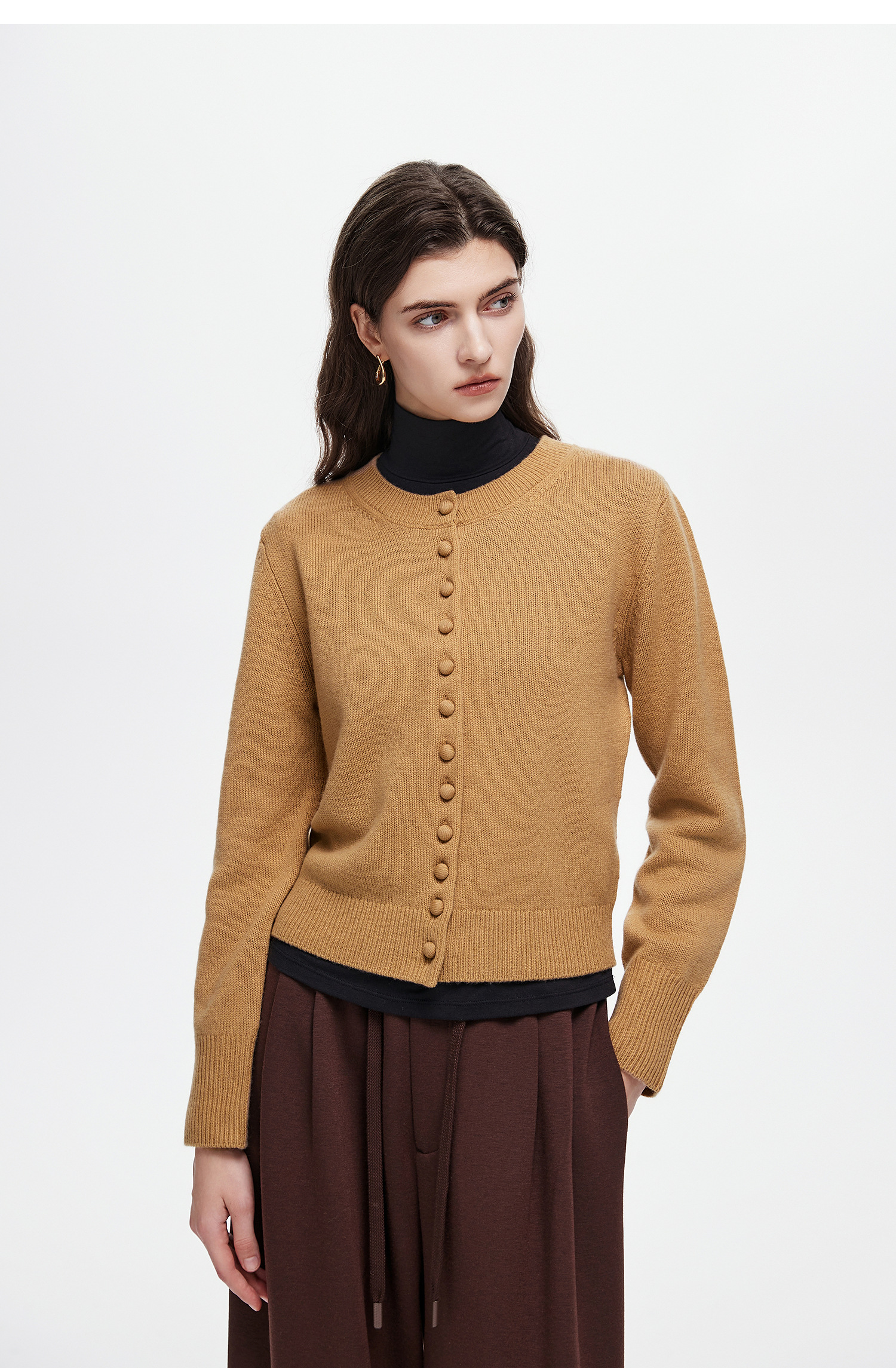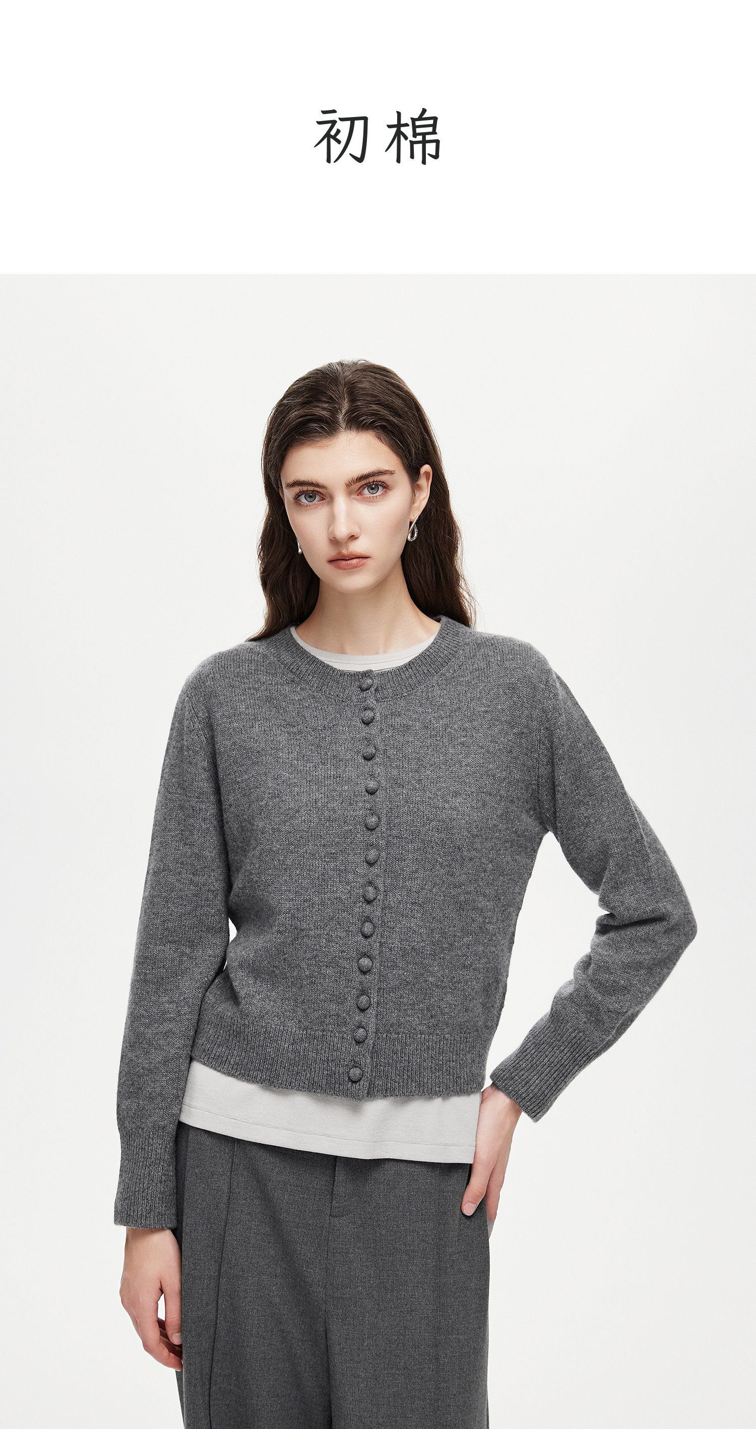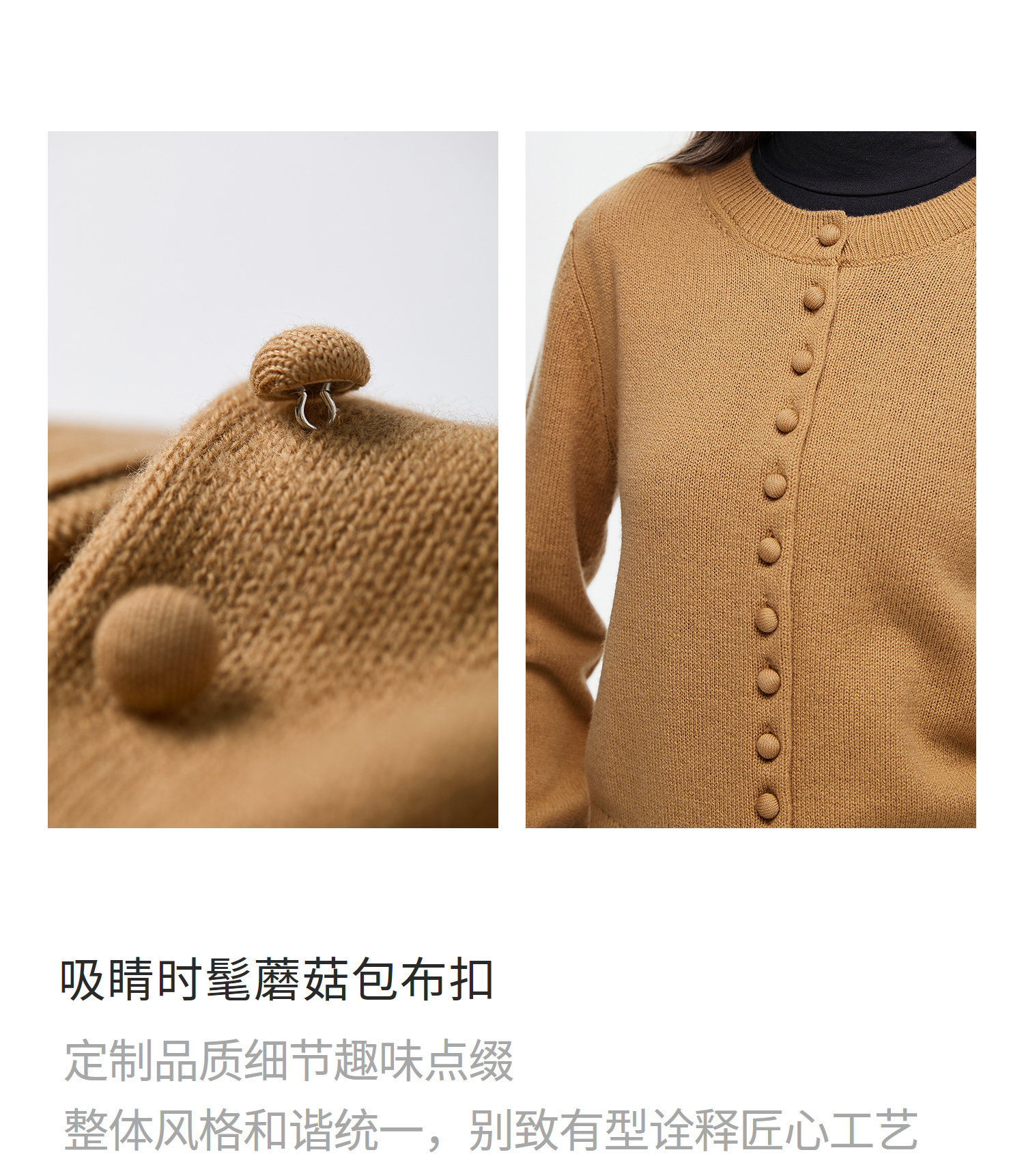 棉仓366605011-百分百羊毛蘑菇扣针织开衫