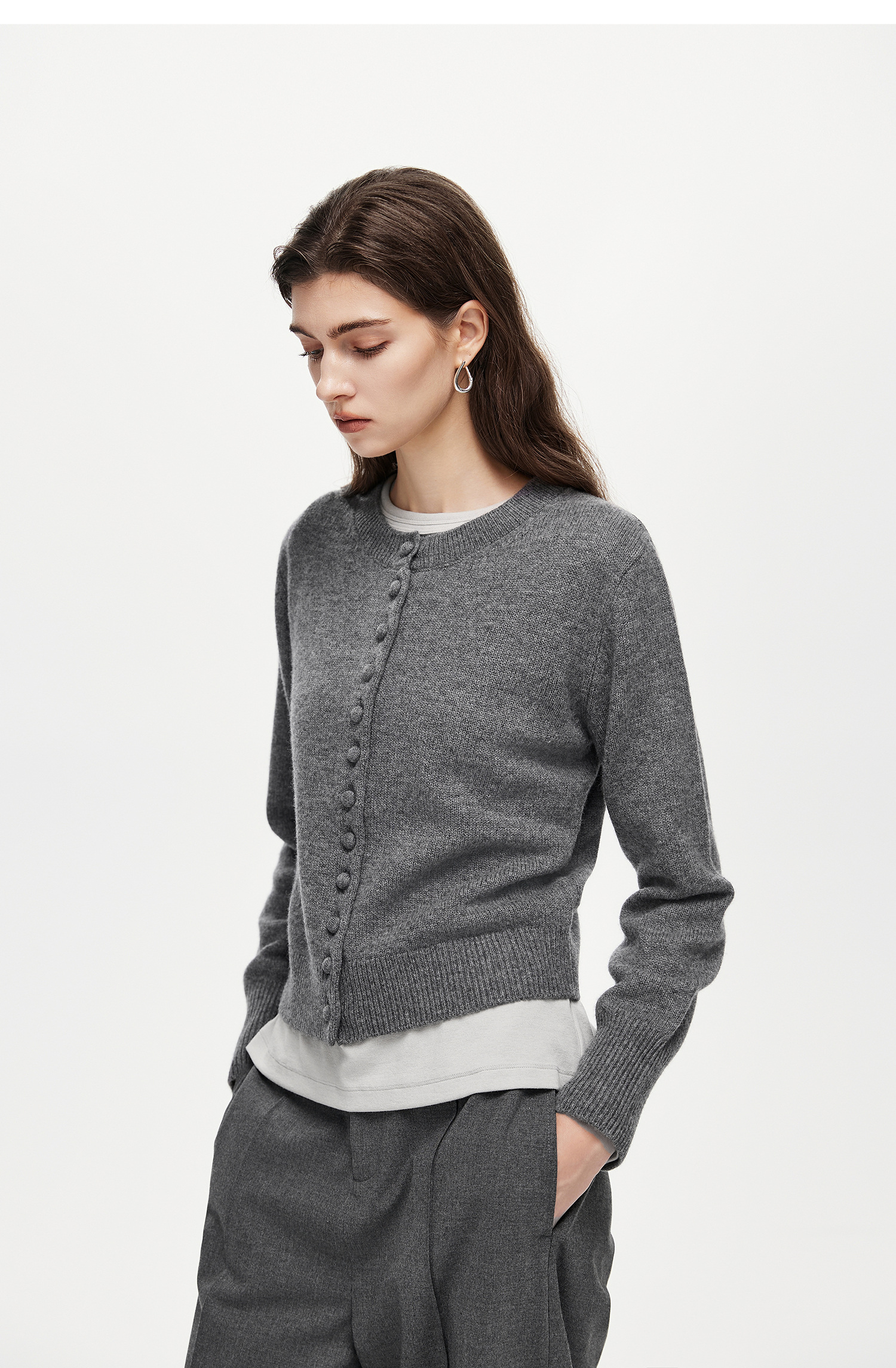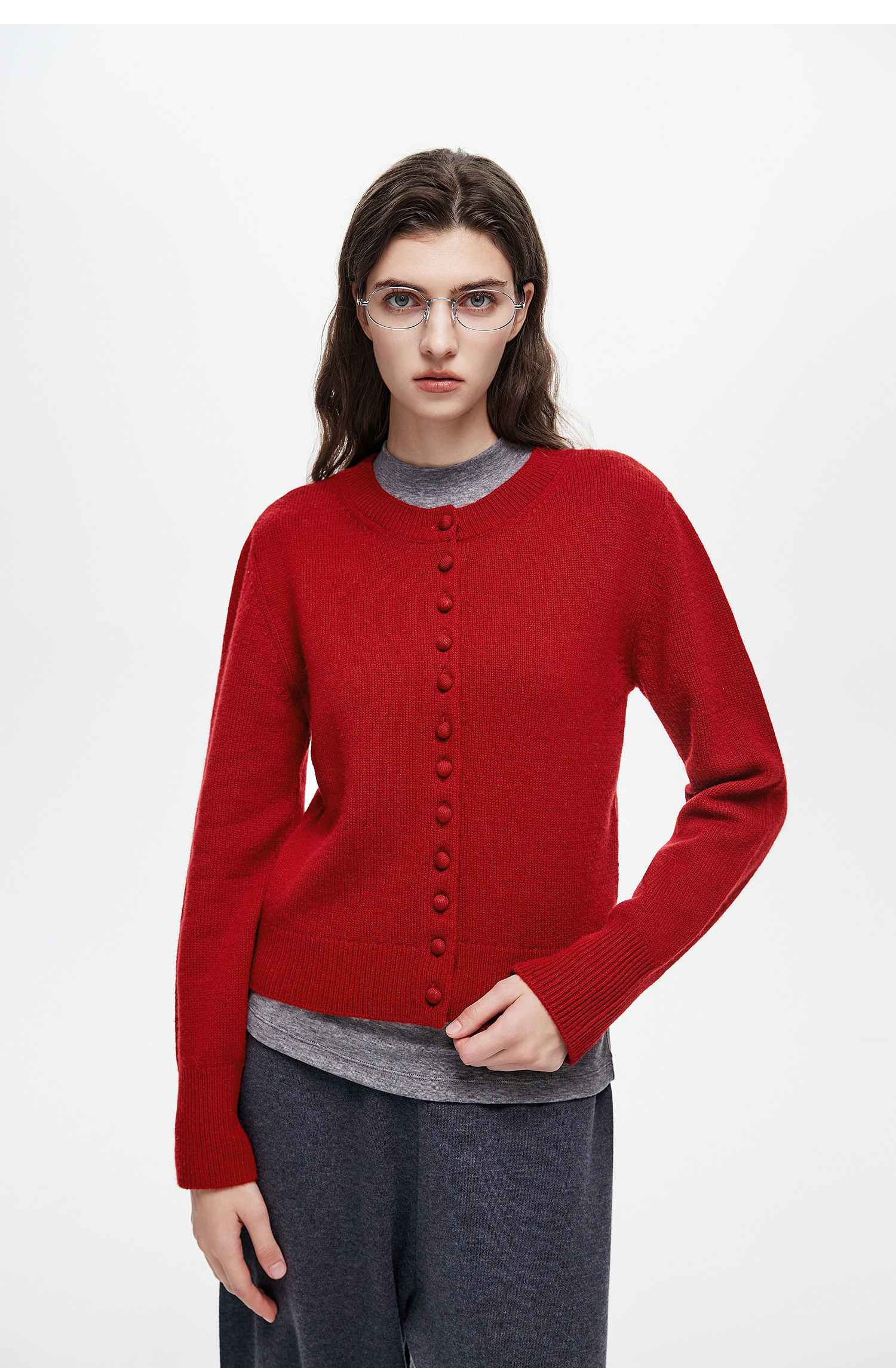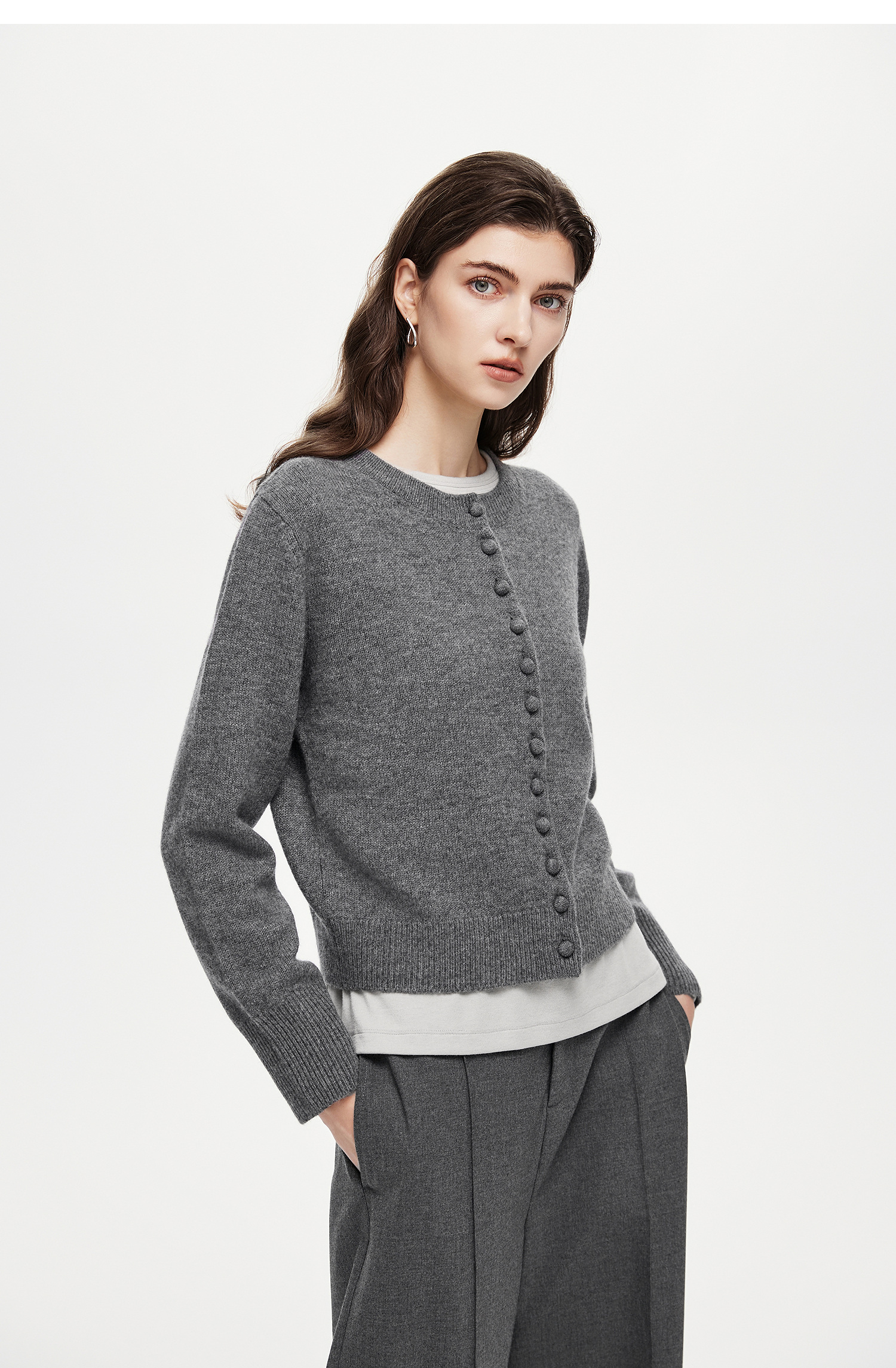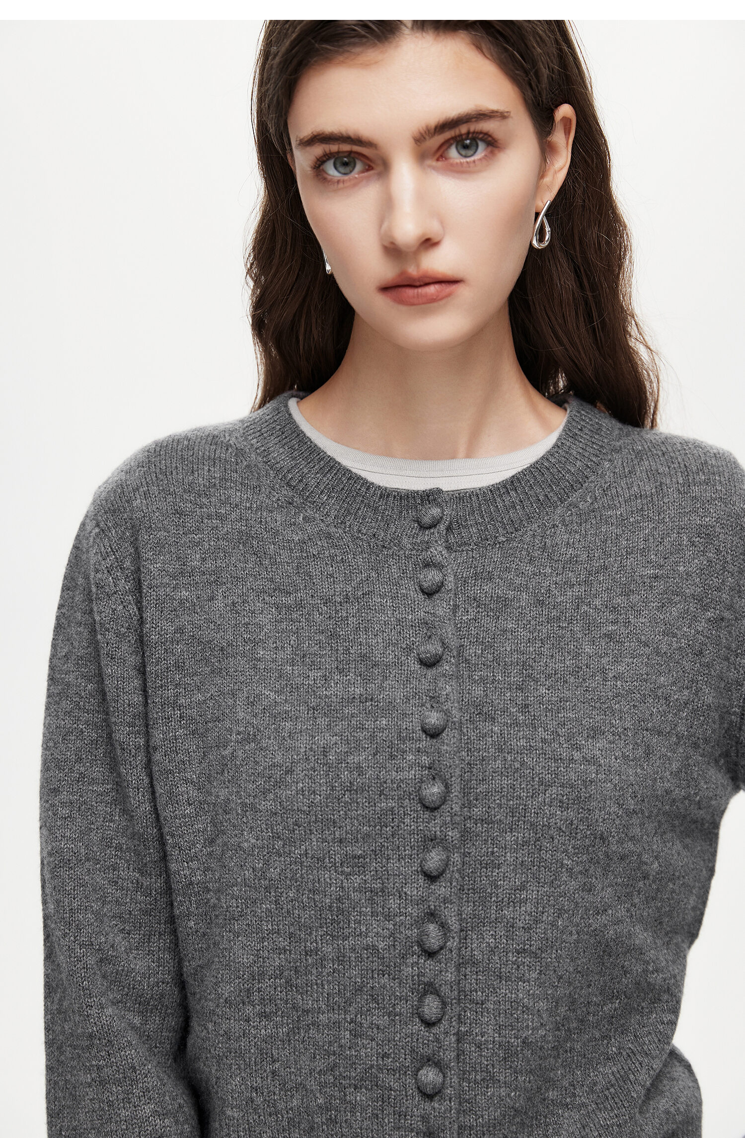 棉仓366605011-百分百羊毛蘑菇扣针织开衫