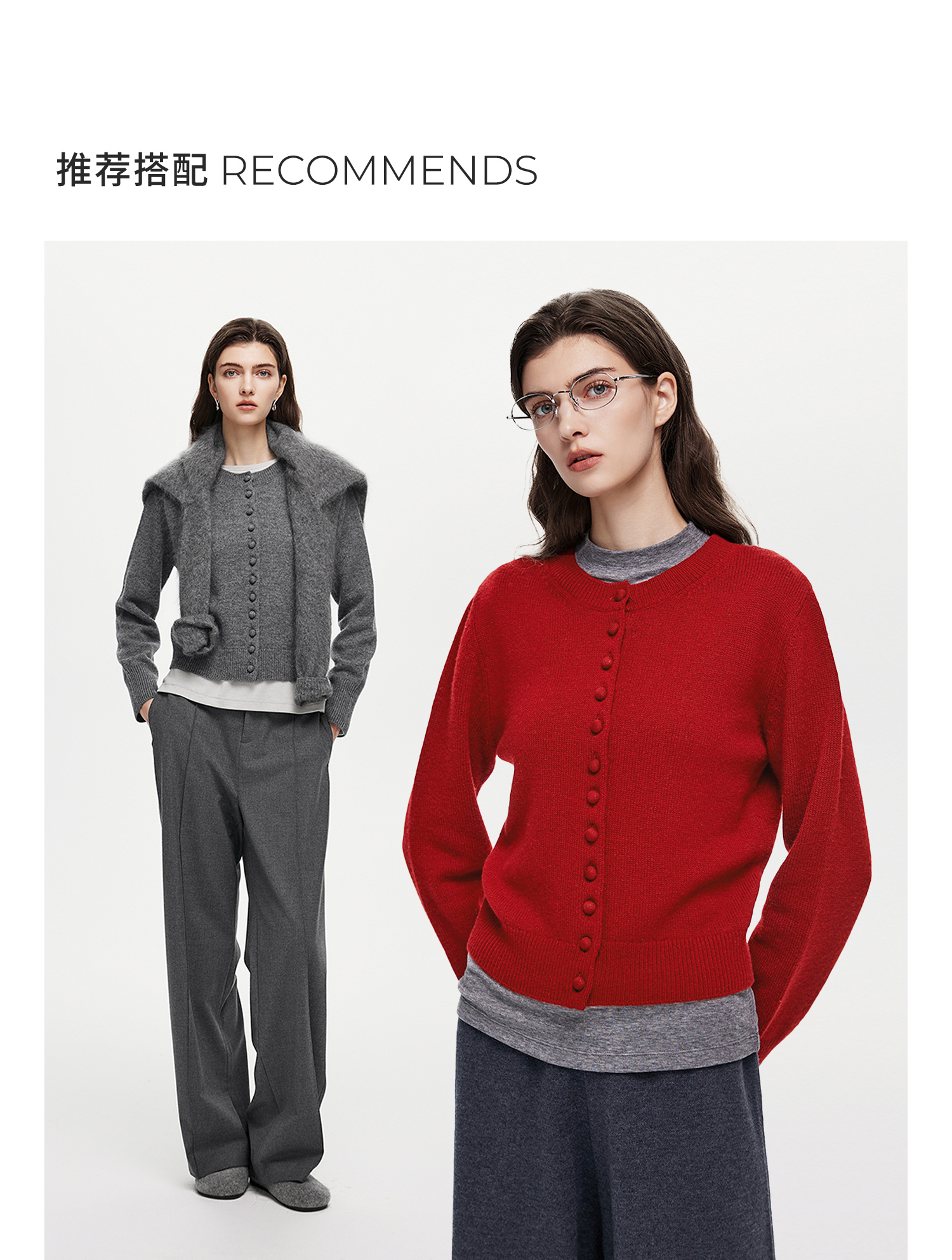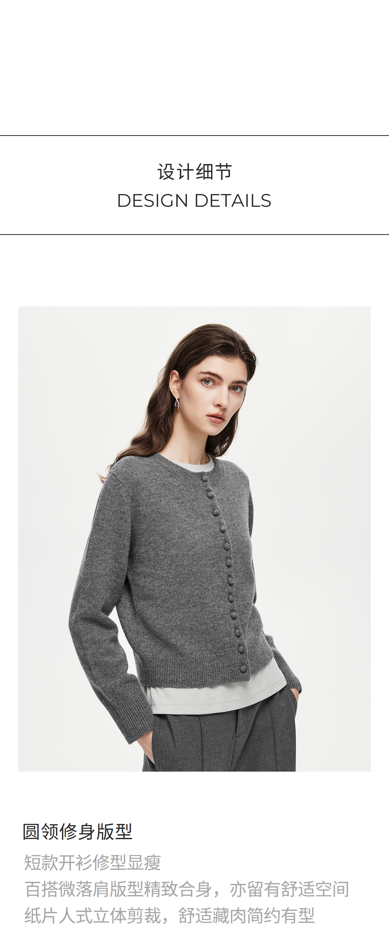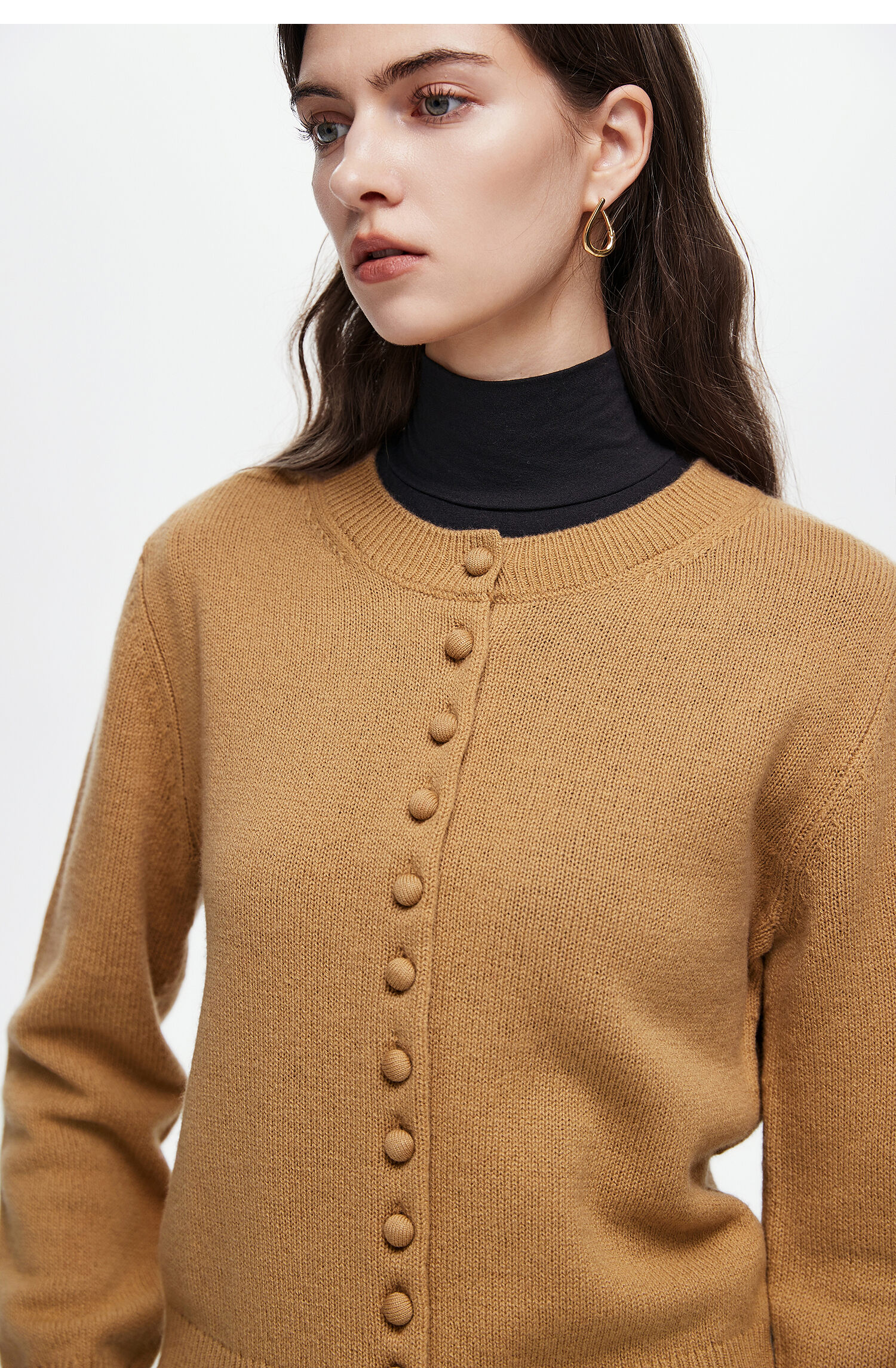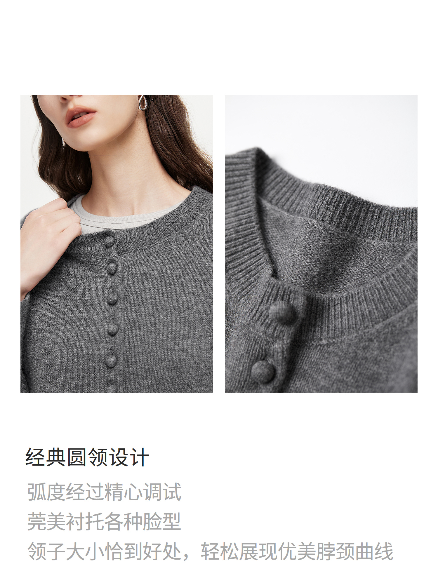 棉仓366605011-百分百羊毛蘑菇扣针织开衫