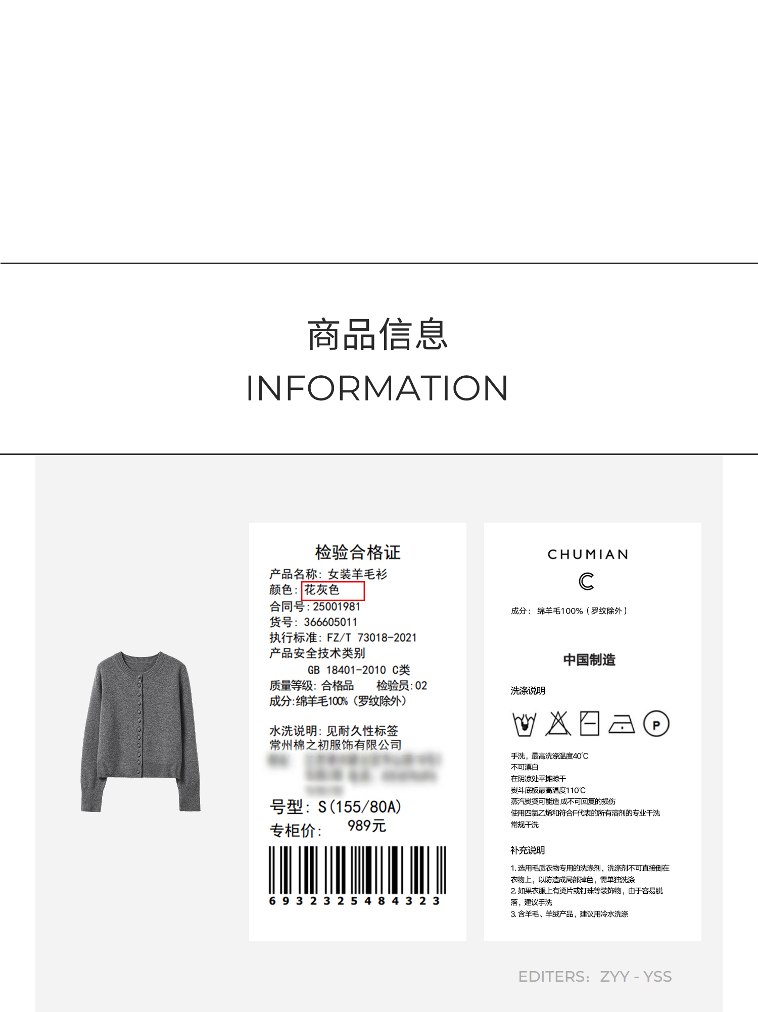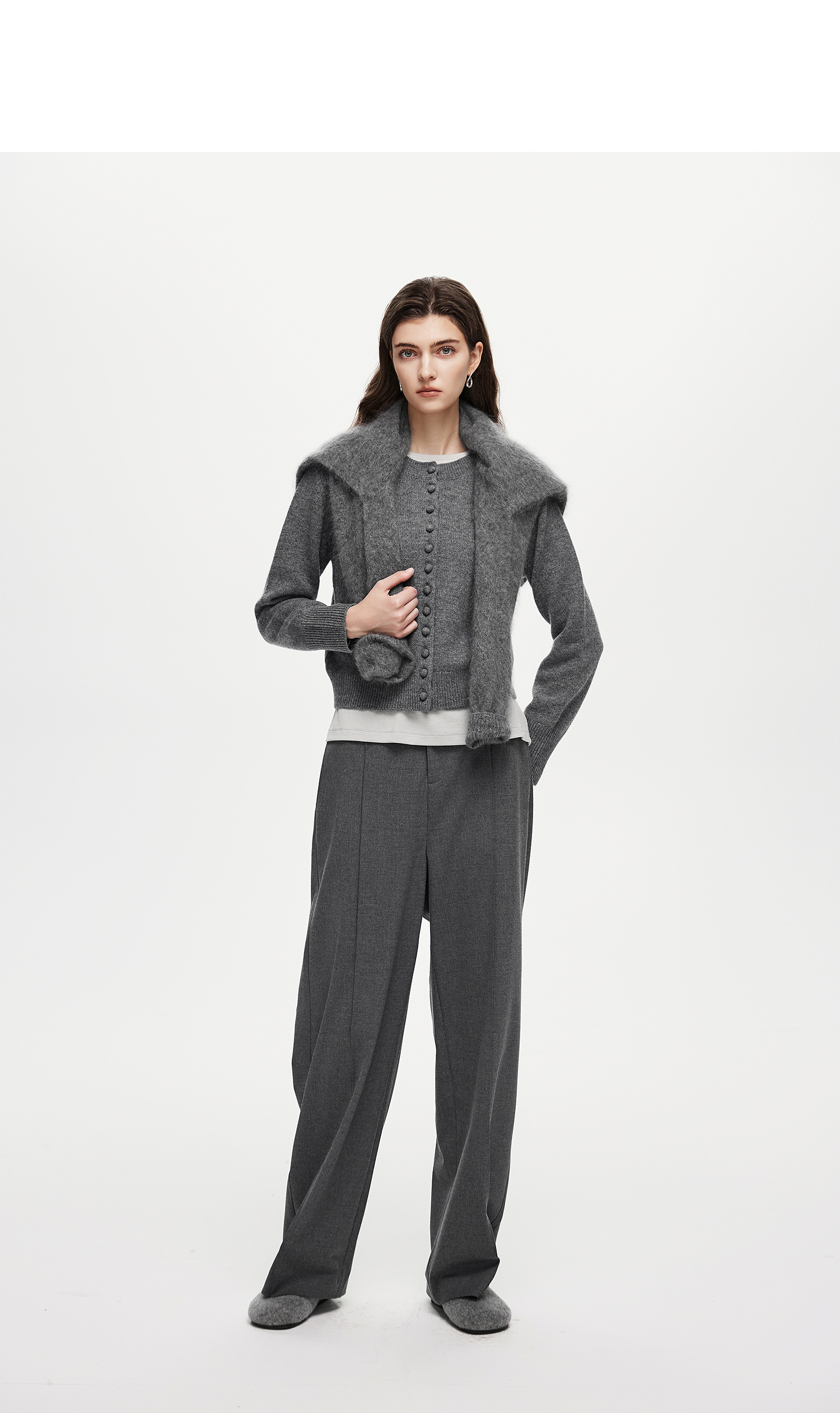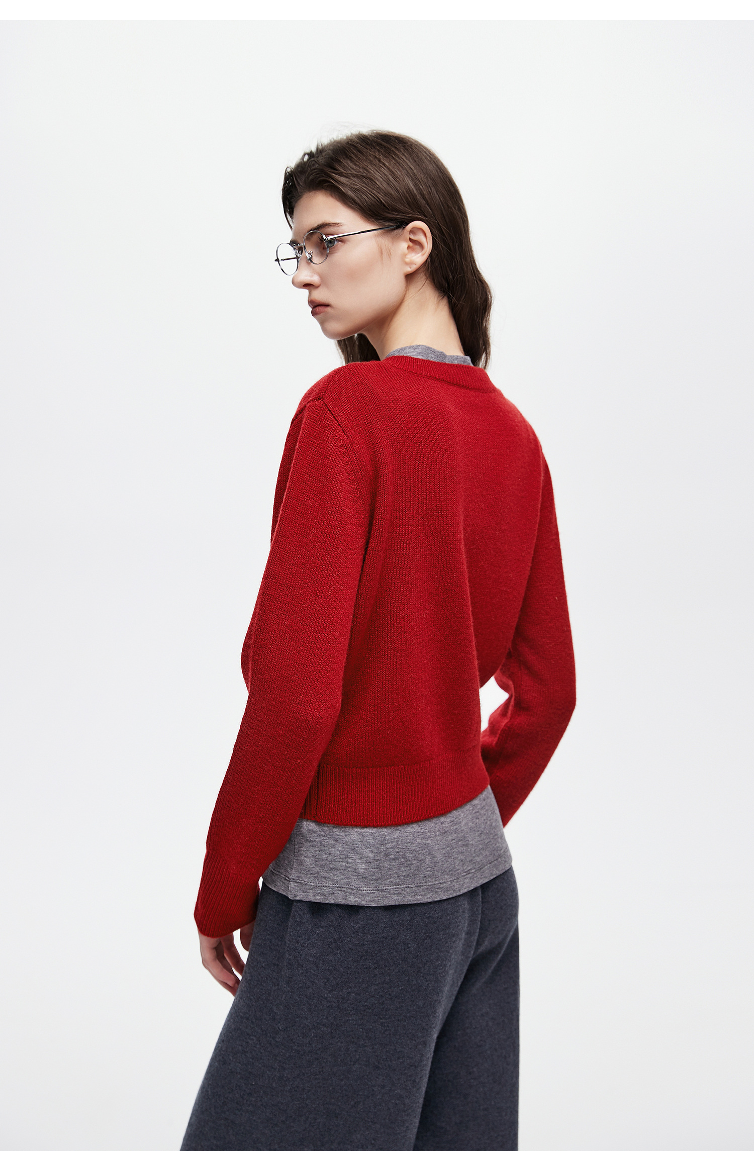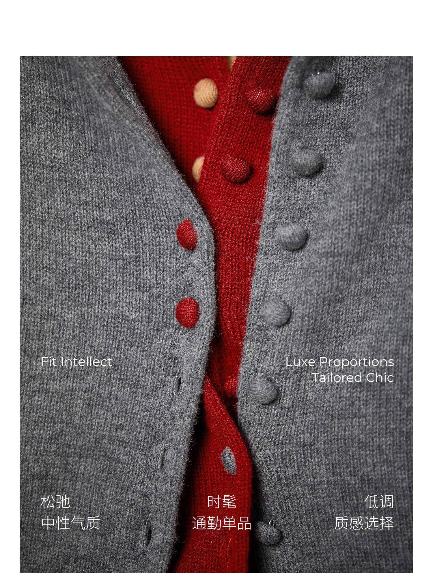 棉仓366605011-百分百羊毛蘑菇扣针织开衫