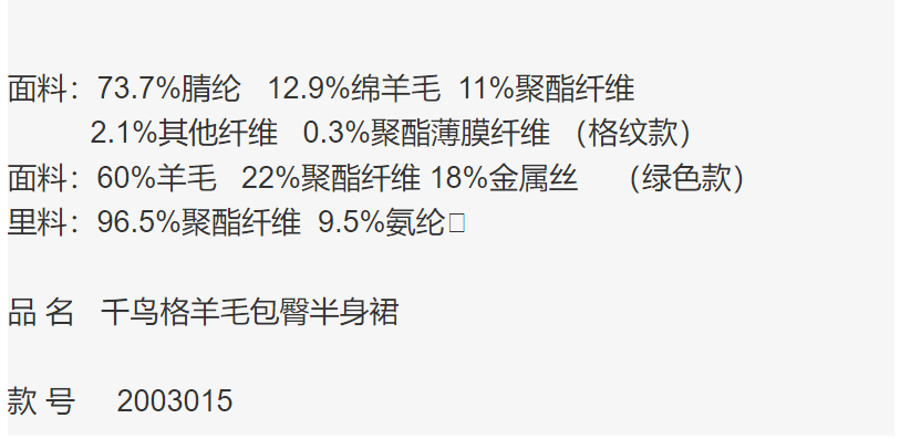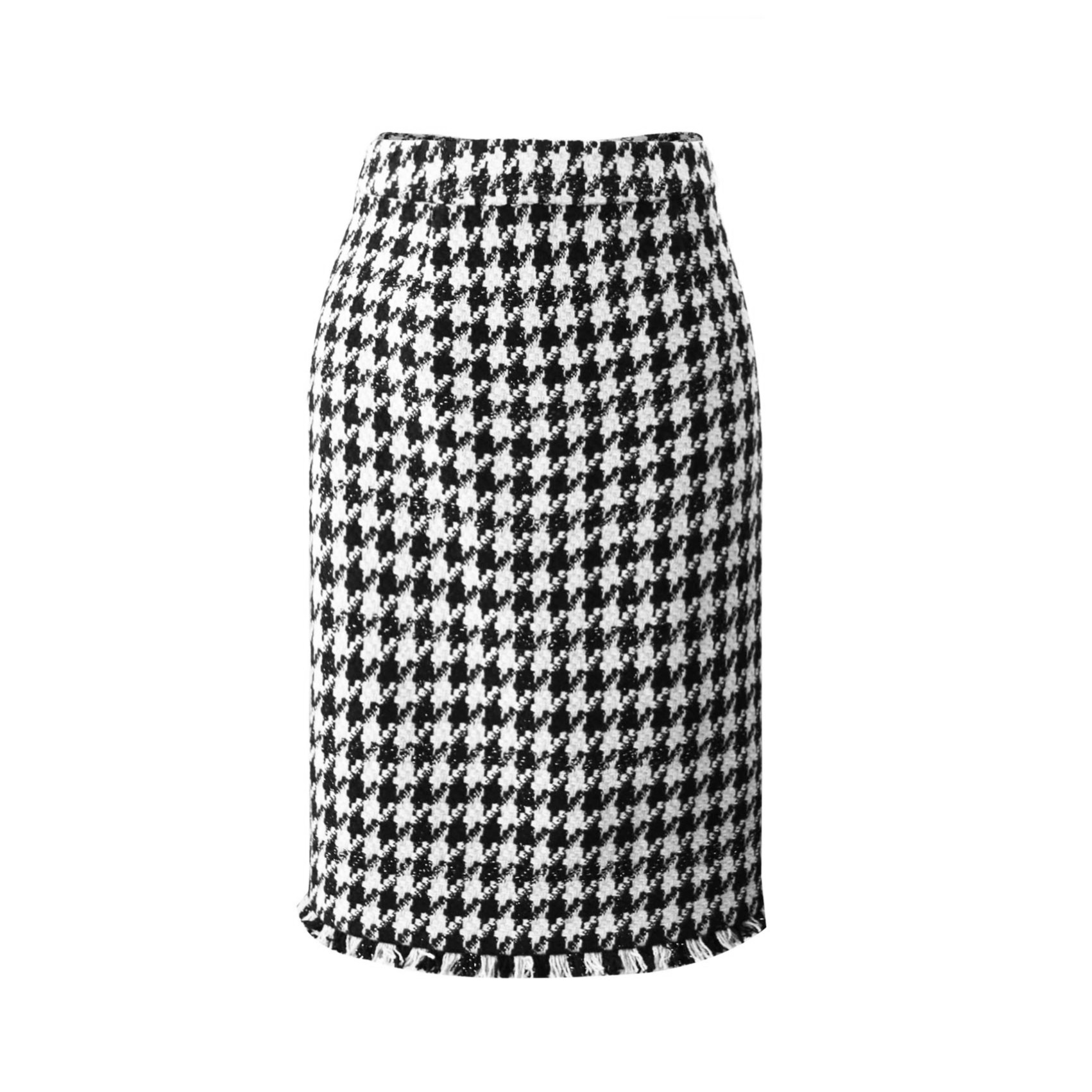 定制-复古风格--千鸟格-羊毛修身显瘦 小香风 半身包臀裙 2003015