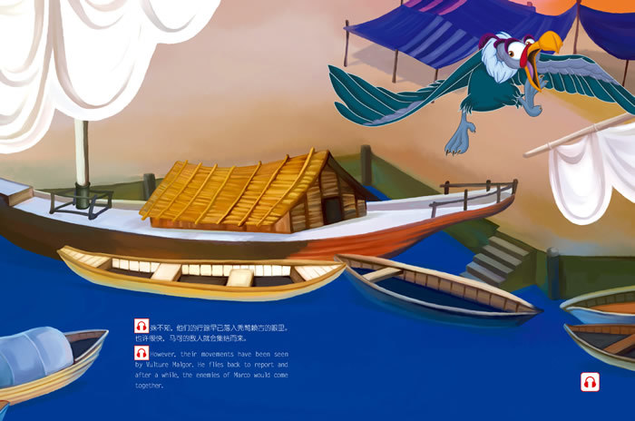 这是一本故事书,用精美的图画和流畅的英汉两种文字,讲述了伟大的探险家马可·波罗的后代小马可与香都国的邪恶宰相福林之间斗智斗勇的奇幻探险故事,故事情节曲折动人,环环相扣。