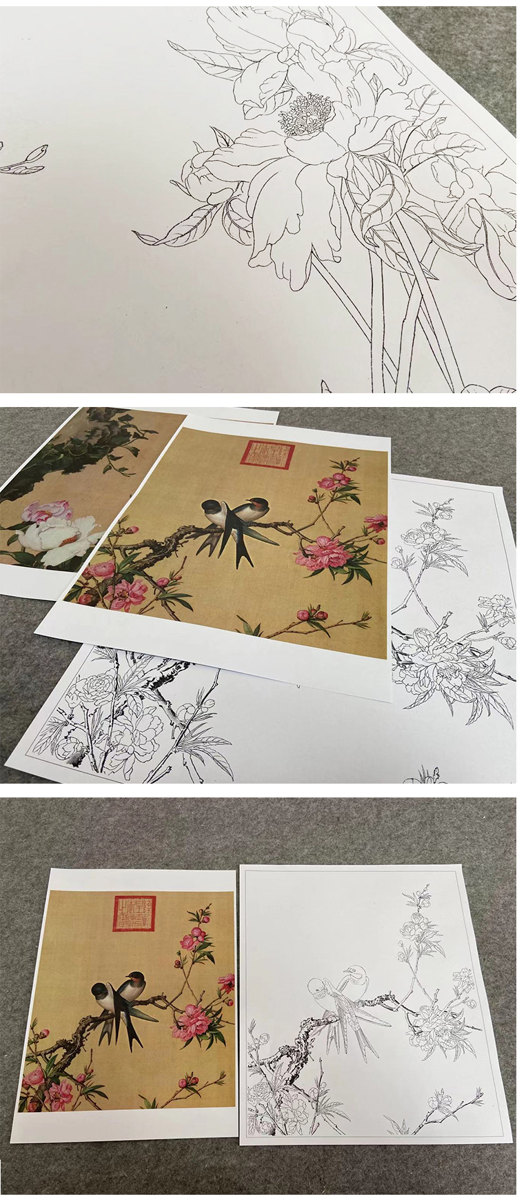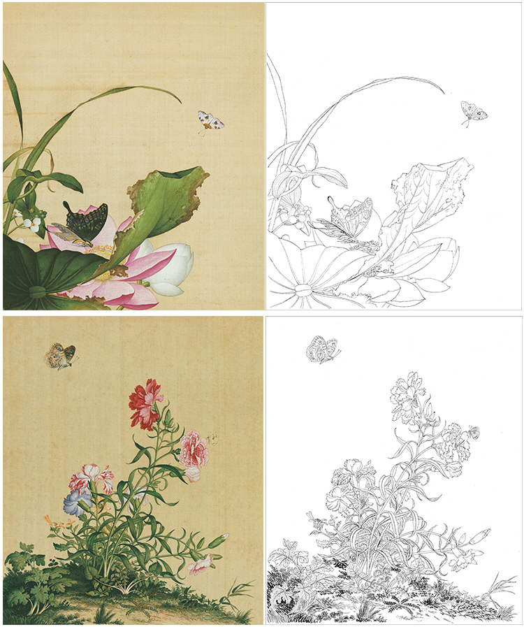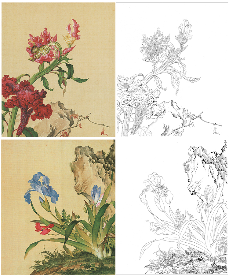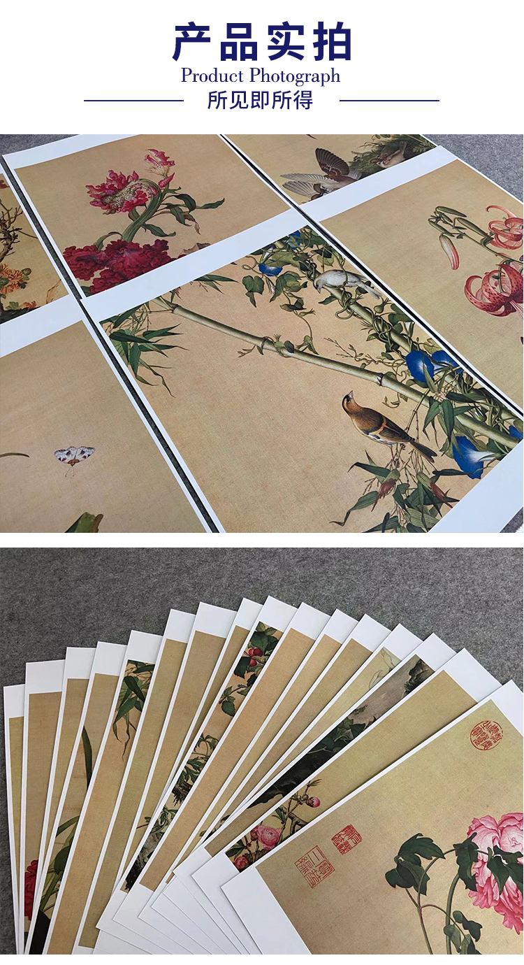 郎世宁工笔花鸟小品画白描底稿仙萼长春册一套十六幅册页尺寸35×42厘米LT00