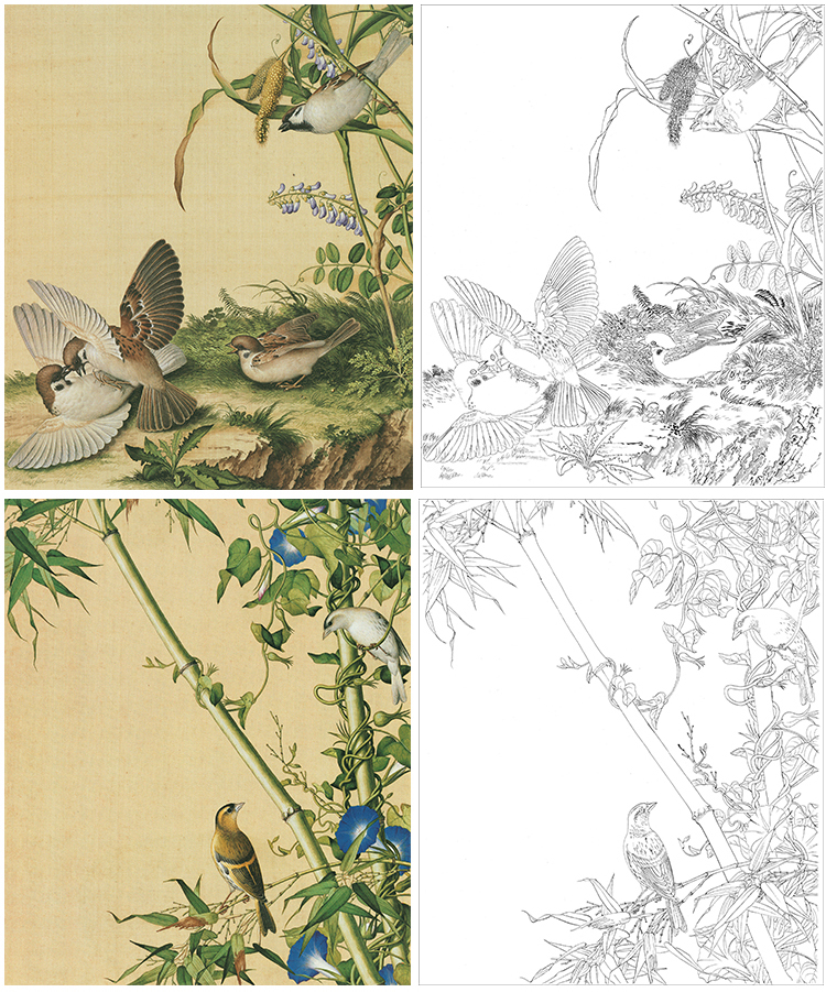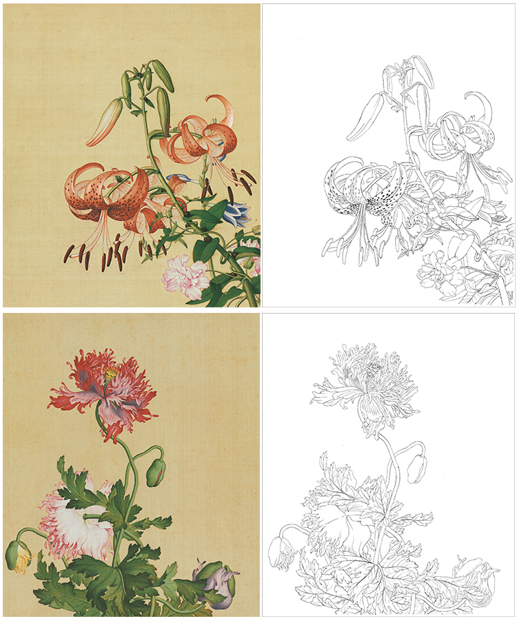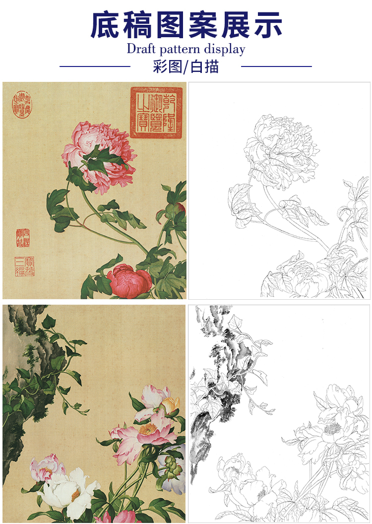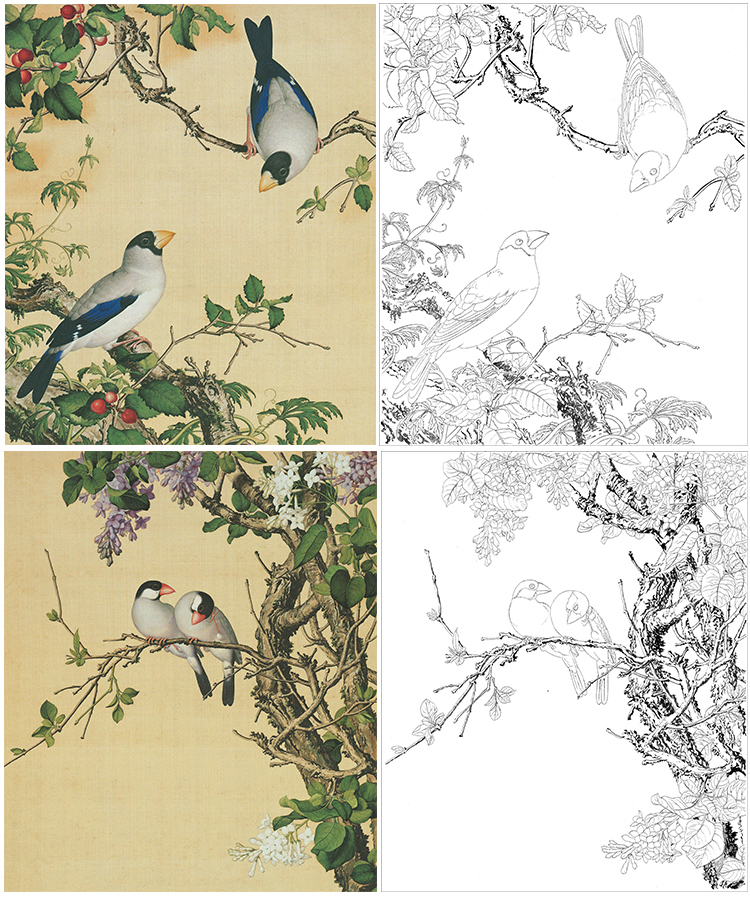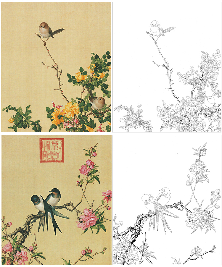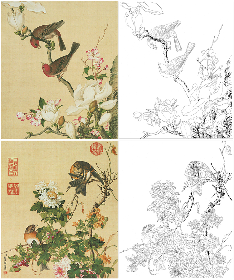 郎世宁工笔花鸟小品画白描底稿仙萼长春册一套十六幅册页尺寸35×42厘米LT00