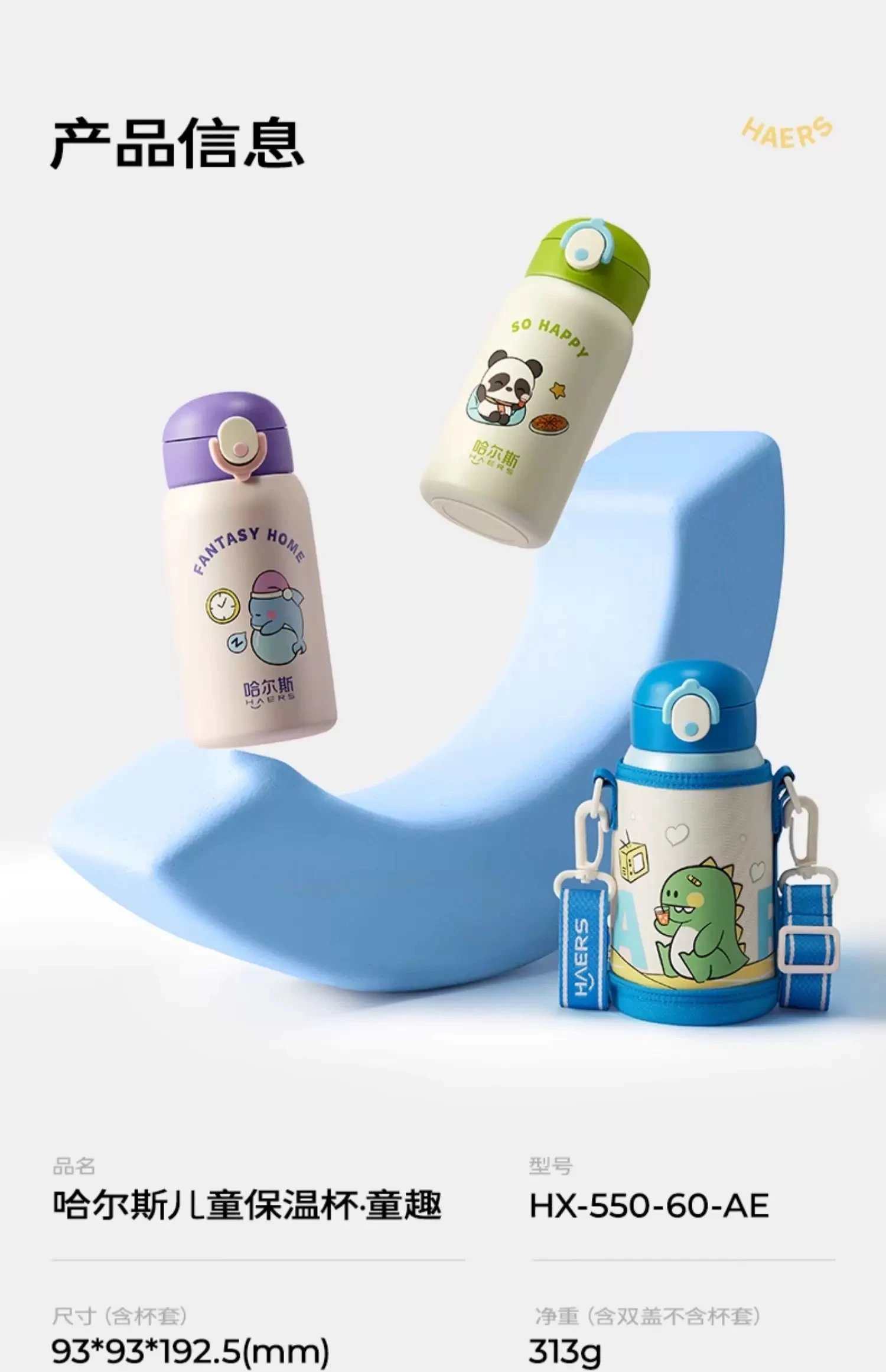 哈尔斯儿童保温杯 550ml容量,水杯全套 杯壶专家哈尔斯出品,线下专柜同款 ~ 旗舰店发货✈️ 颜色款式随机发,不指定,介意勿拍