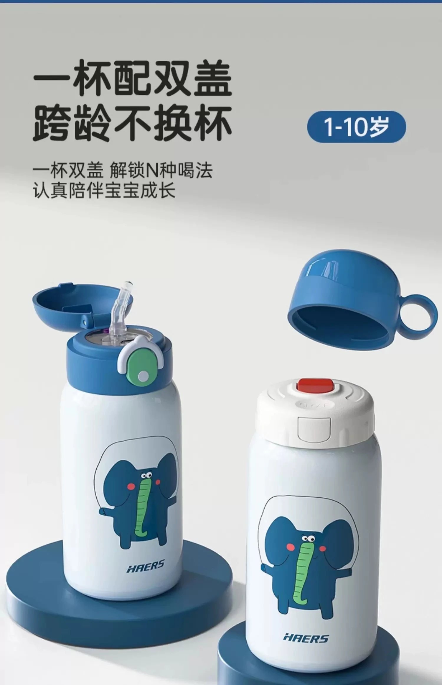 【买就送杯子️款式随机】少量库存️官旗原价99现仅59.9到手HAERS哈尔斯儿童保温杯316不锈钢内胆6层锁温12小时长效保温食品接触级硅胶吸嘴柔润Q弹耐啃咬吮吸轻松好喝水基地直邮