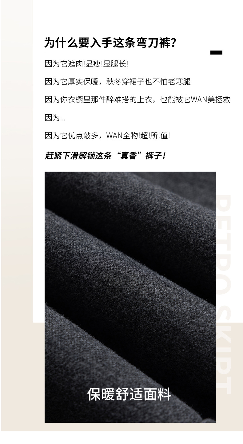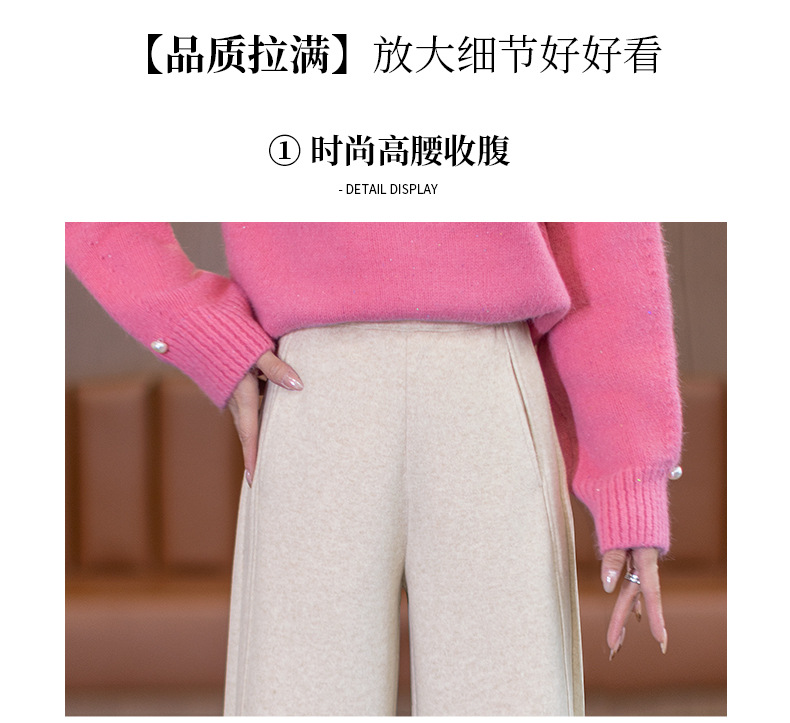 YM 7551-65优雅气质毛呢弯刀阔腿裤高腰显瘦显高休闲裤 商品图2
