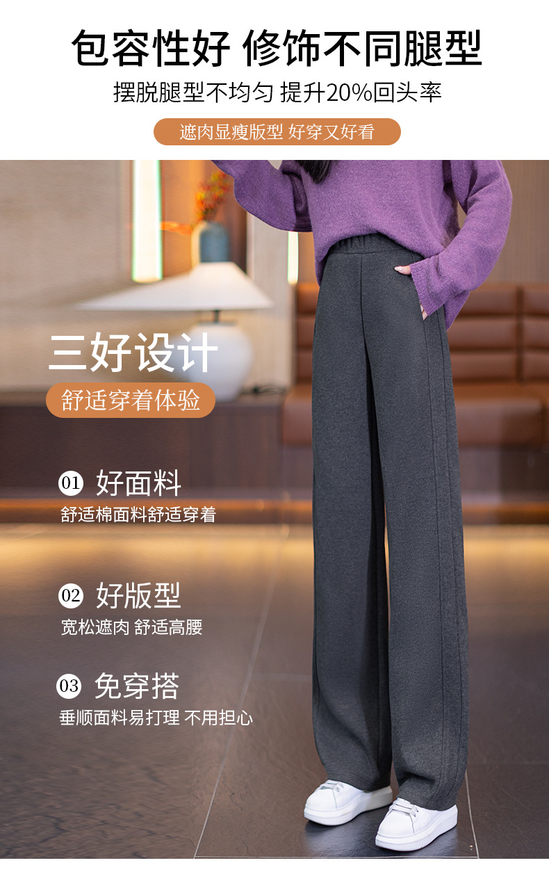 YM 7551-65优雅气质毛呢弯刀阔腿裤高腰显瘦显高休闲裤 商品图4