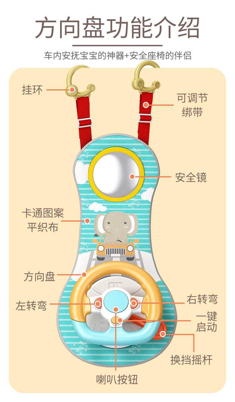 【网红同款!宝宝安全座椅伴侣】车载仿真模拟器方向盘,让宝宝在后座上也能体验驾驶乐趣,锻炼手眼协调能力,促进智力发展。精选优质材料,安全无毒,可靠耐用。