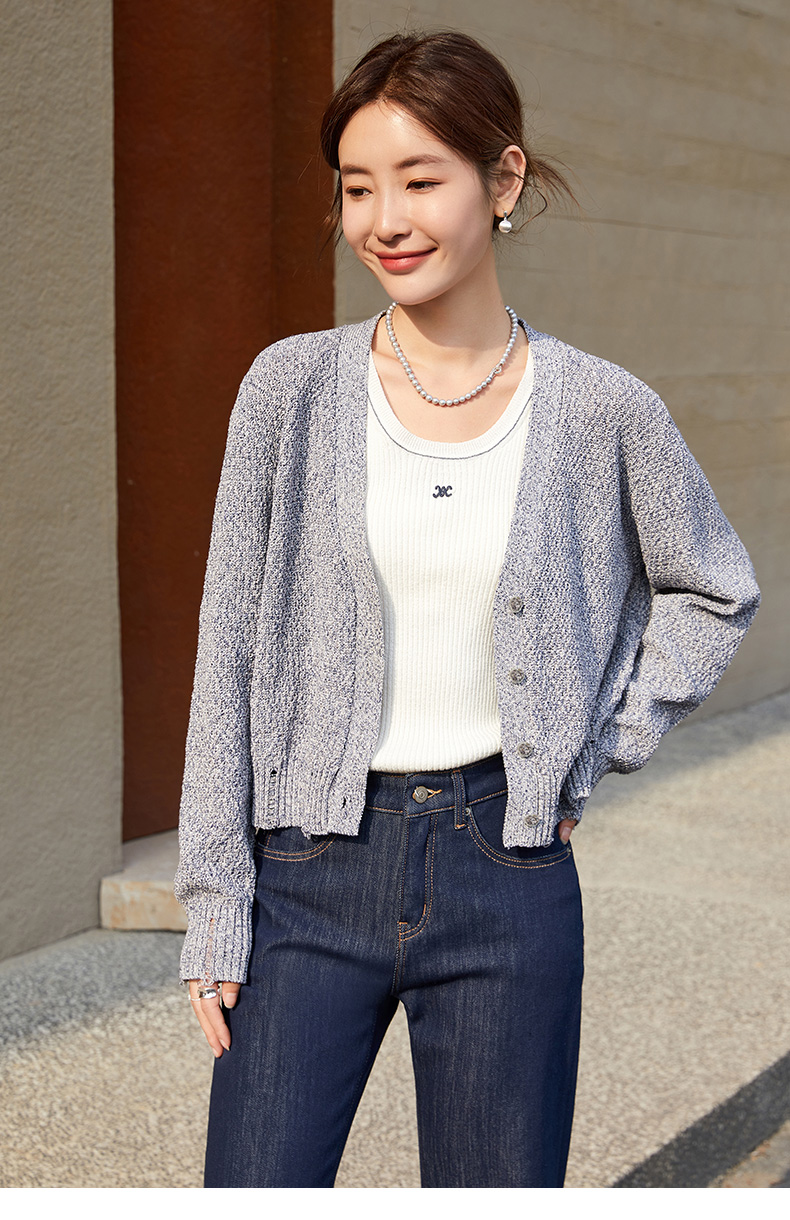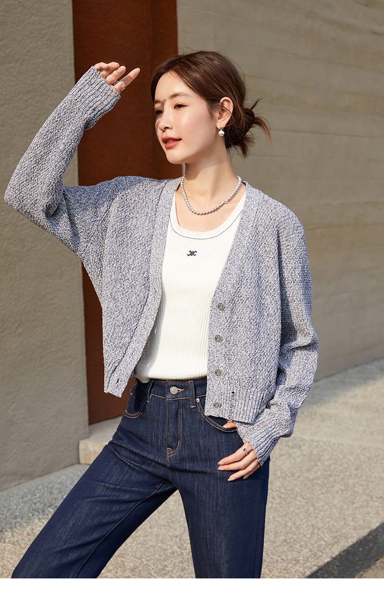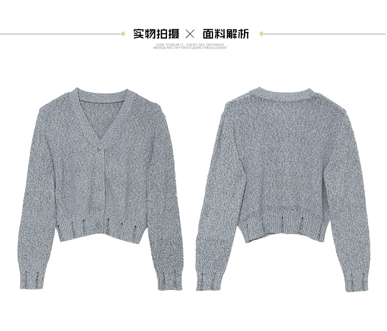 韩系慵懒风必备!浅灰色短款针织开衫外套,软糯又百搭
