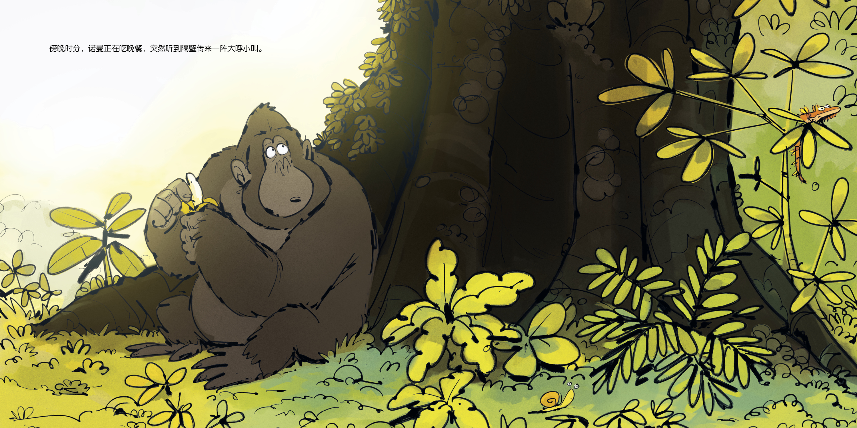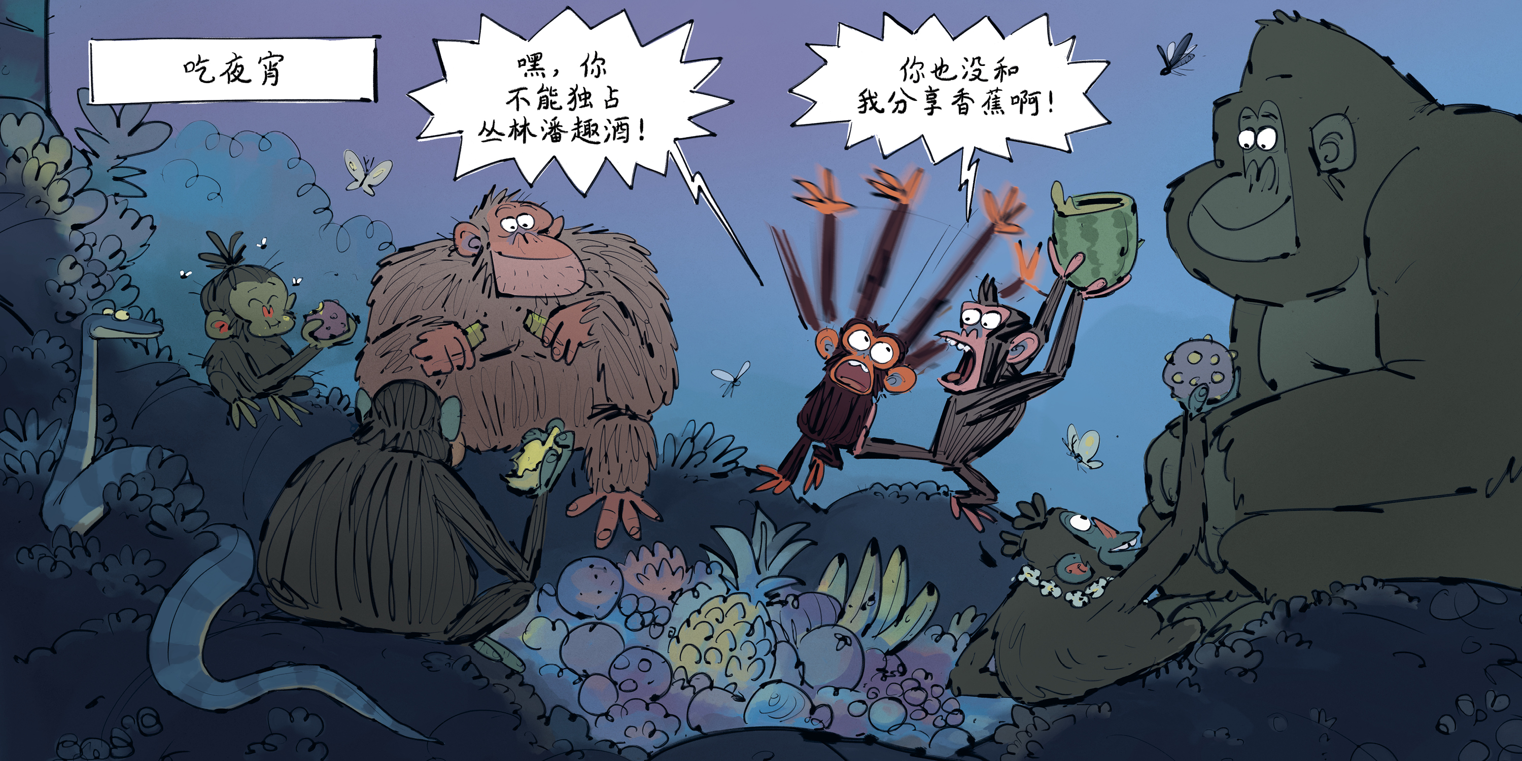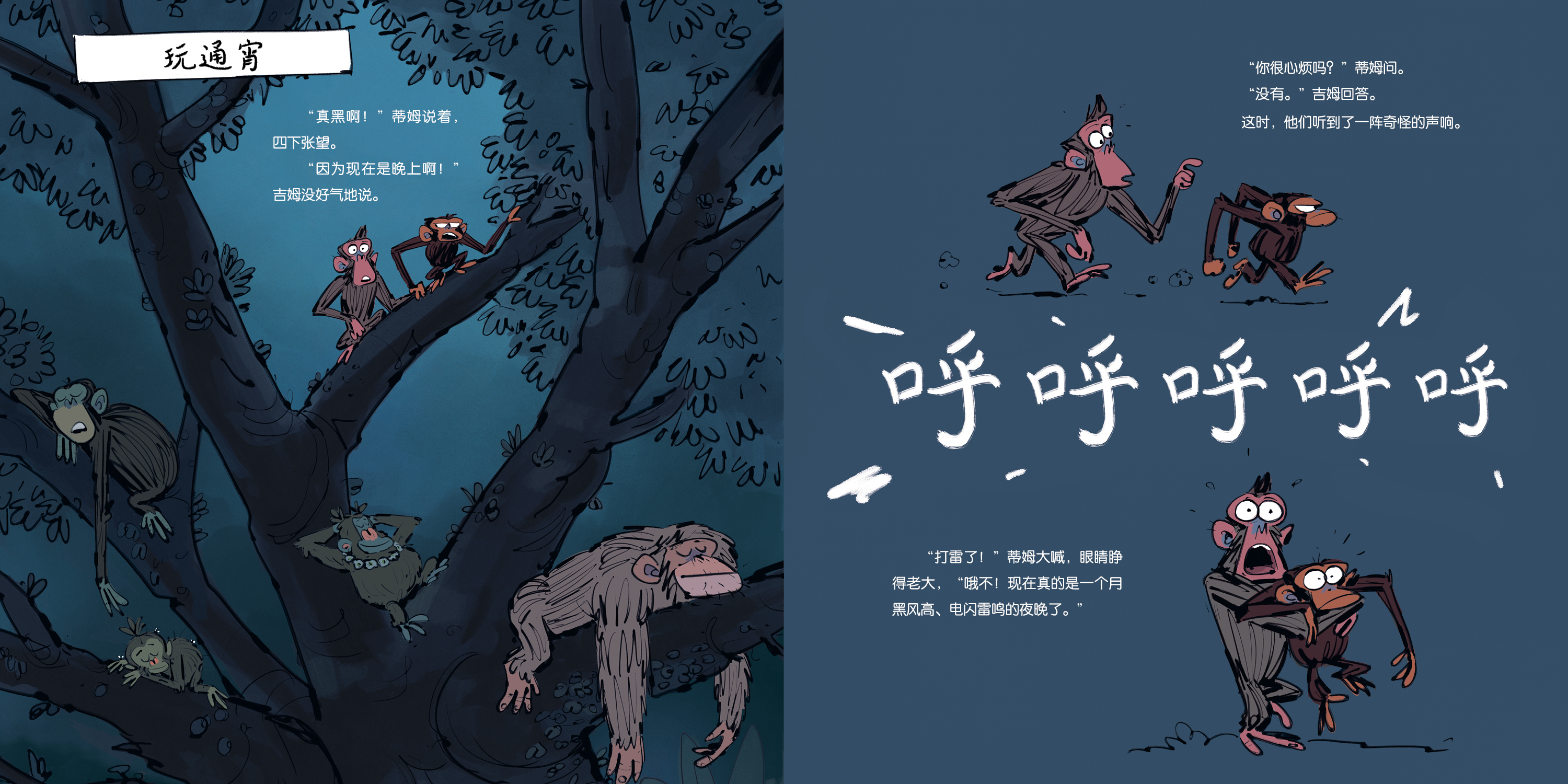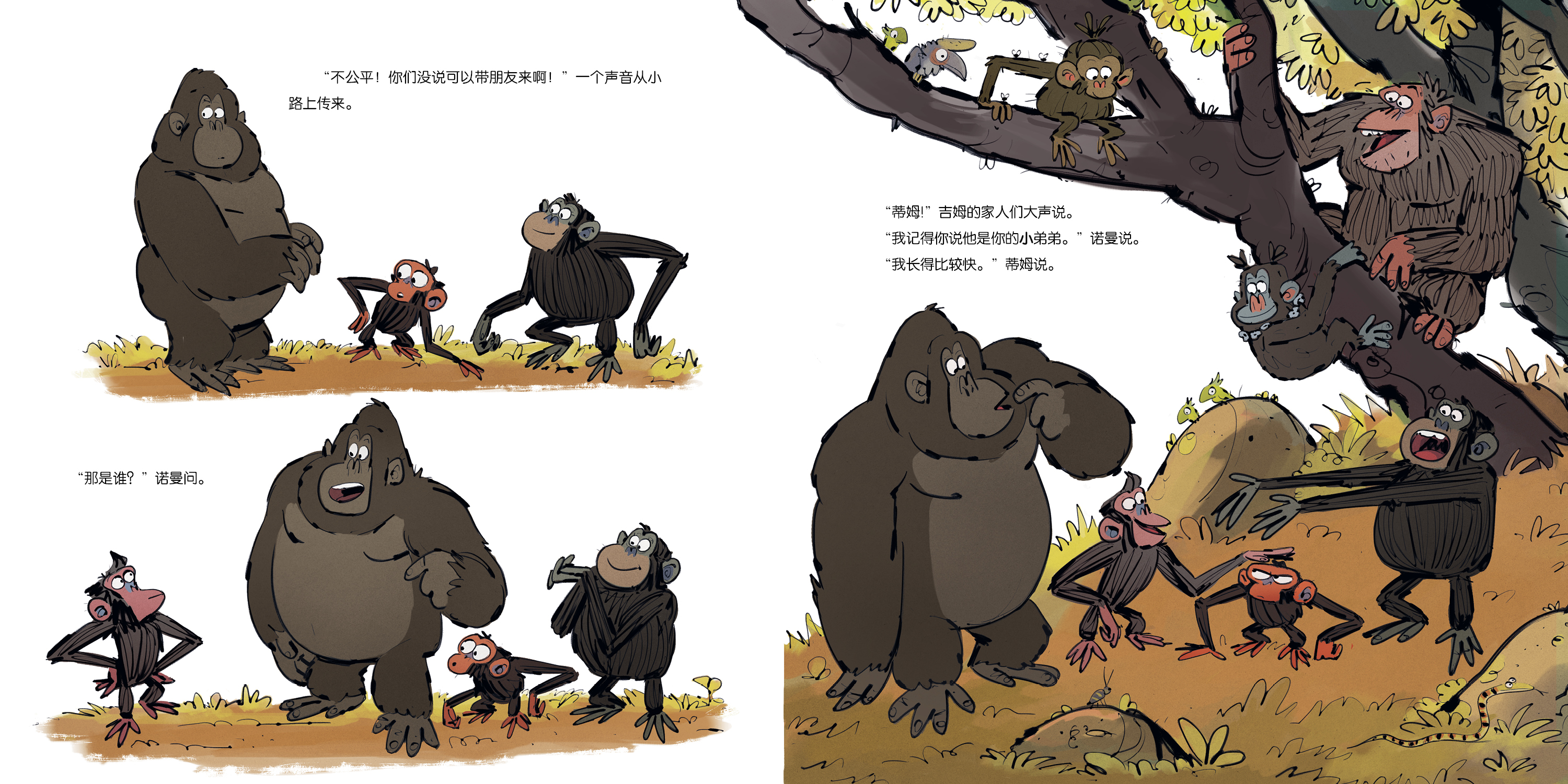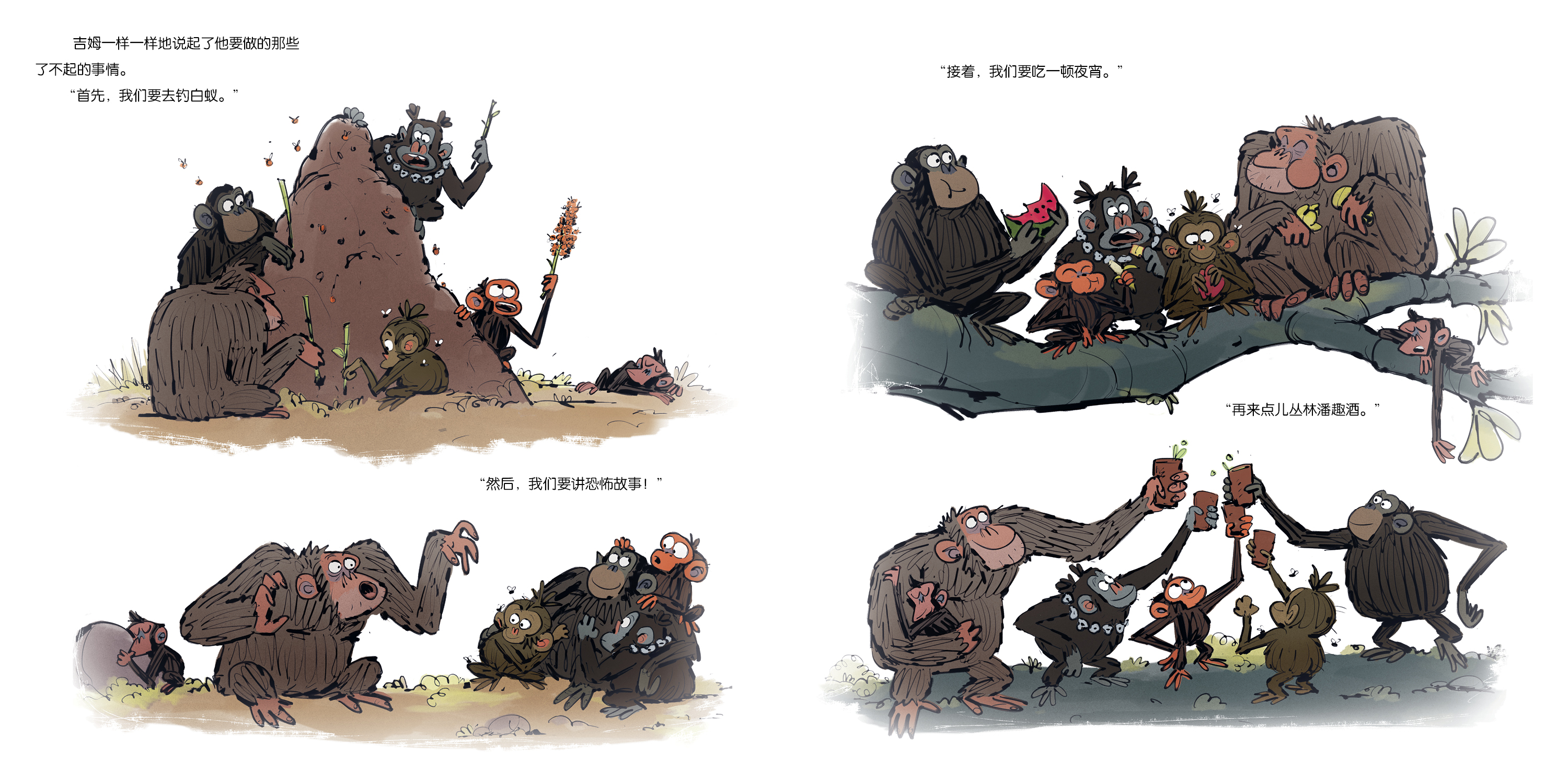 延续了前作《心烦的猴子》文字上以对话为主的特色,简短的对话将动物之间的互动和角色心理完整展现。