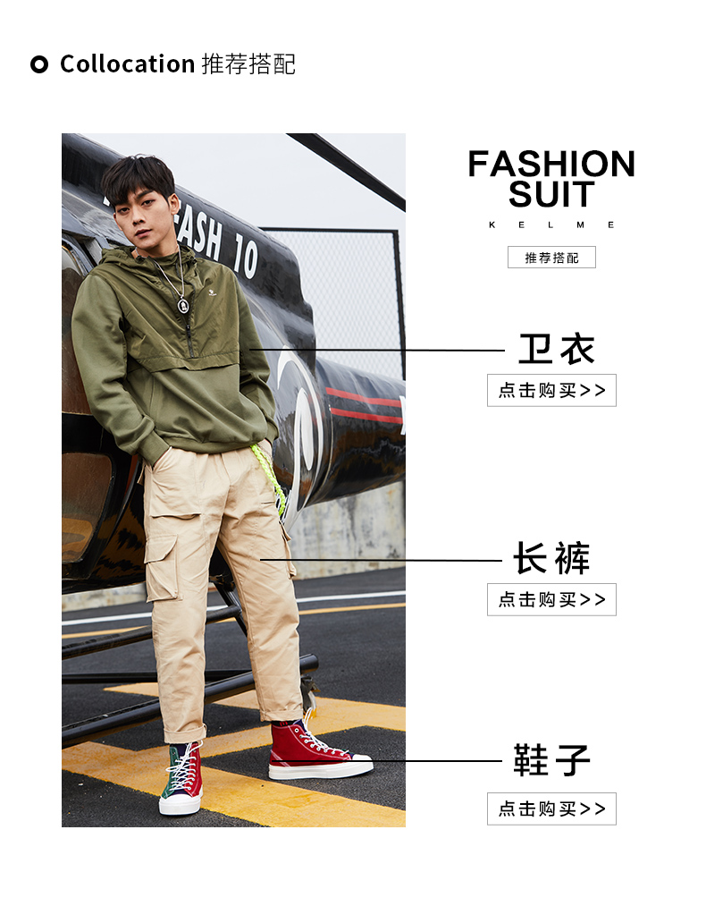 KELME 卡尔美男士运动连帽卫衣半拉链套头衫潮流卫衣时尚新款