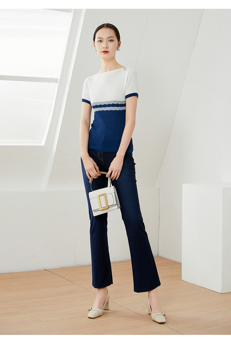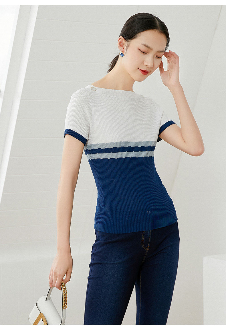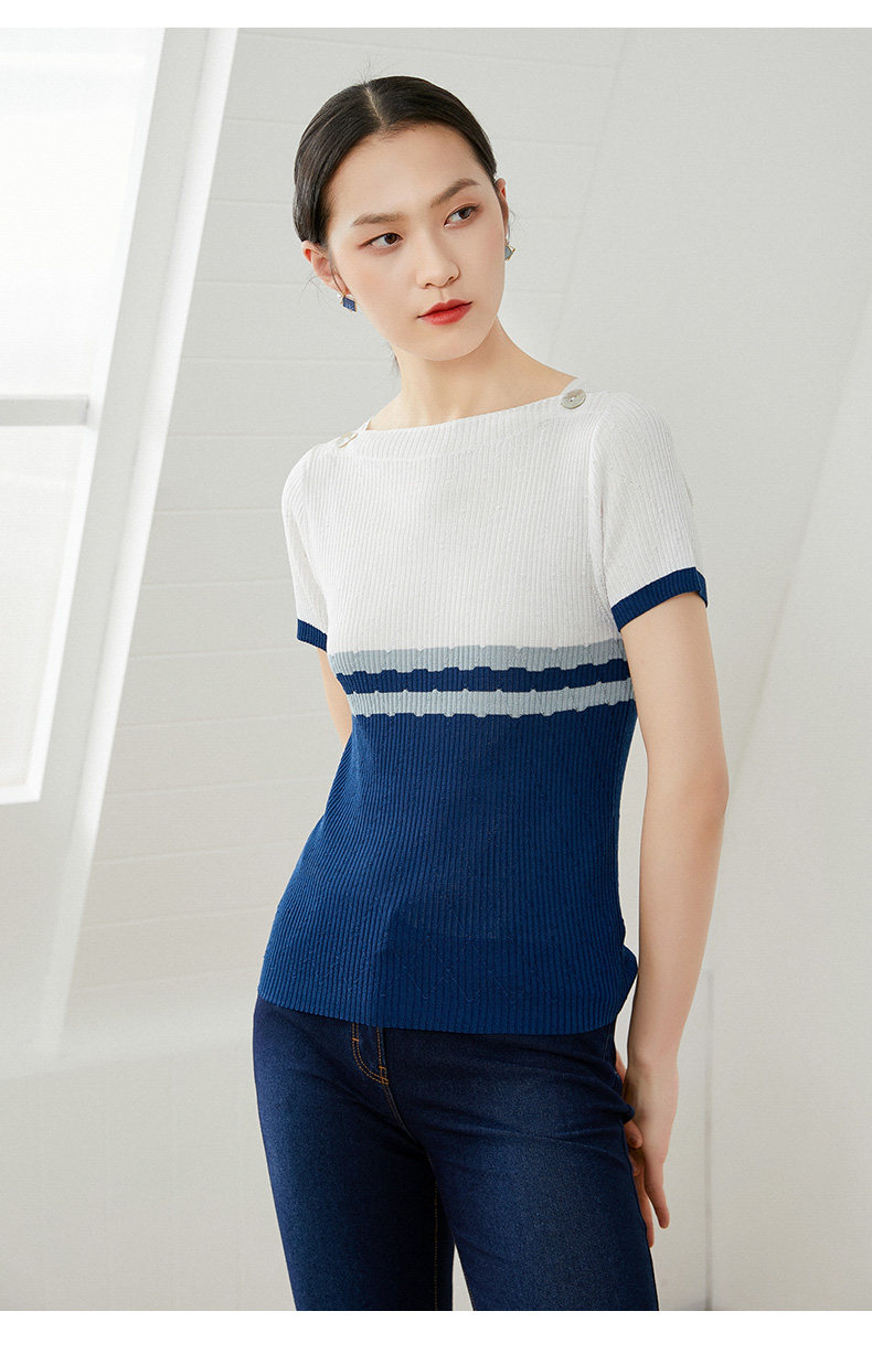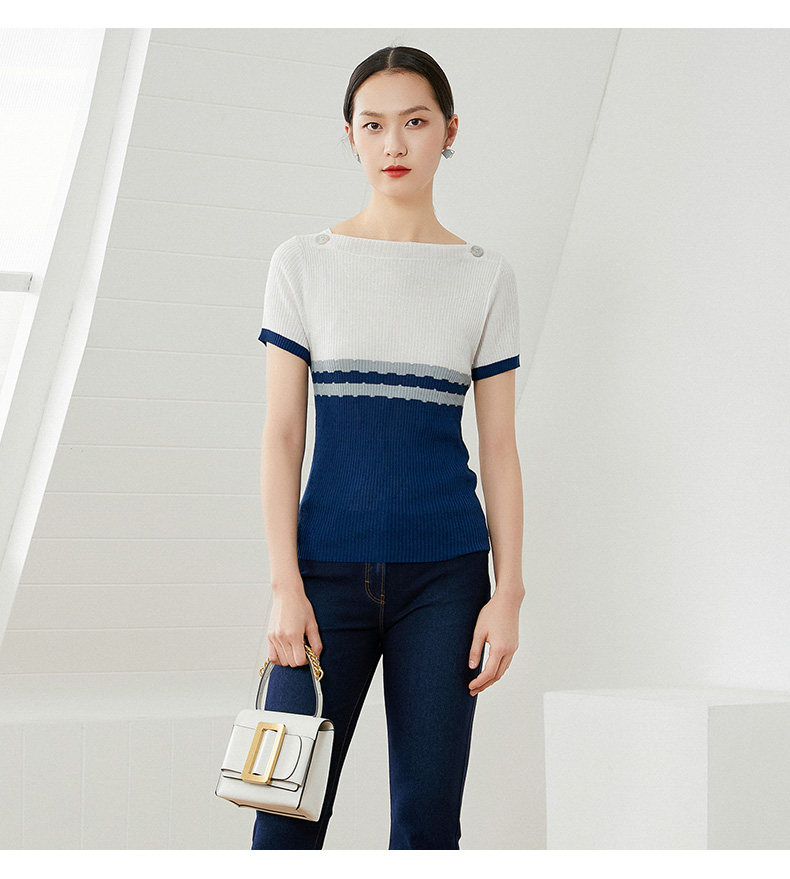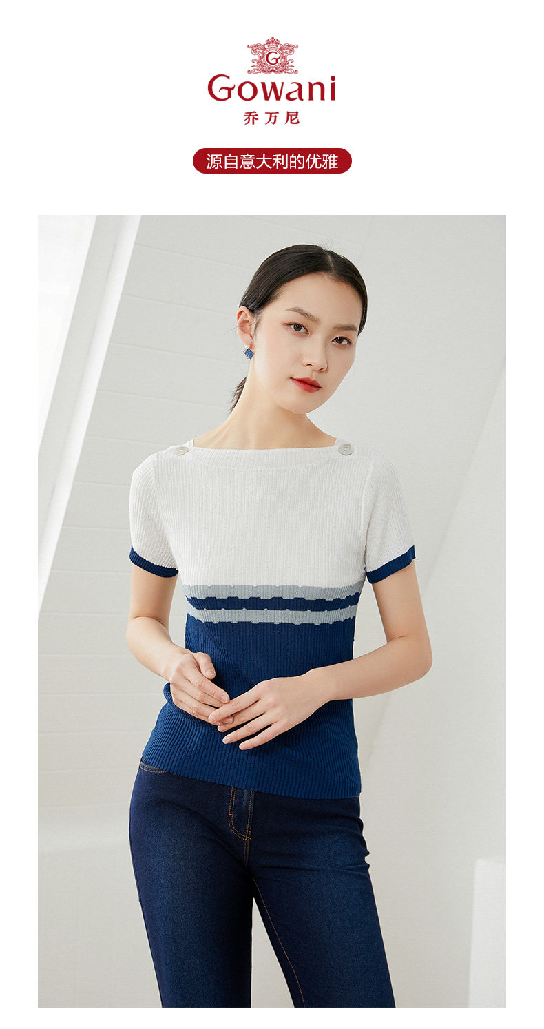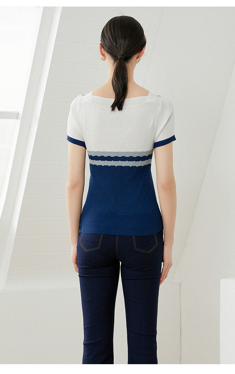 乔万尼早春冰丝针织衫薄款小香风设计感方领修身夏款上衣EI2M816