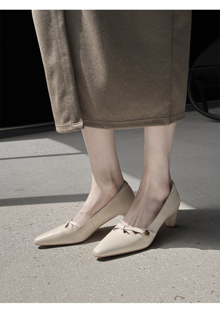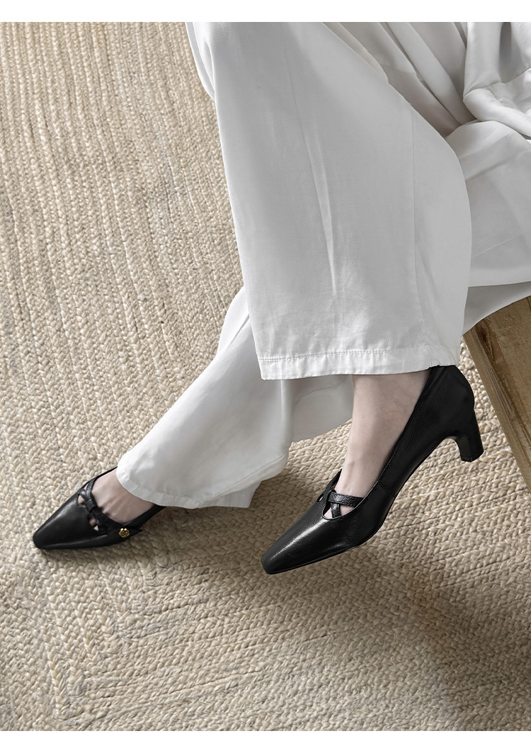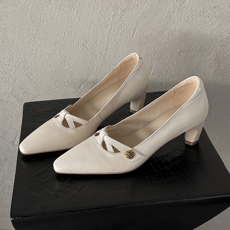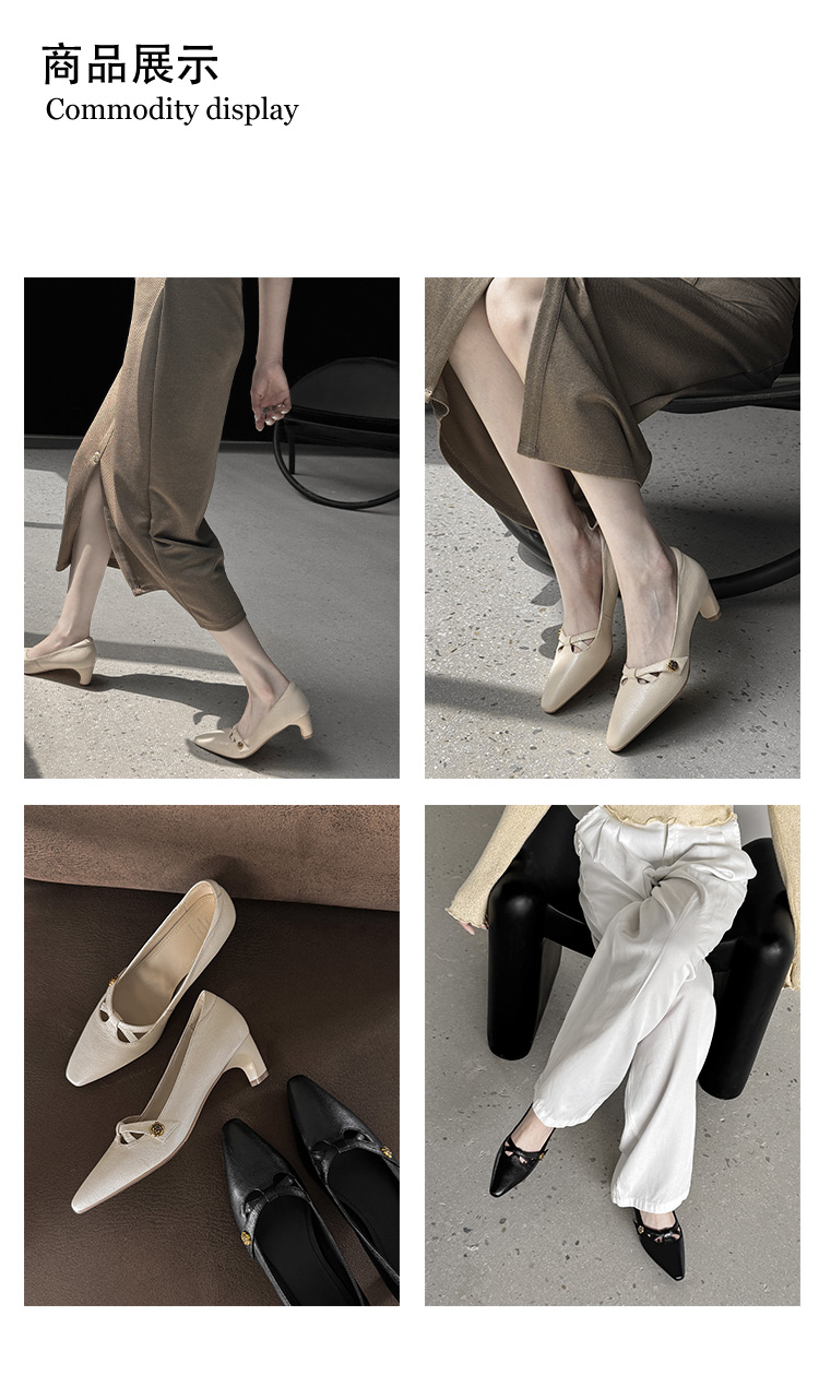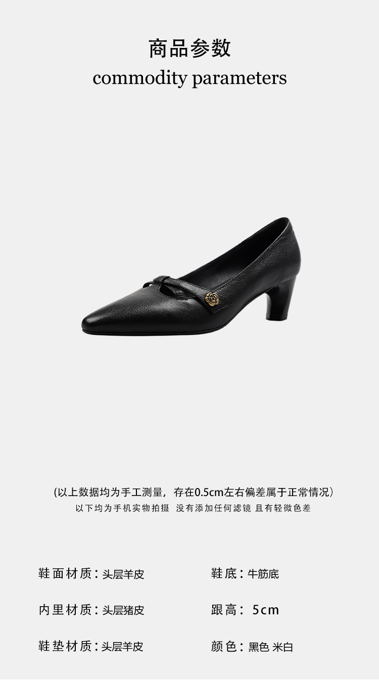 【货号】Jz-1785【帮面材质】头层羊皮【内里材质】头层猪皮【鞋垫材质】头层羊皮【鞋底材质】牛筋底【跟高】5cm【颜色】黑色 米白【尺码】34-39