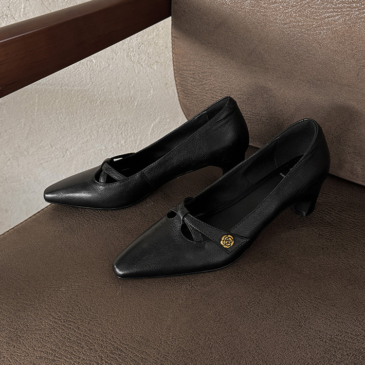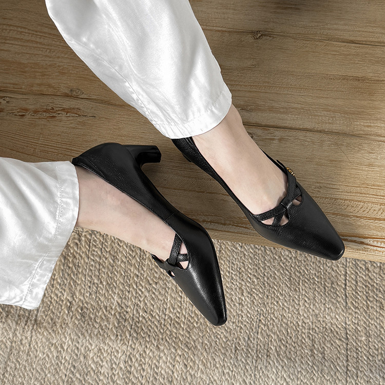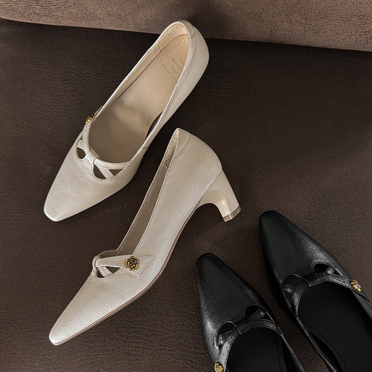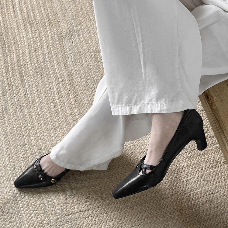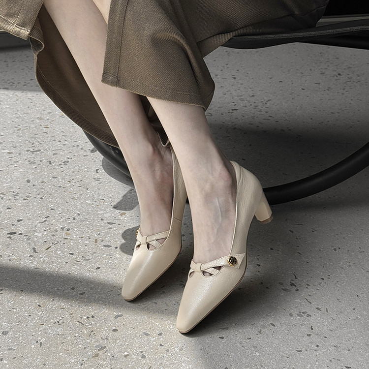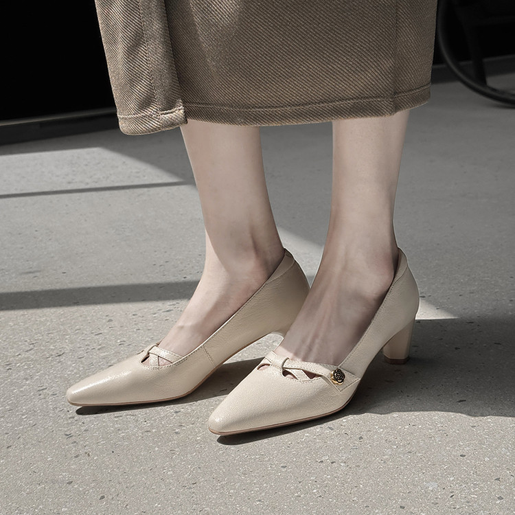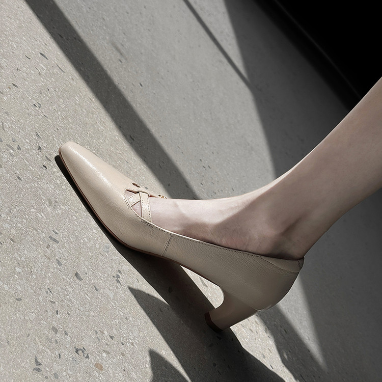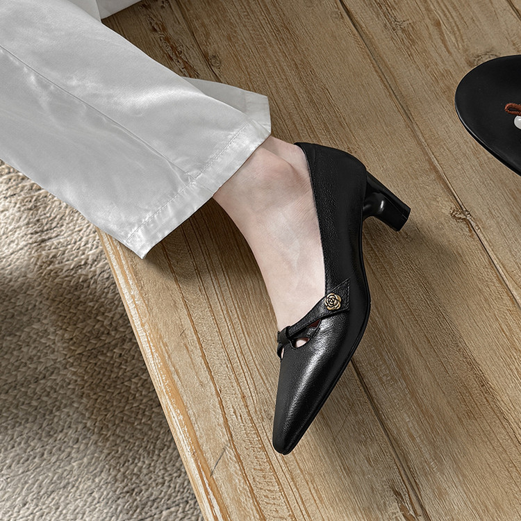 【货号】Jz-1785【帮面材质】头层羊皮【内里材质】头层猪皮【鞋垫材质】头层羊皮【鞋底材质】牛筋底【跟高】5cm【颜色】黑色 米白【尺码】34-39