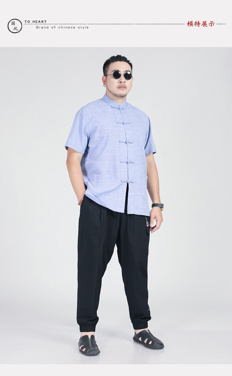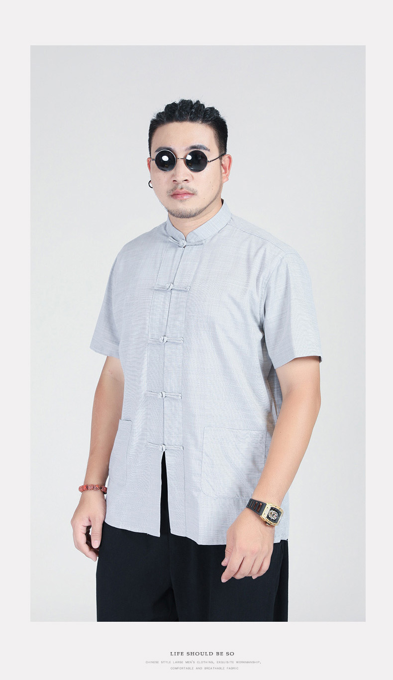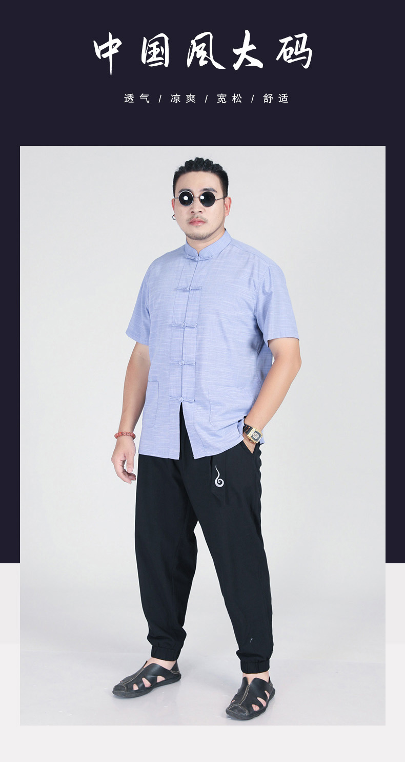 【Q】【DM】超大码大依优型唐装短袖衬衫时尚宽松潮流大码男装短袖半袖中国风