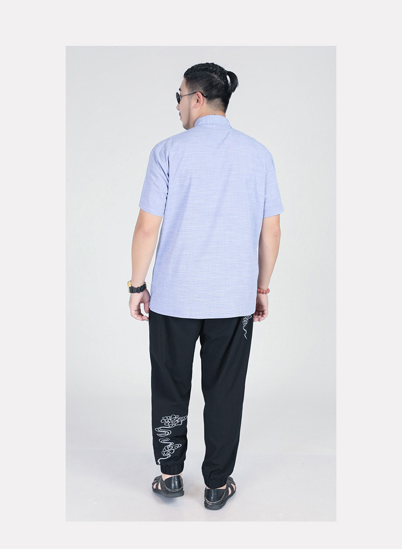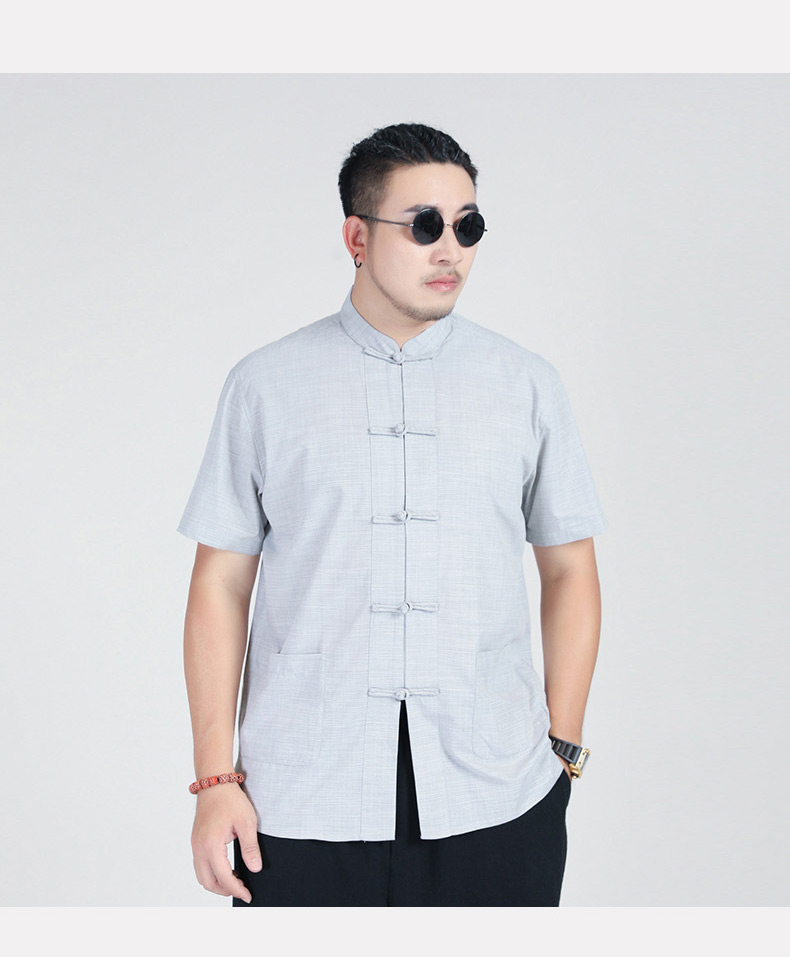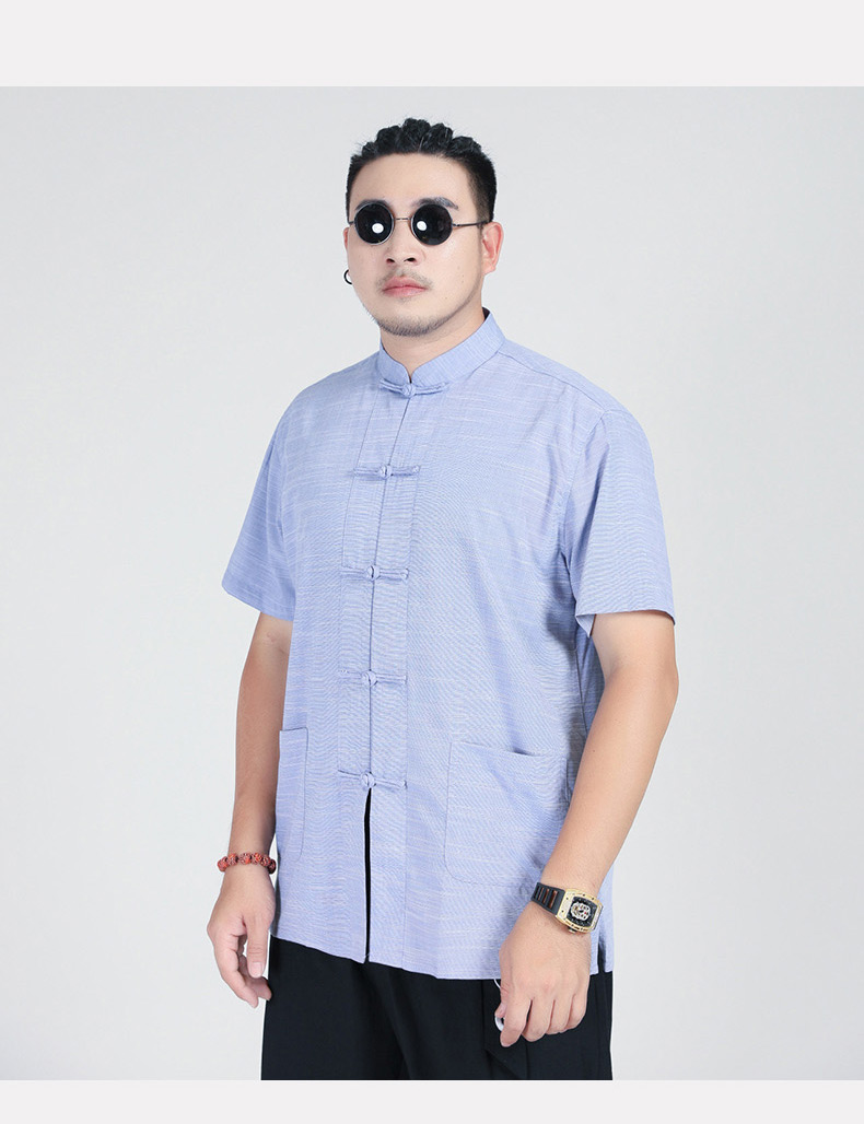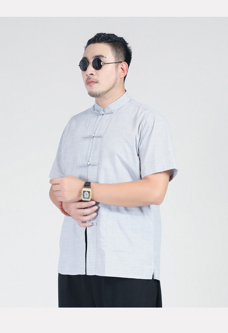 【Q】【DM】超大码大依优型唐装短袖衬衫时尚宽松潮流大码男装短袖半袖中国风