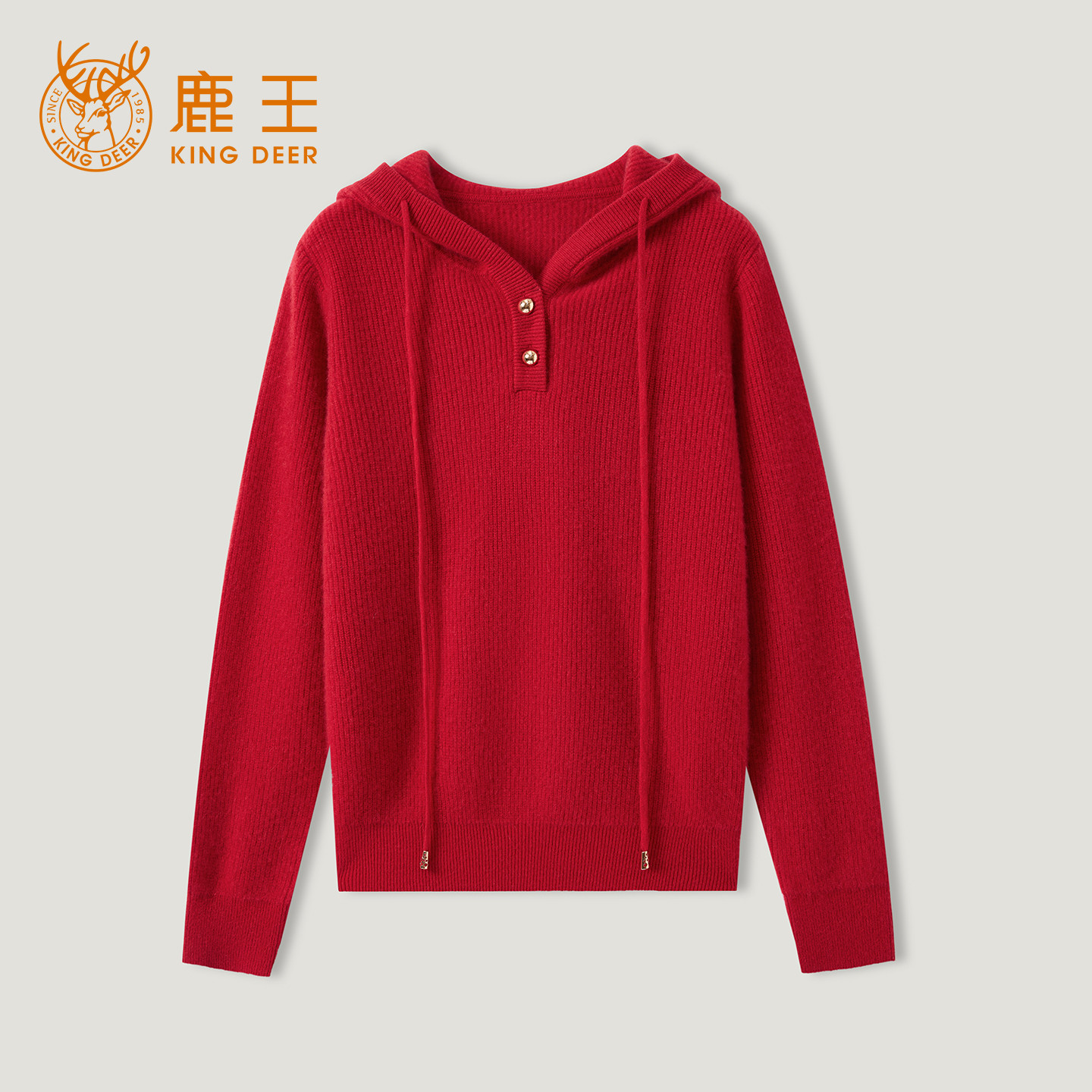 KINGDEER/KD百搭时尚长袖宽松圆领帽衫羊绒衫L805943轻运动/花朵/休闲款鹿王 红色