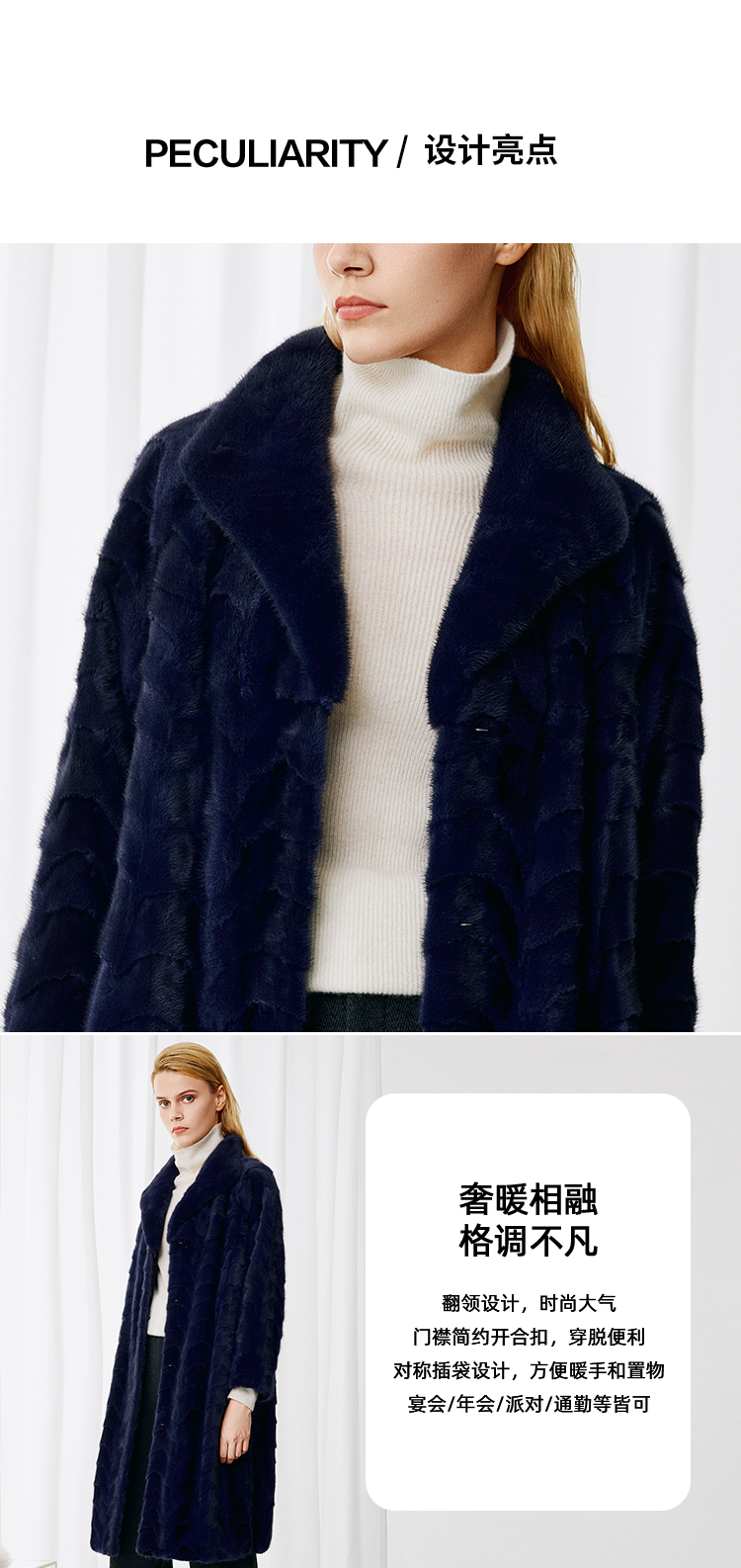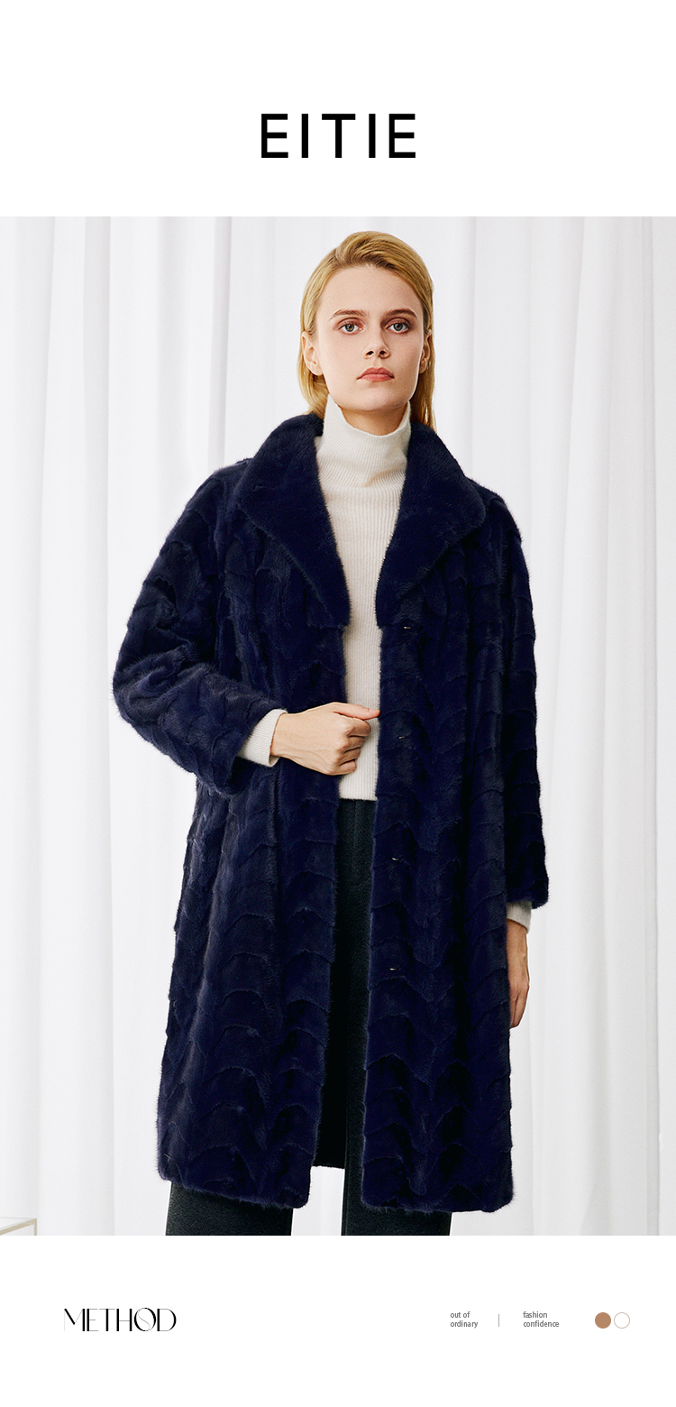EITIE爱特爱气质翻领保暖直筒奢华大衣皮草外套冬新款8093720
