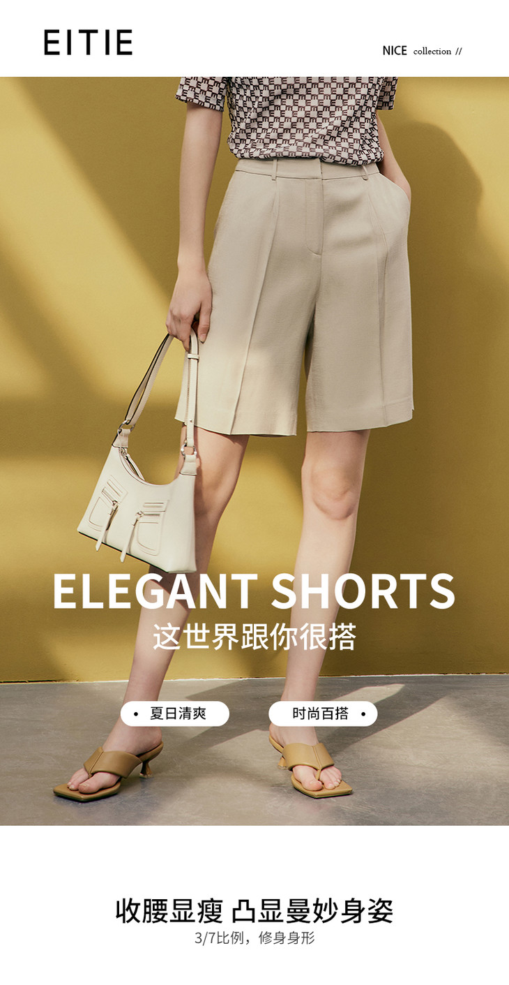 EITIE爱特爱春季新款高腰显瘦休闲裤女7305014