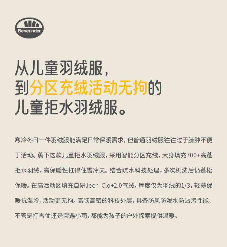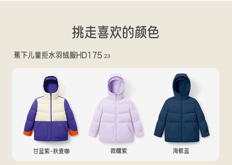 蕉下儿童拒水羽绒服HD17523男女童蓬松保暖秋冬季防风白鸭绒外套