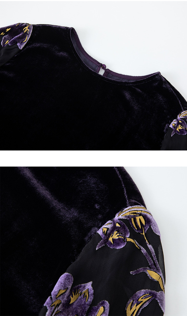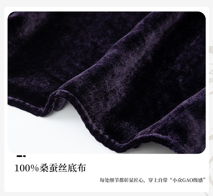 国风印花拼接真丝丝绒,复古上衣圆领气质时尚SM-12501331