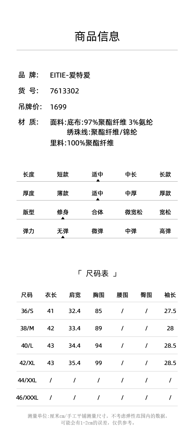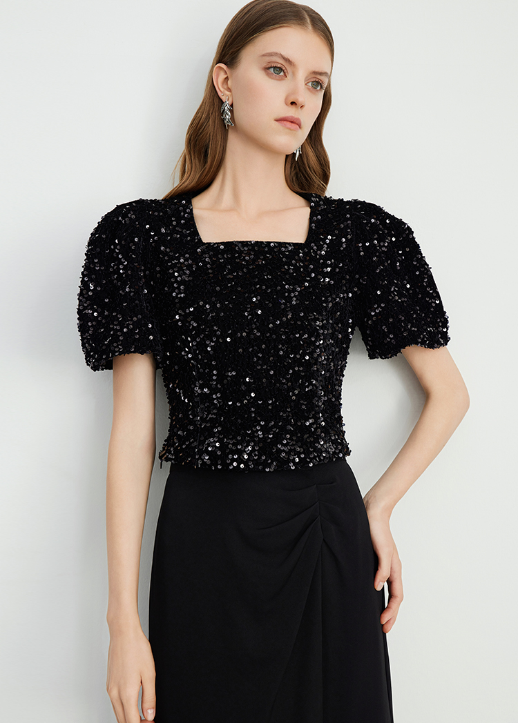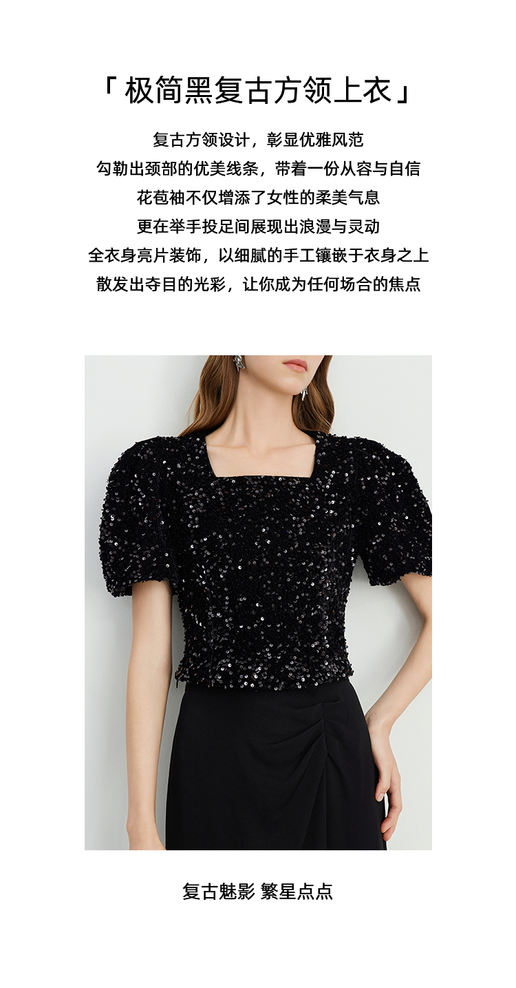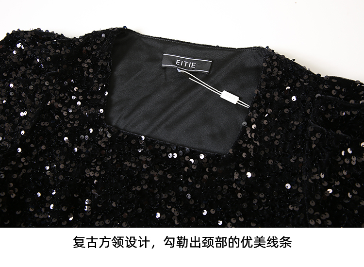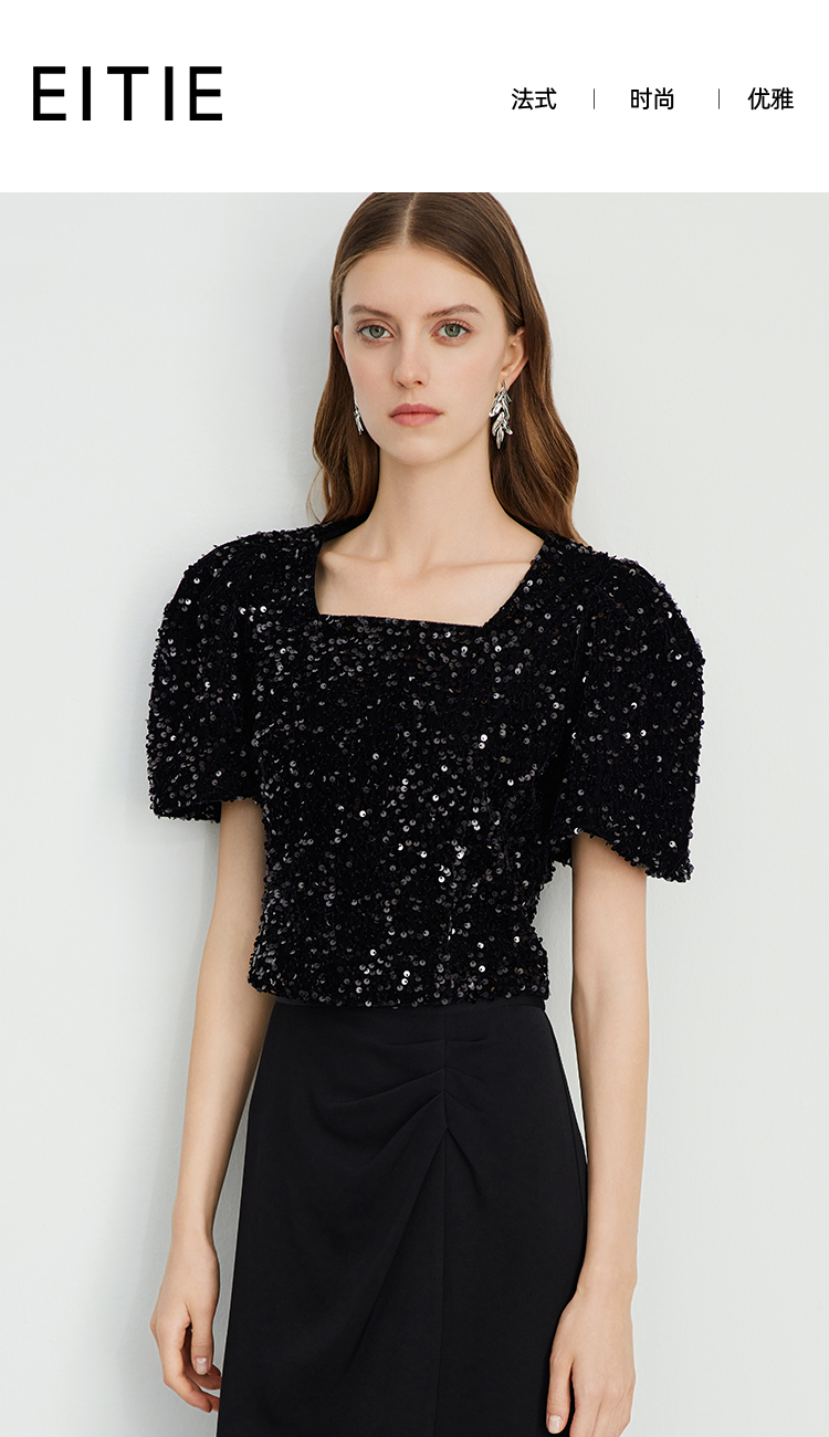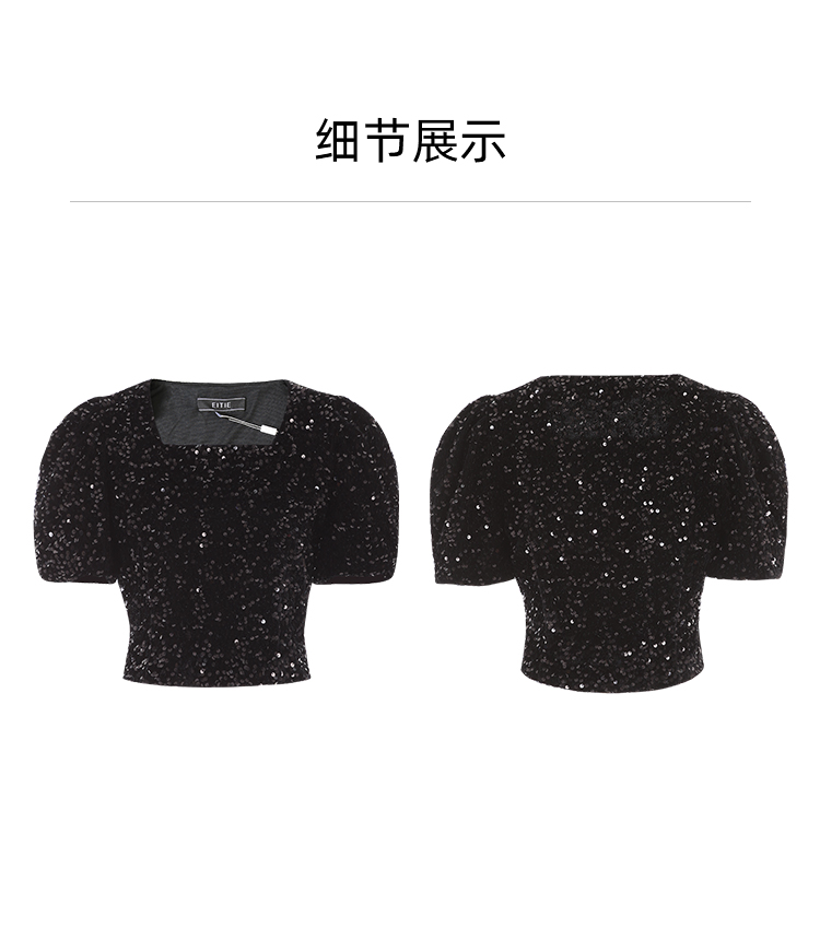 EITIE爱特爱星空亮片黑色显瘦修身短款上衣7613302