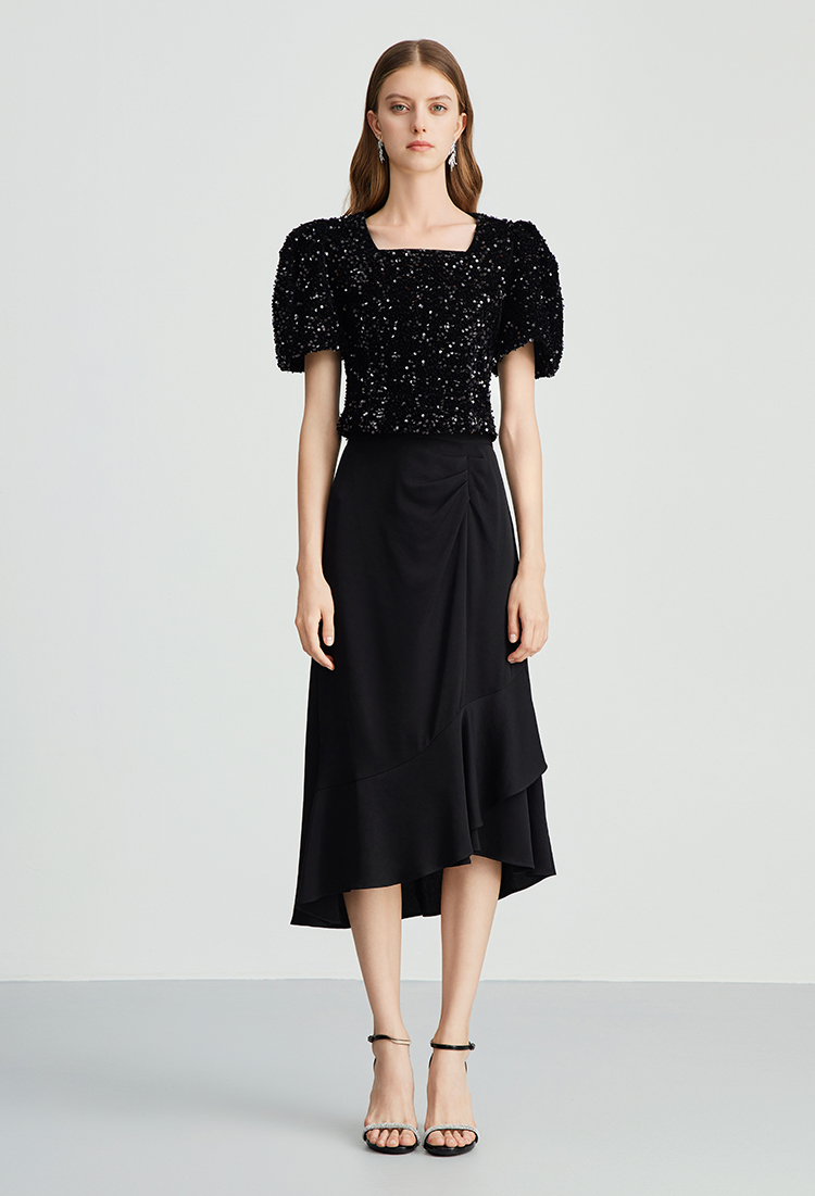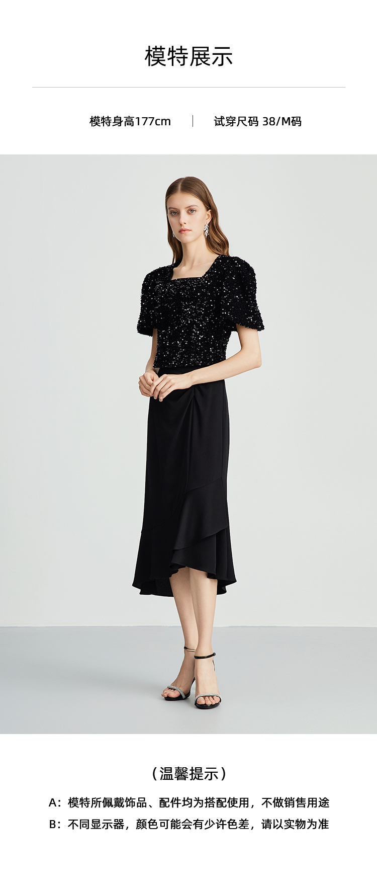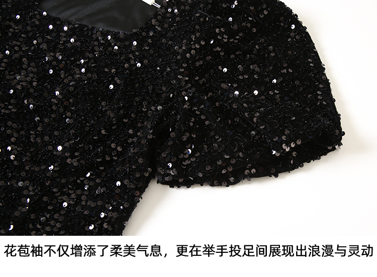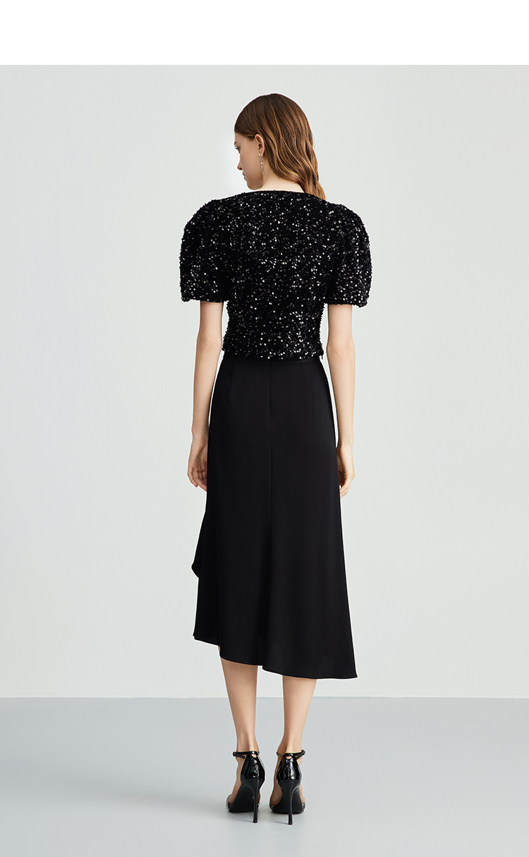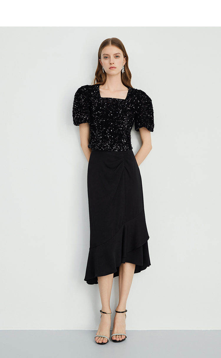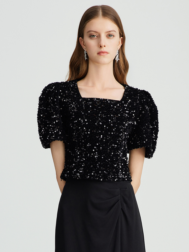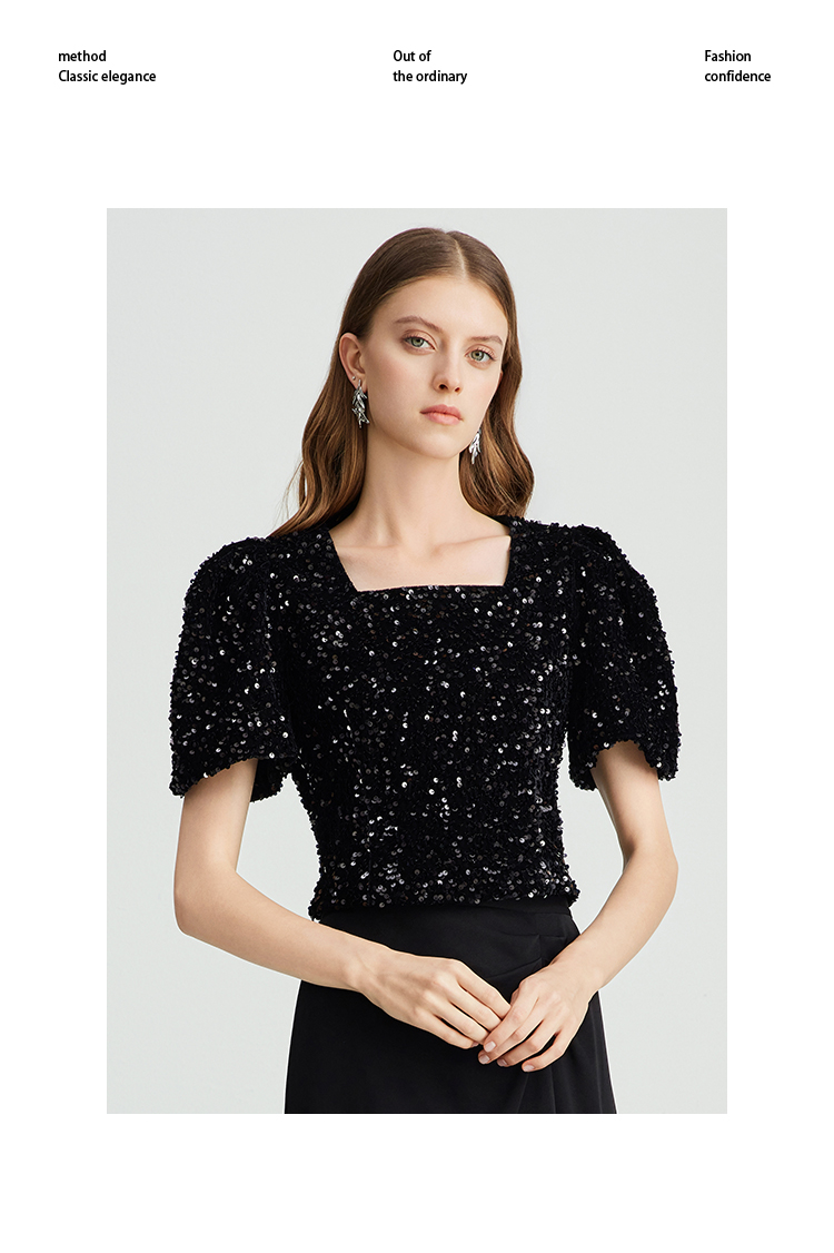 EITIE爱特爱星空亮片黑色显瘦修身短款上衣7613302