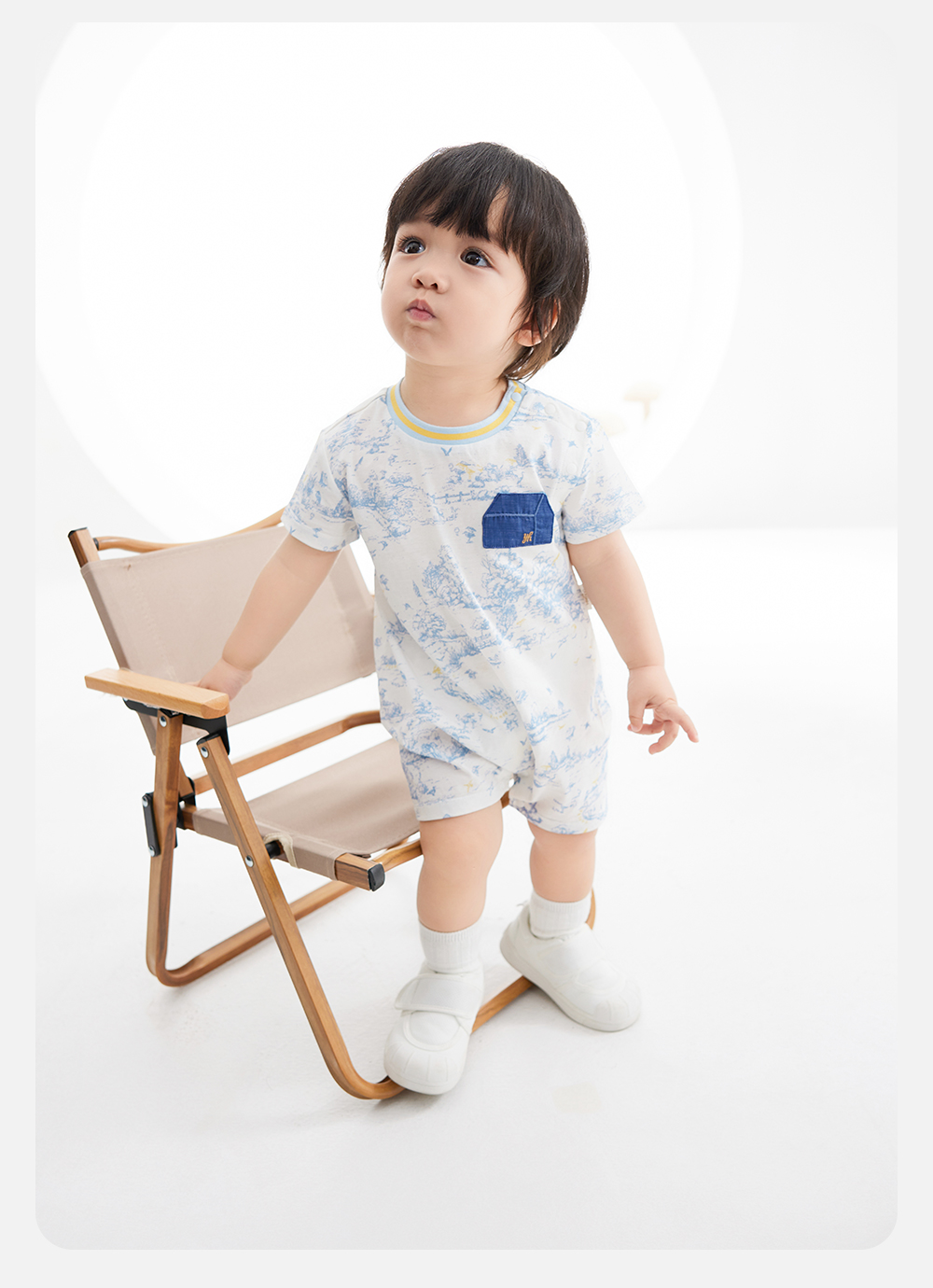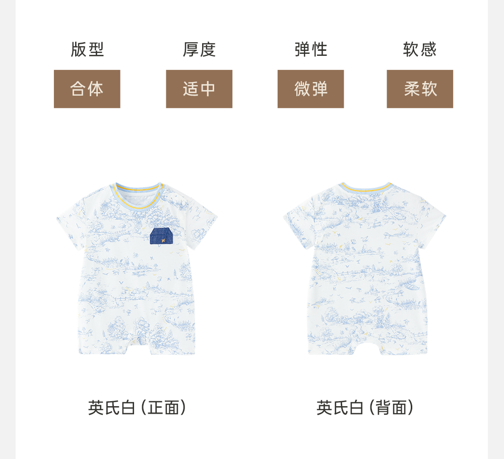 【商场同款】英氏婴儿衣服夏季透气男宝短袖连体衣纯棉新款Z
