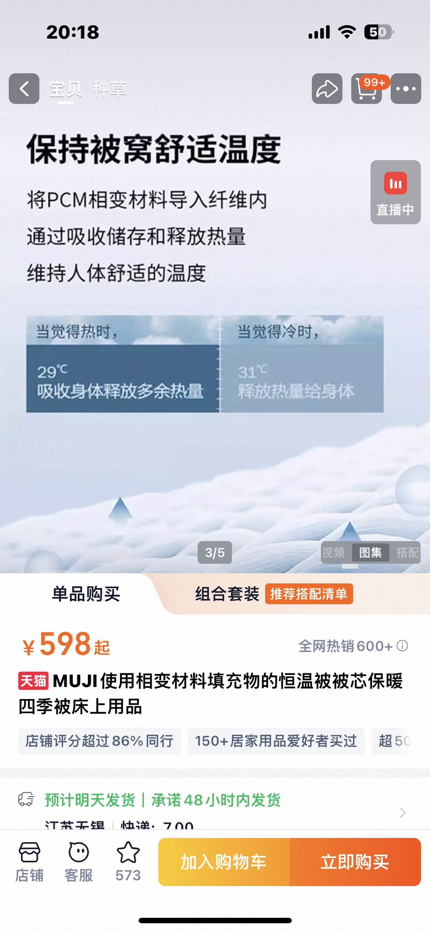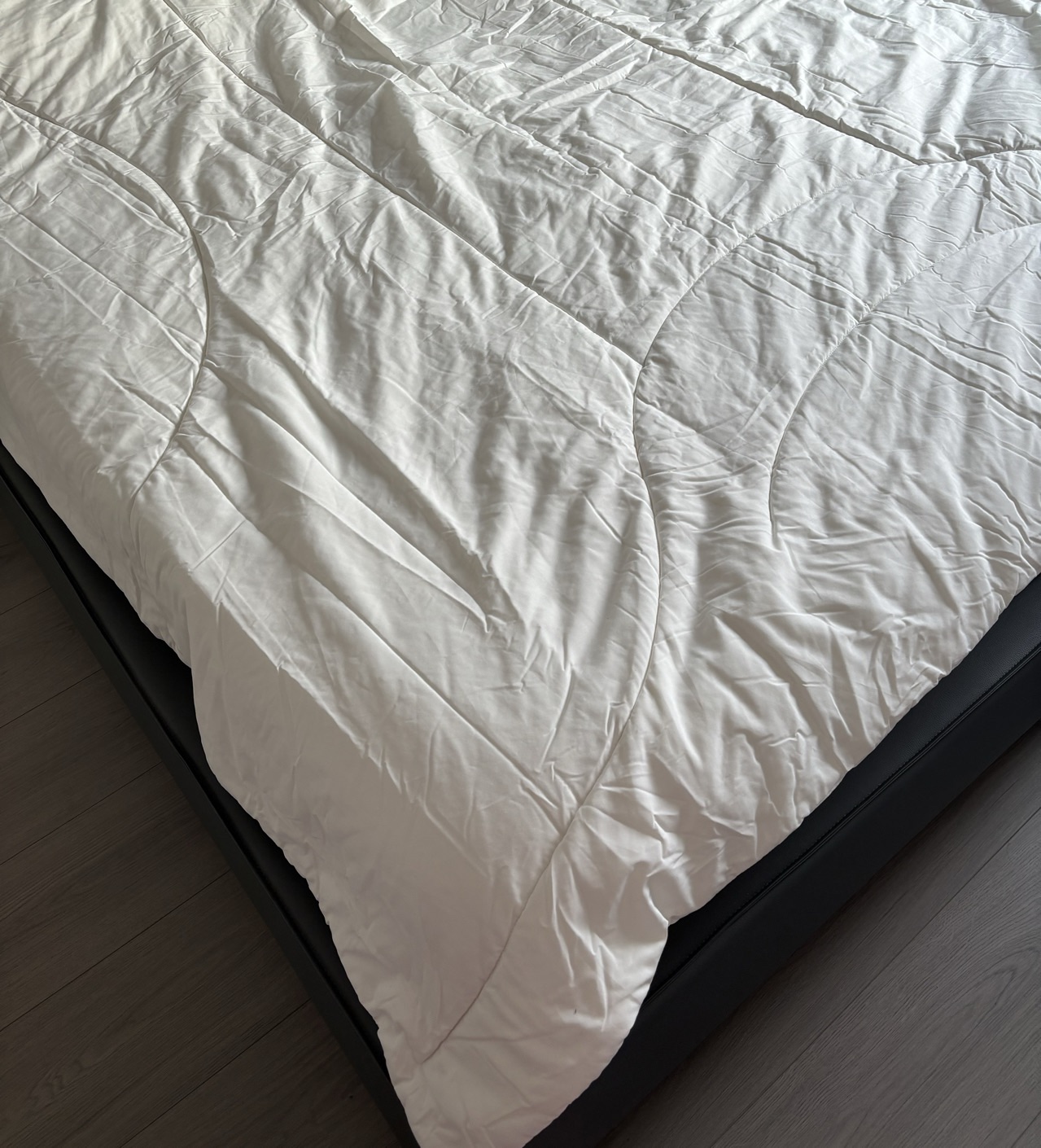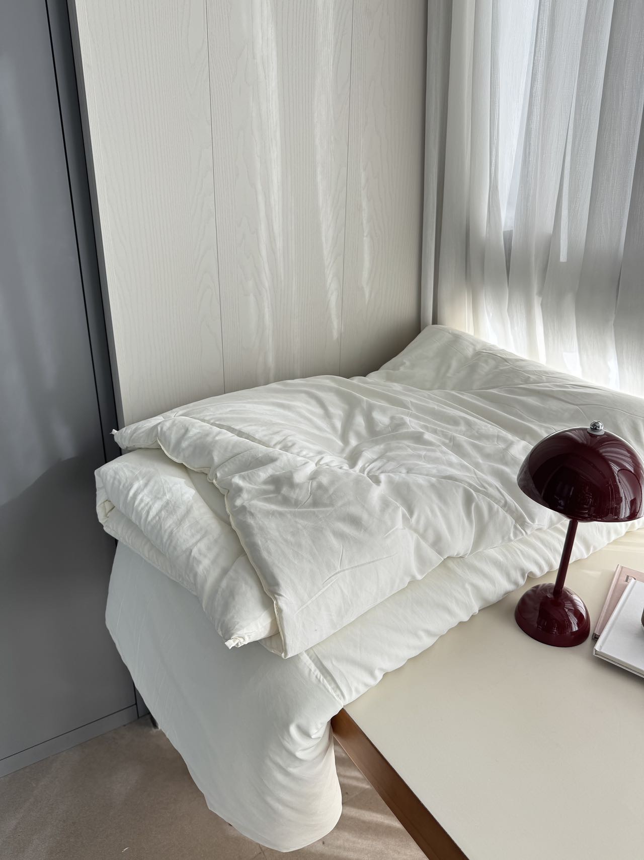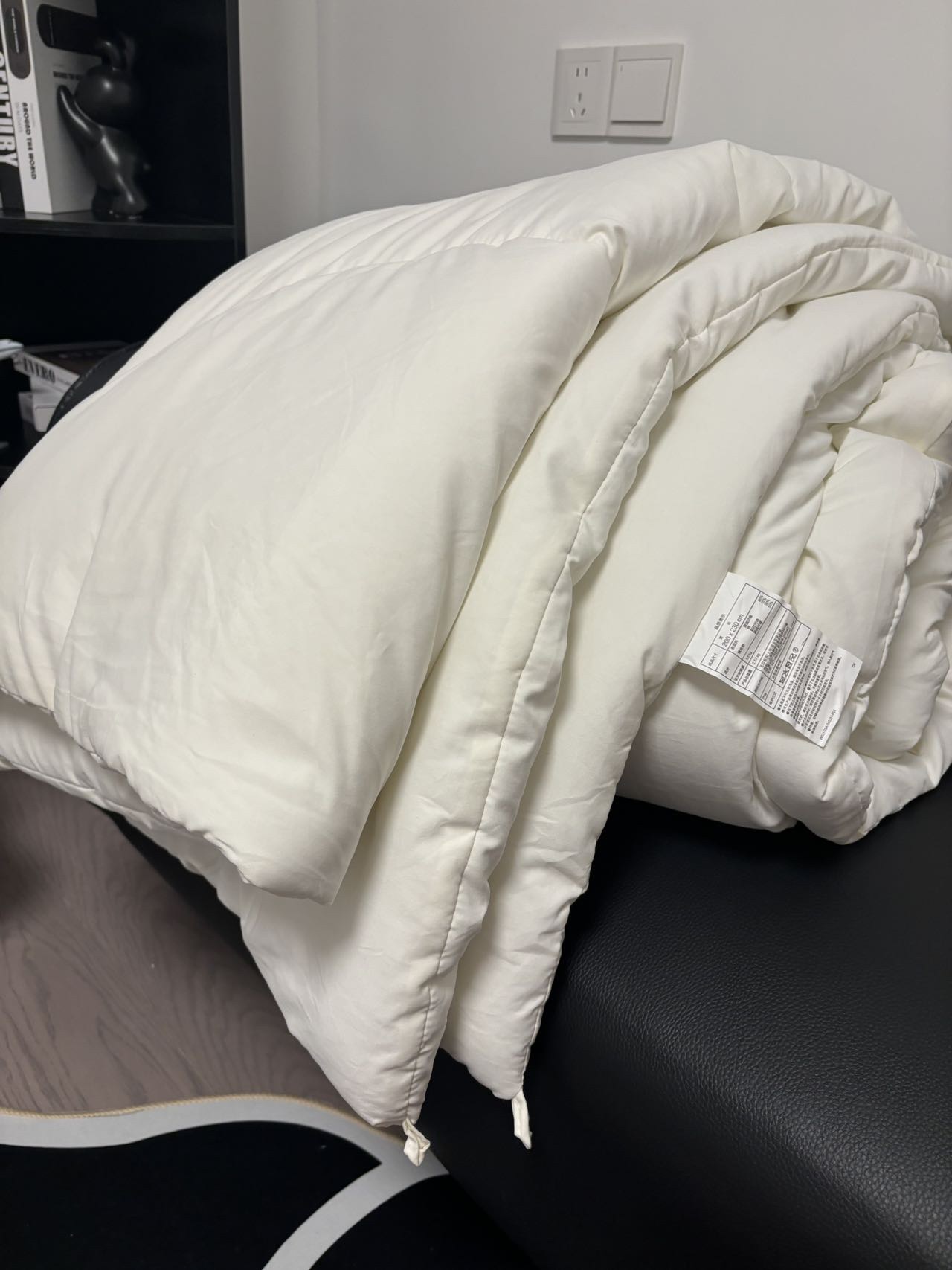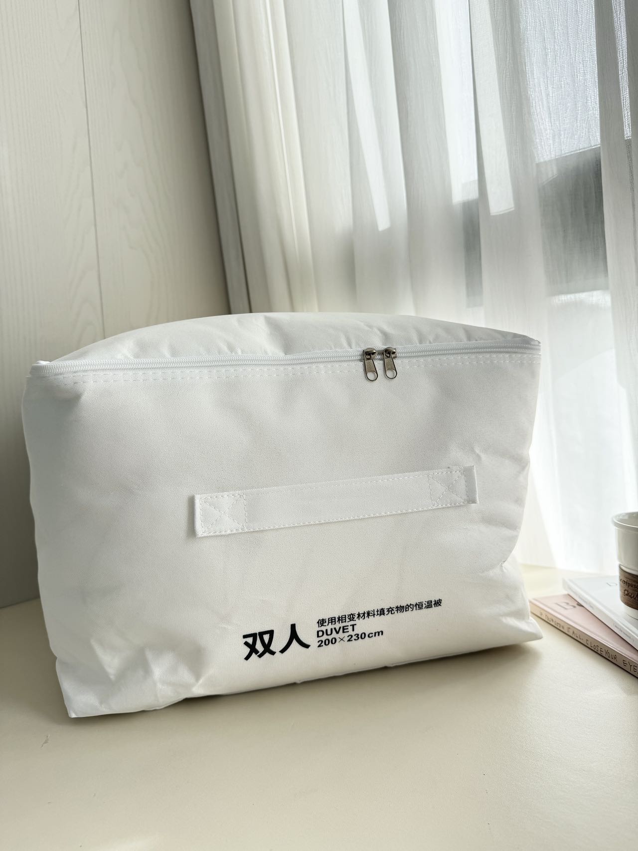 日单MUJI抗菌除螨恒温纤维被,日本黑科技产品,使用相变材料填充物,使其产生平衡调温的效果。恒温纤维根据人体不同温度,调节被窝温度,使其人体一直处于舒适温度。