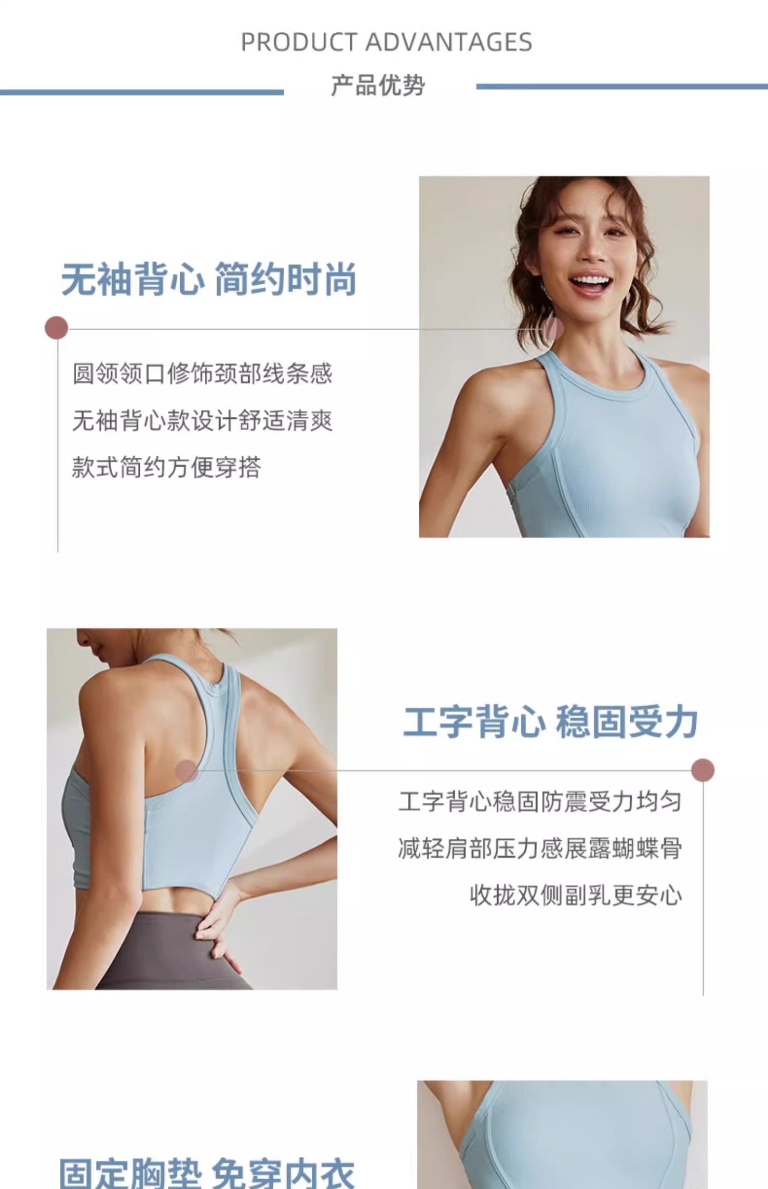 跃牌【美西西系列】细带美背螺纹背心紧身瑜伽文胸健身运动内衣女瑜伽服上衣WX-5916