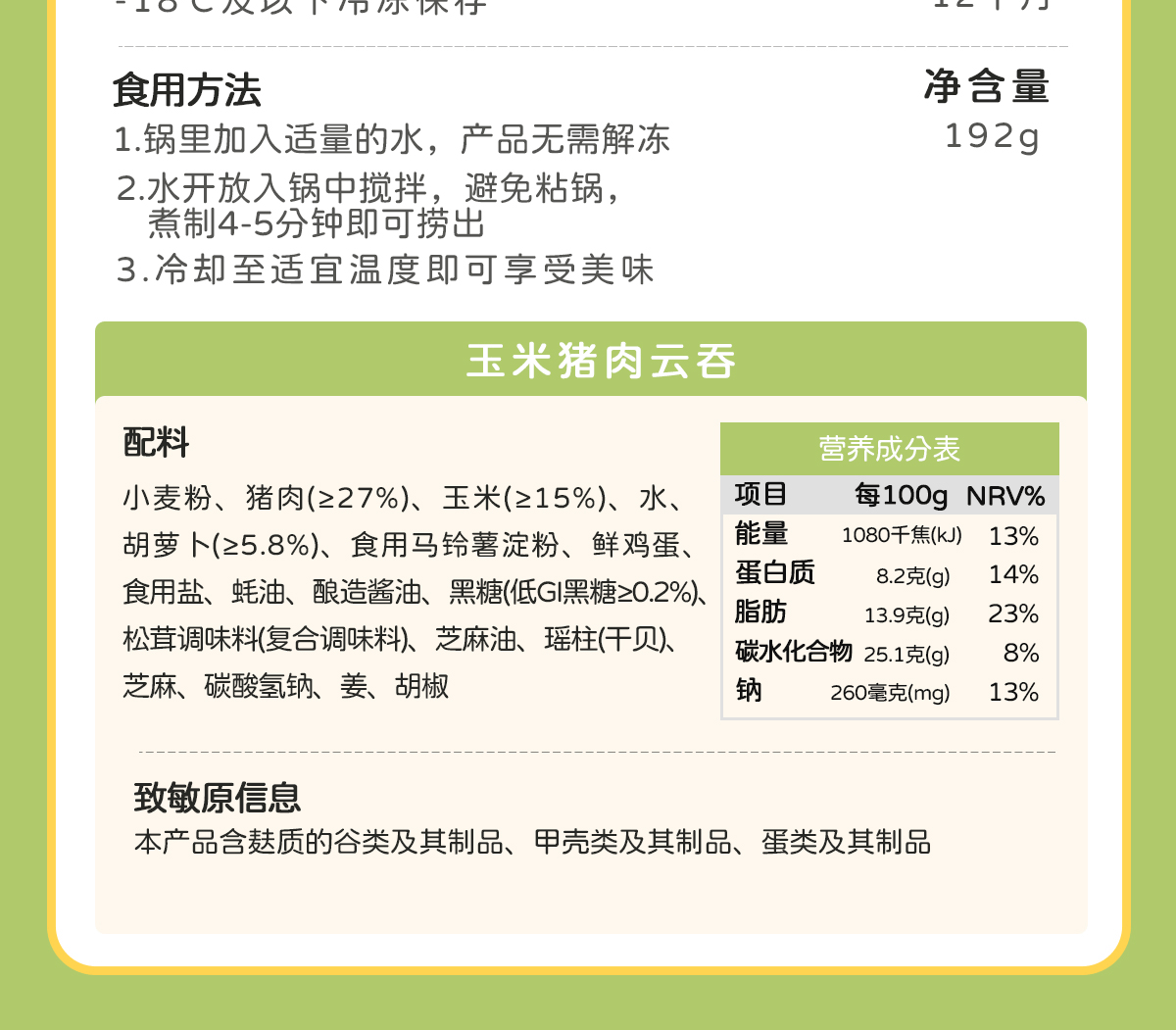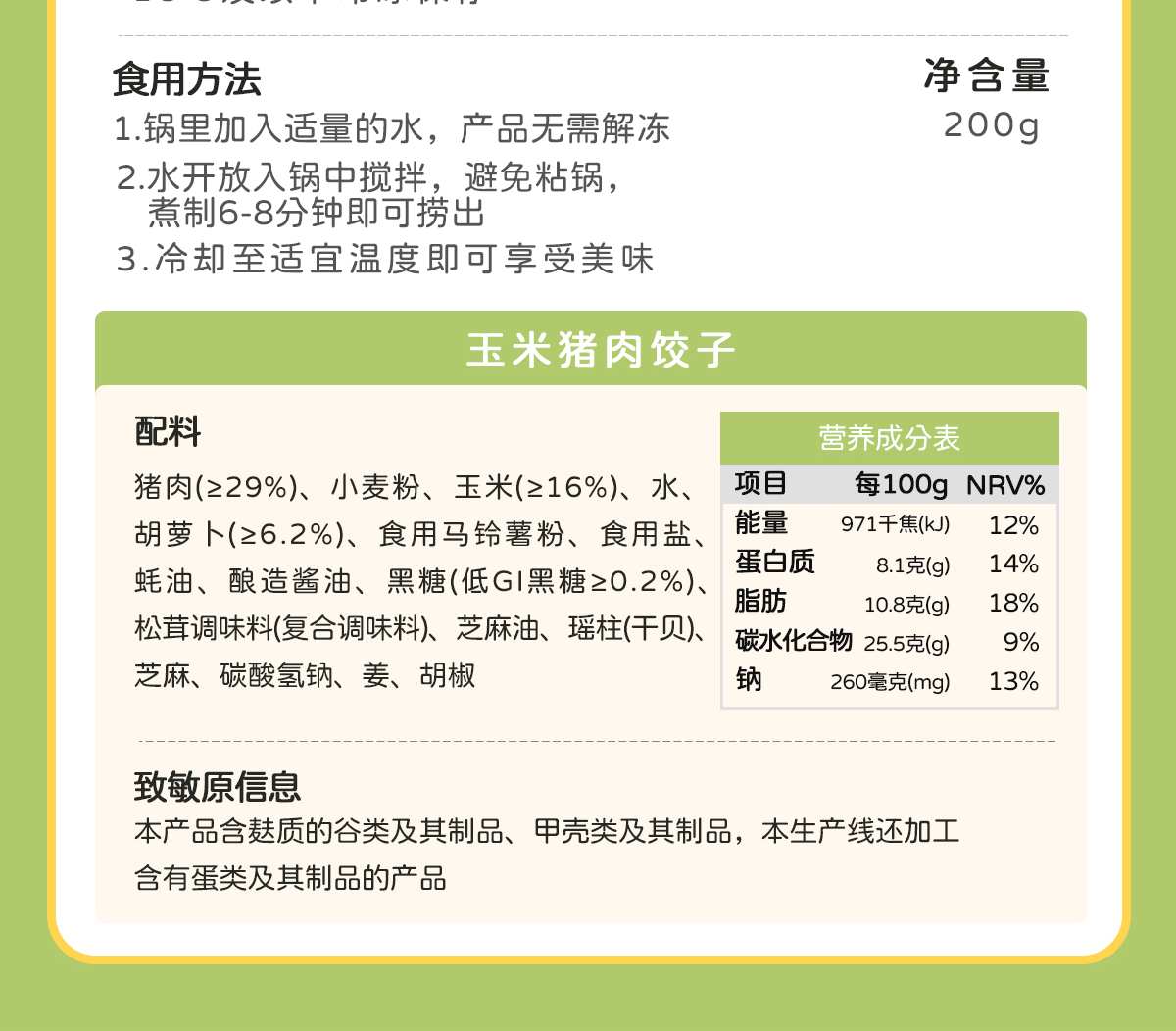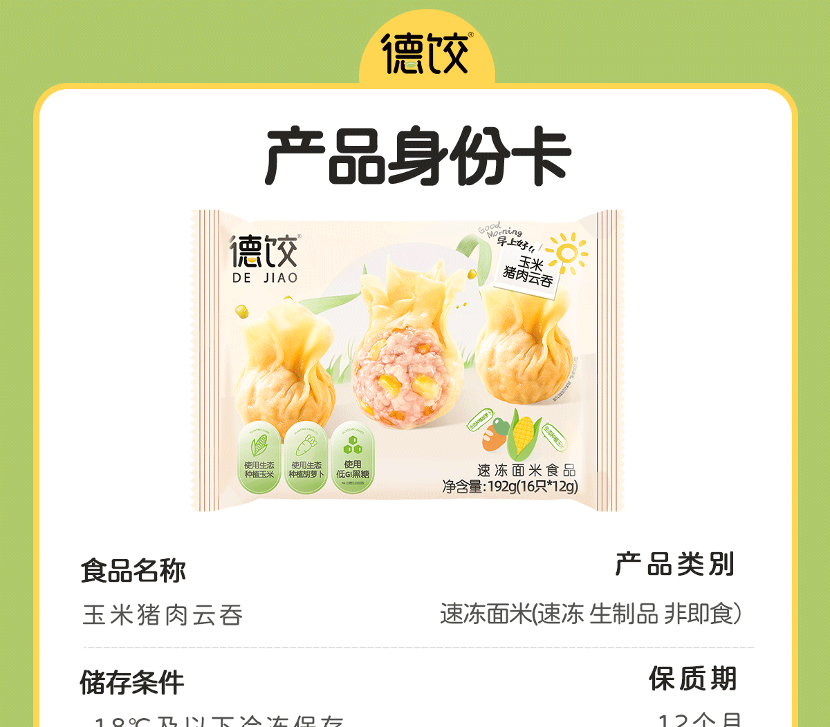 【品名】徳饺玉米猪肉饺子/云吞 【规格】200g/盒 【保质期】12个月 【储存方法】-18℃及以下冷冻保存 【包装】泡沫箱+保温袋+冰袋 【发货地】佛山/上海/河南 【发货快递】顺丰冷链 【不发货区域】甘肃、海南、黑龙江、吉林、内蒙古、宁夏、青海、西藏、新疆、云南、港澳台地区不发 【发货时效】48小时,节假日顺延 |