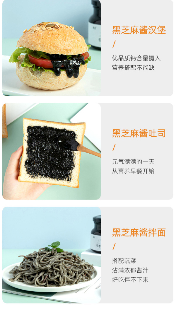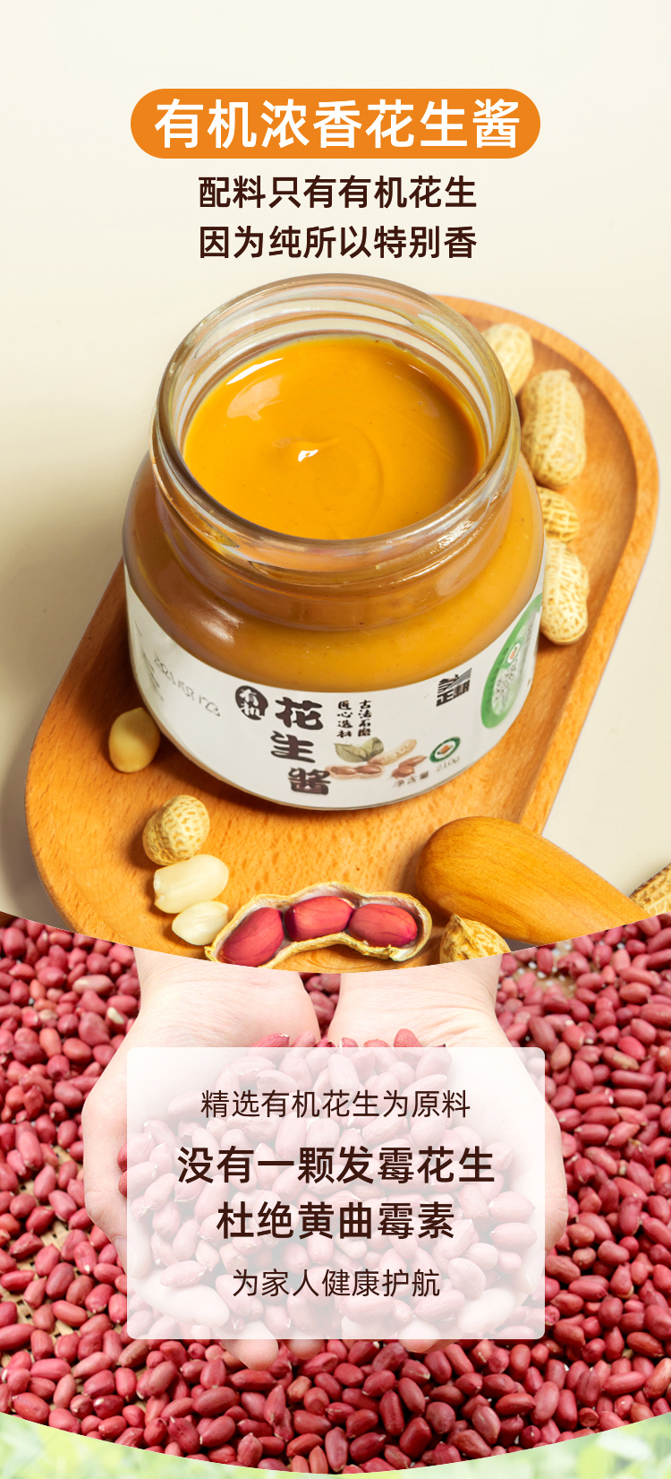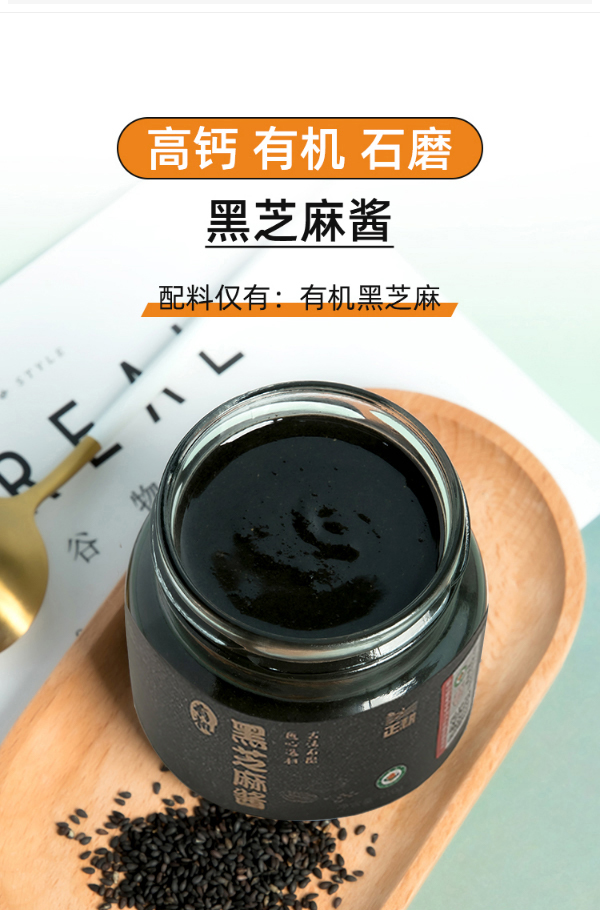 正耕有机黑芝麻酱 白芝麻酱 花生酱 采用低温石磨工艺 配料表干净 真正的有机好酱基地直邮