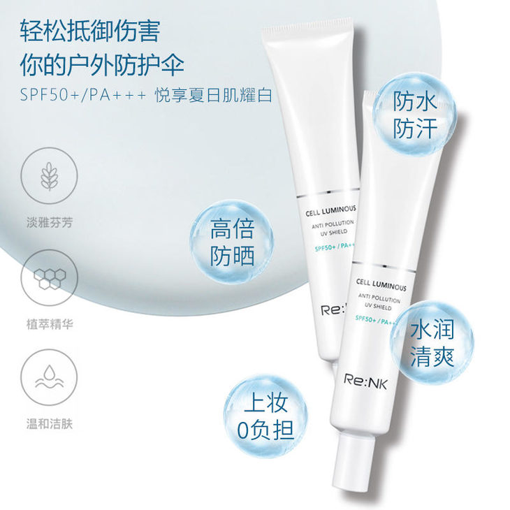 【节目同款】韩国RE:NK/丽人凯5G美白修护防晒乳液45ml SPF50+/PA+++ 防水隔离 提亮肤色 补水保湿 越晒越白 防晒美白双特征 我是大美人精选