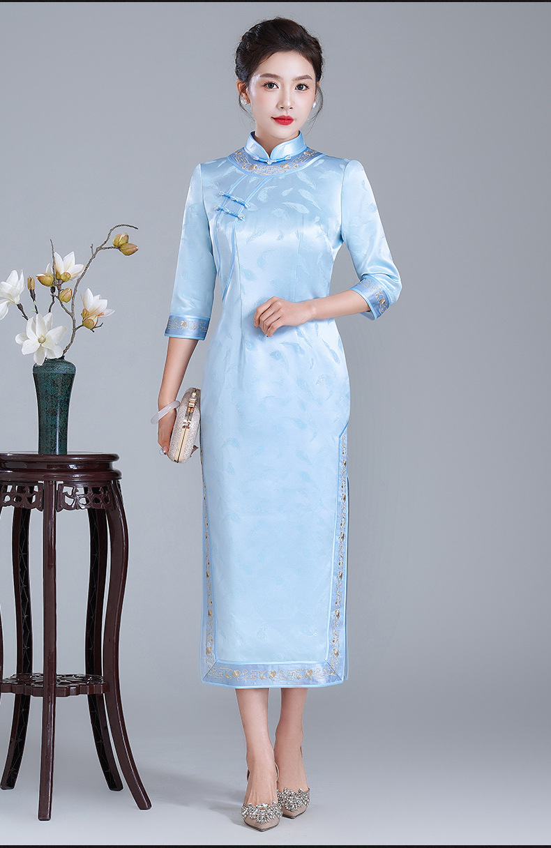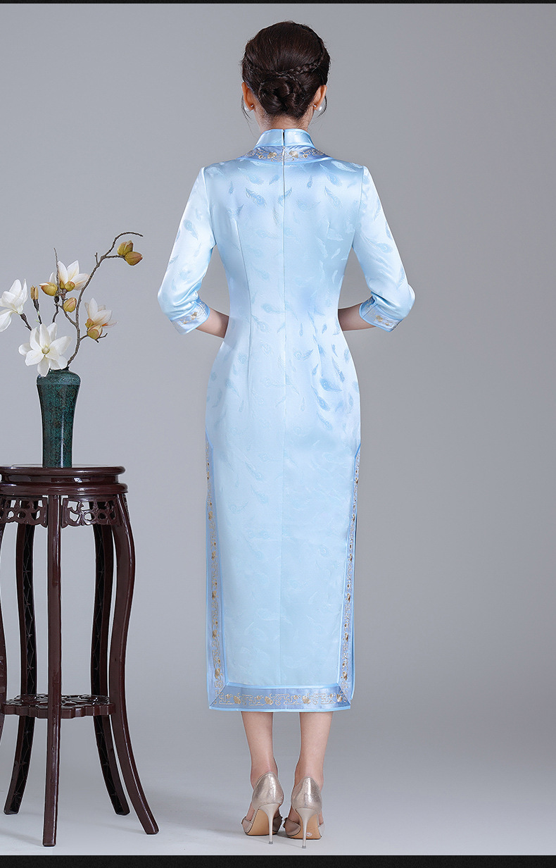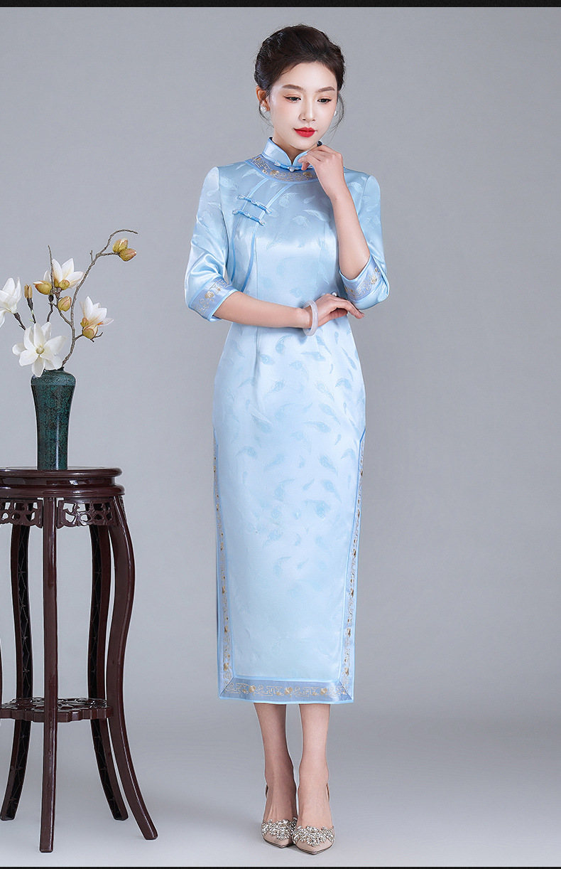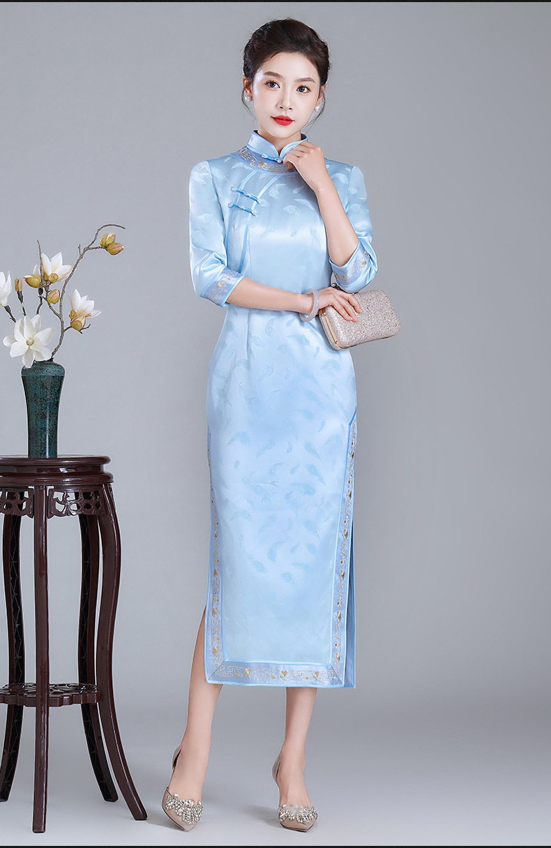 LHS-A34新款日常宴会旗袍 年轻款绣花醋酸礼服 秋季改良连衣裙女