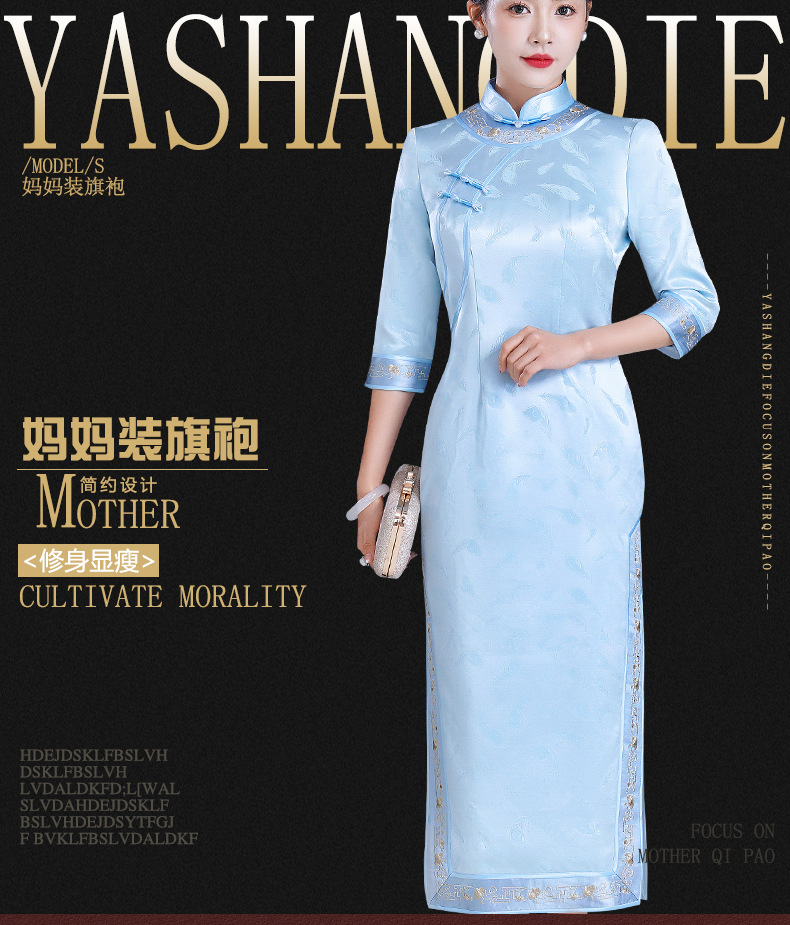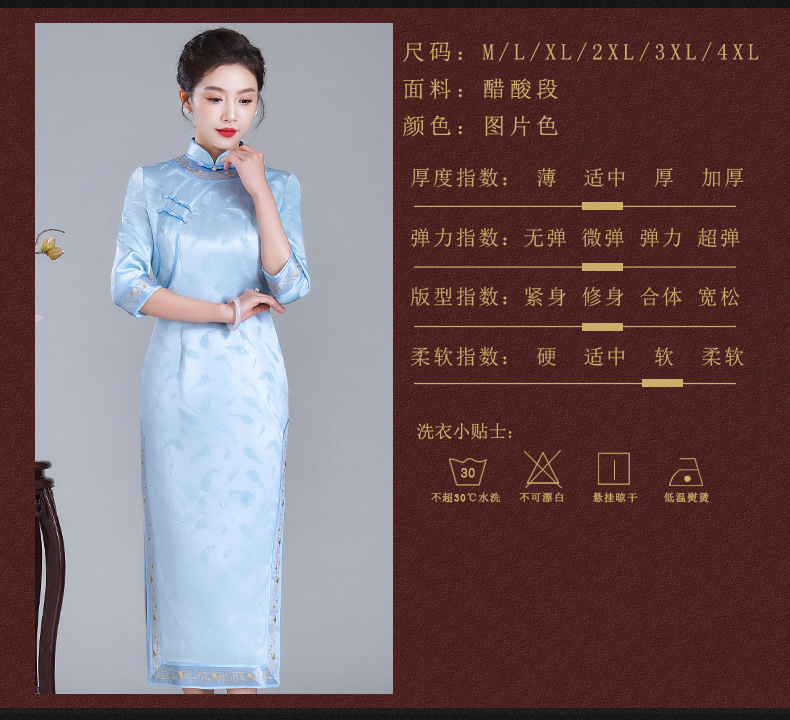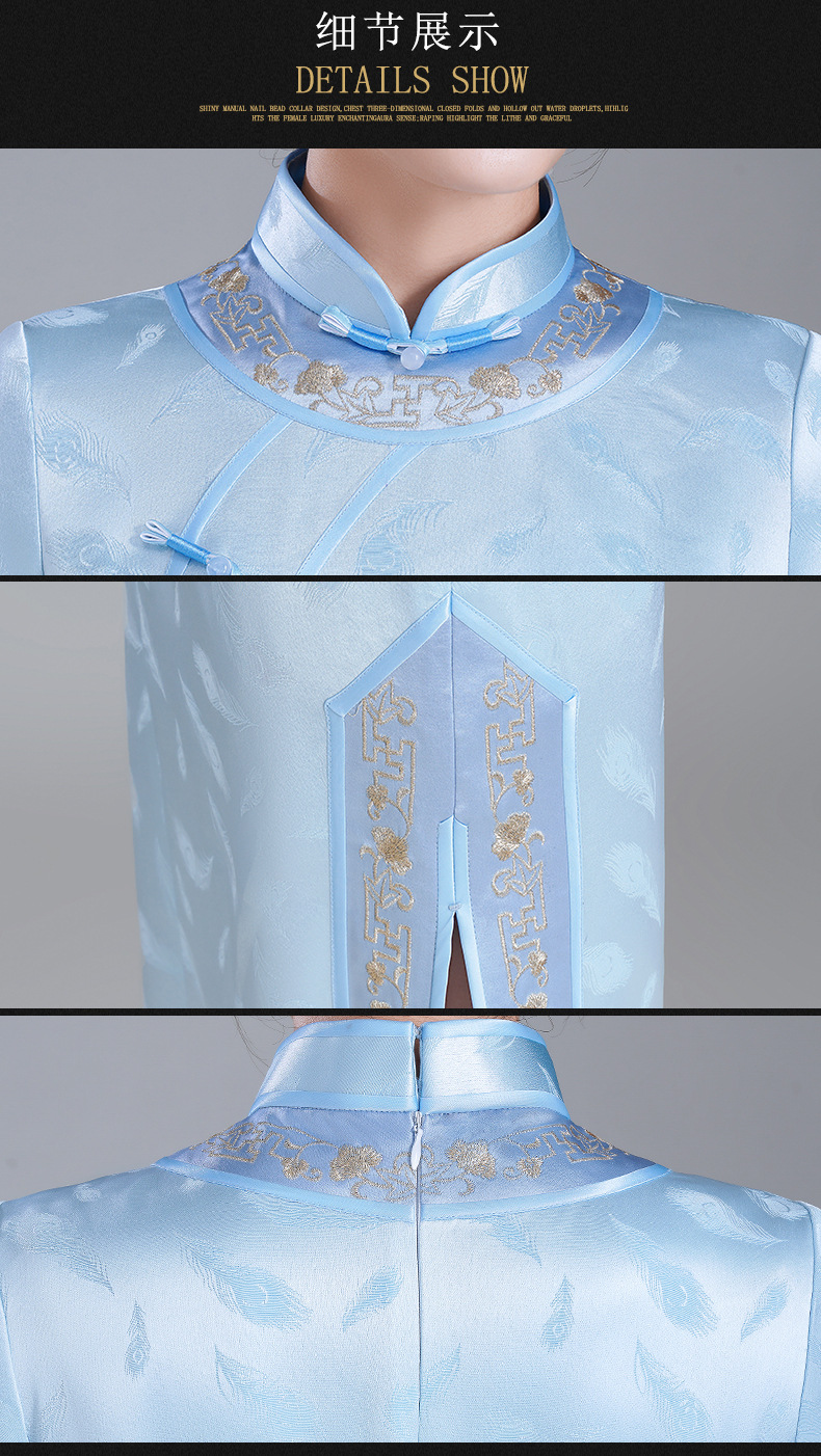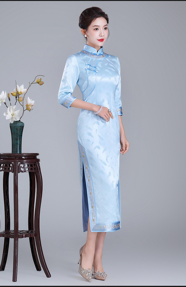 LHS-A34新款日常宴会旗袍 年轻款绣花醋酸礼服 秋季改良连衣裙女