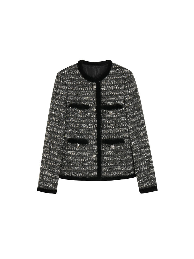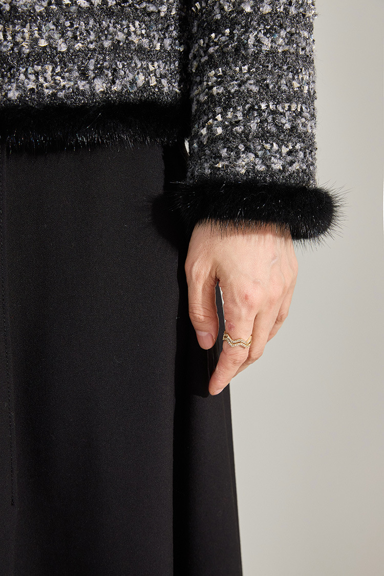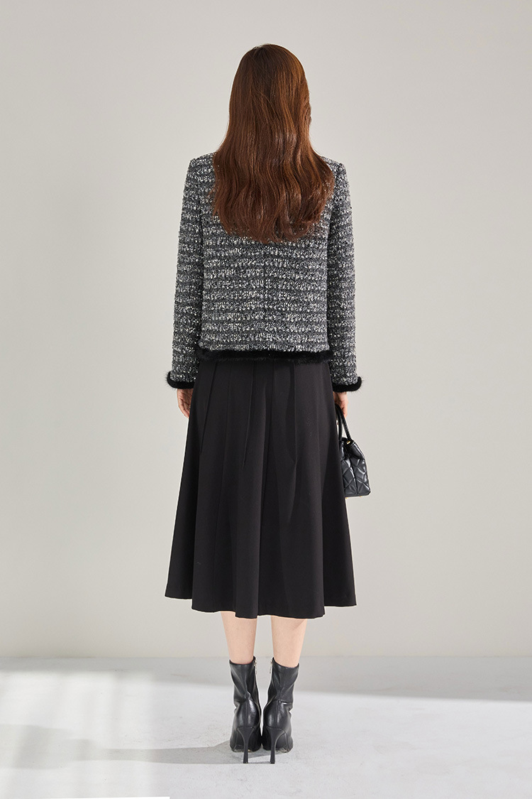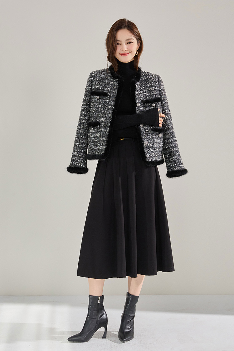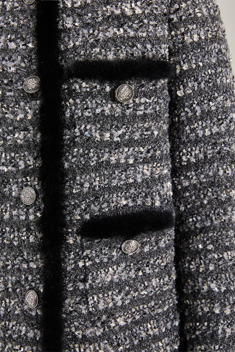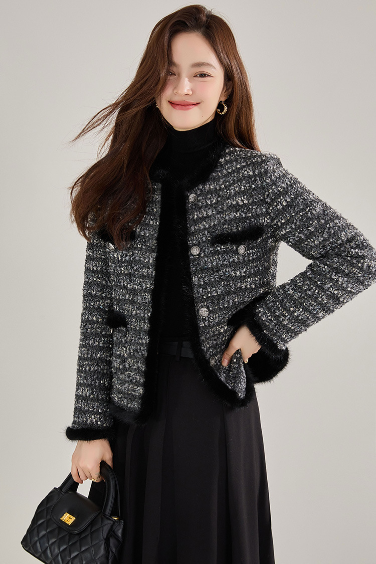 【高货sh】全新升级【铂金会员367/天猫489/差价122】(41808)洛诗琳秋冬小香风羊毛粗花呢水貂毛拼接白鸭绒羽绒服外套