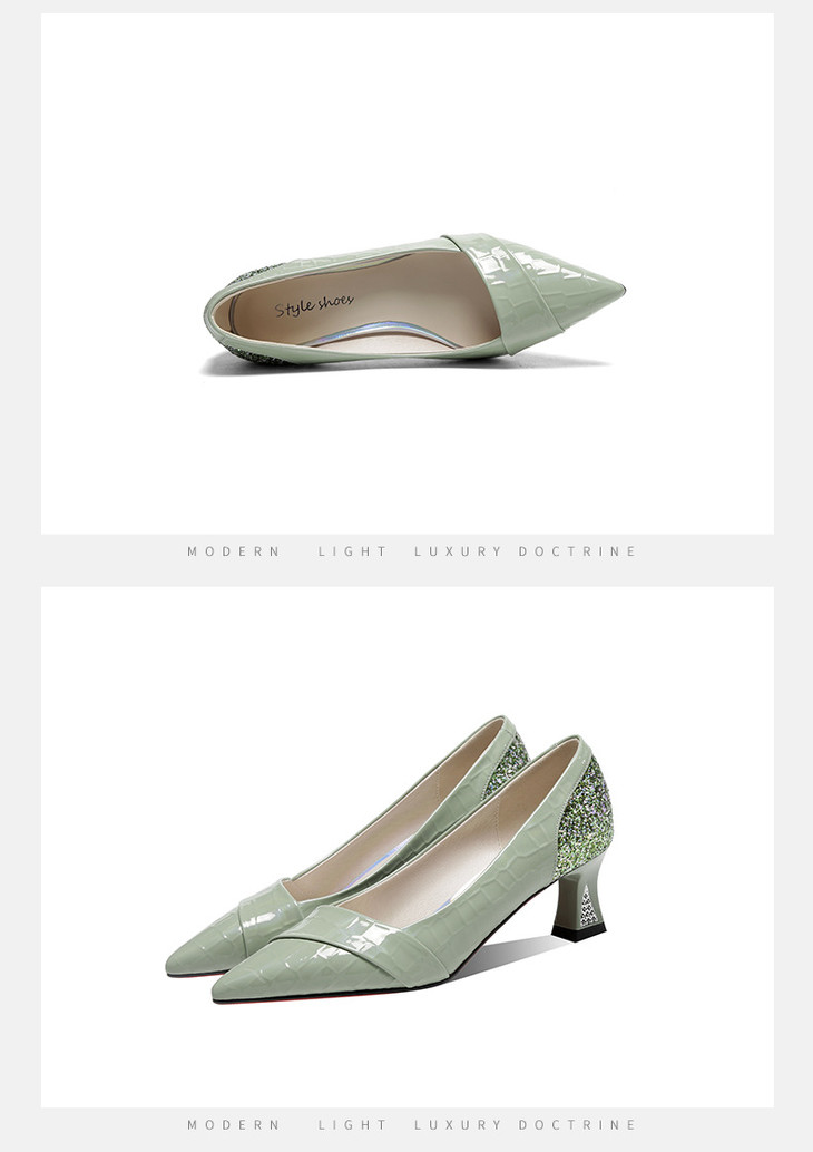 OLD-GLS428aa新款时尚气质漆皮尖头粗跟浅口高跟鞋