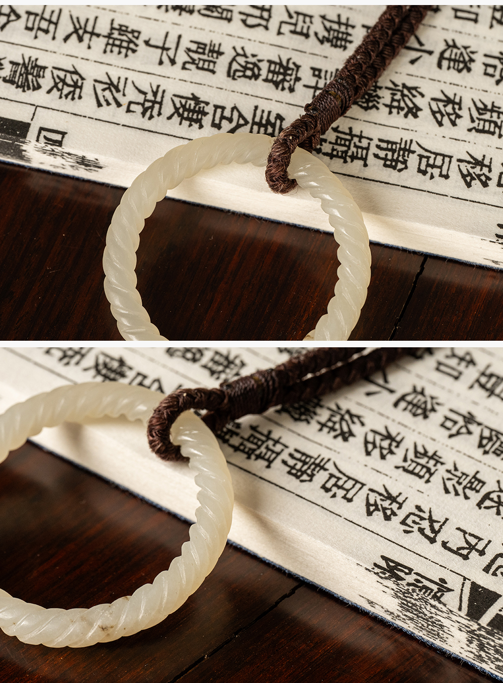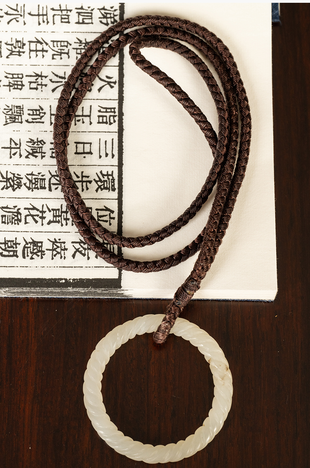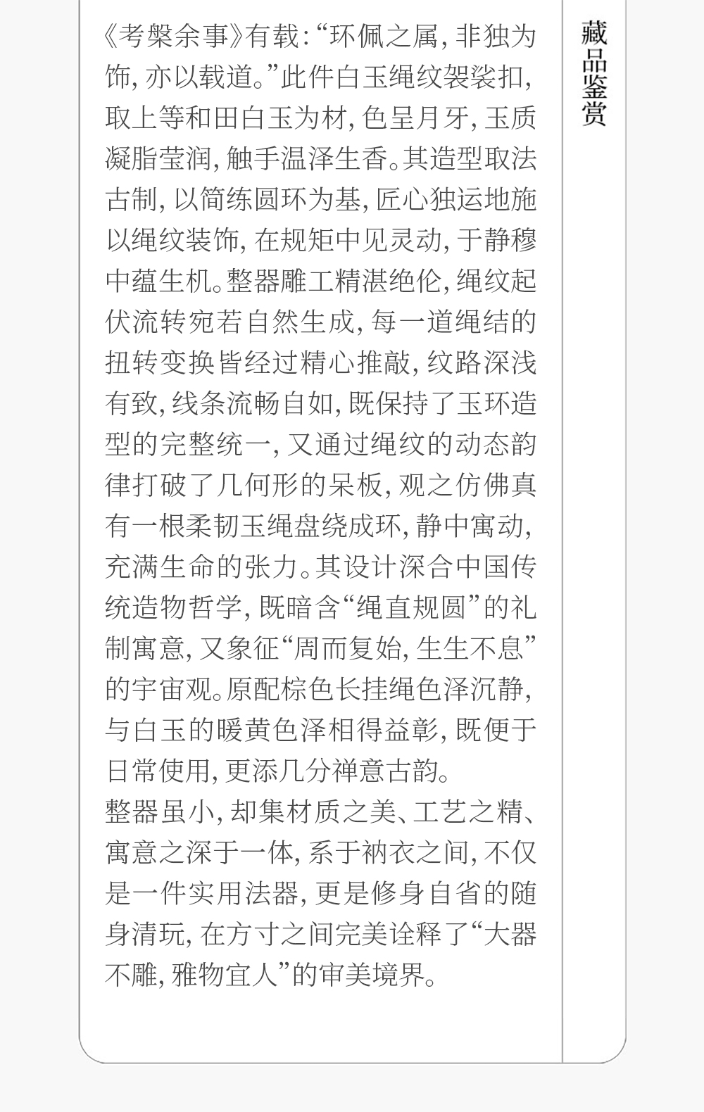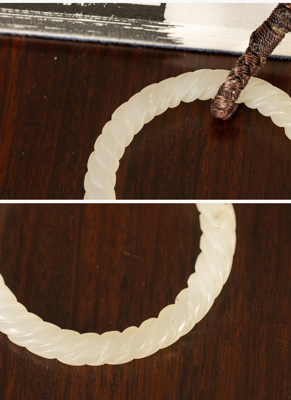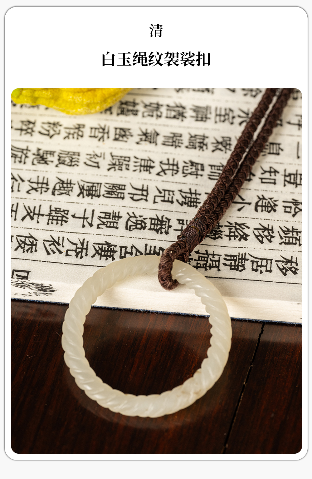 清 白玉绳纹袈裟扣