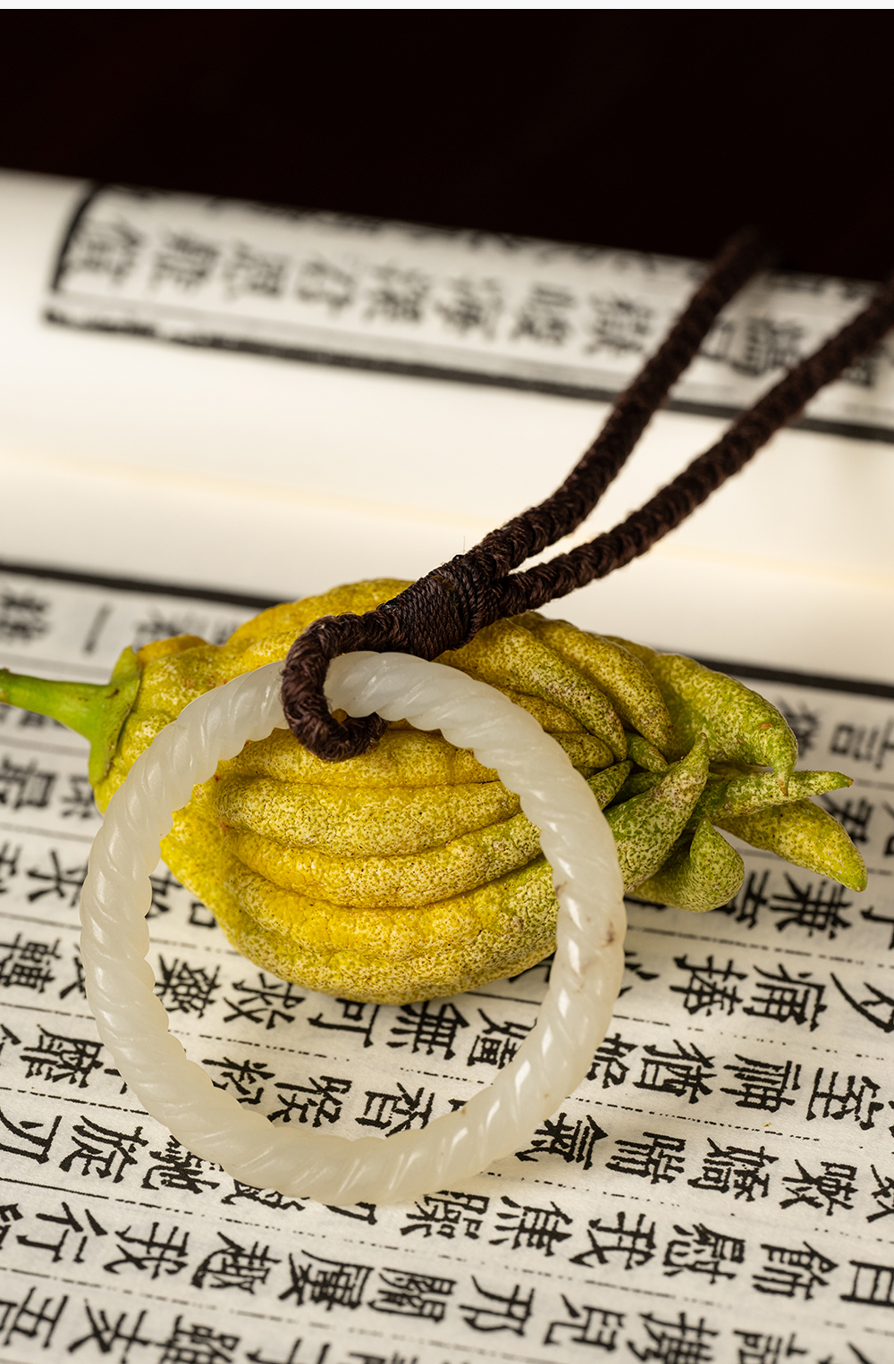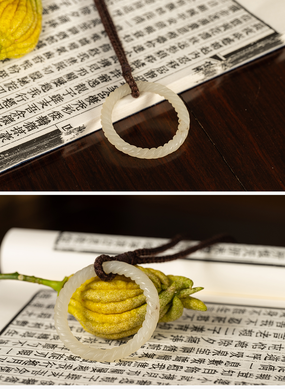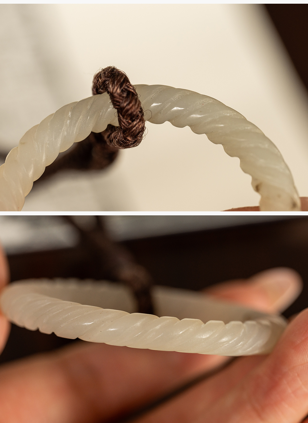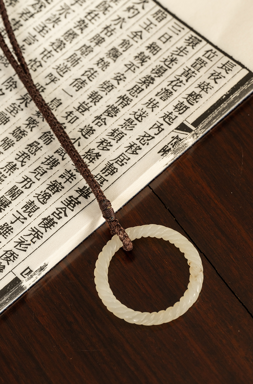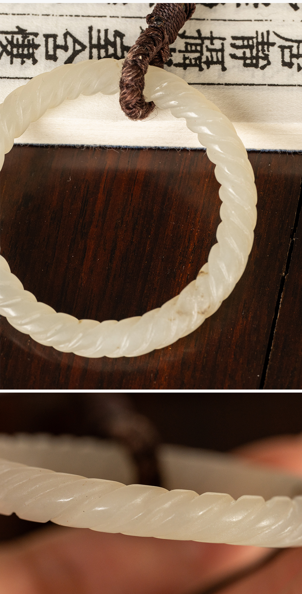 清 白玉绳纹袈裟扣