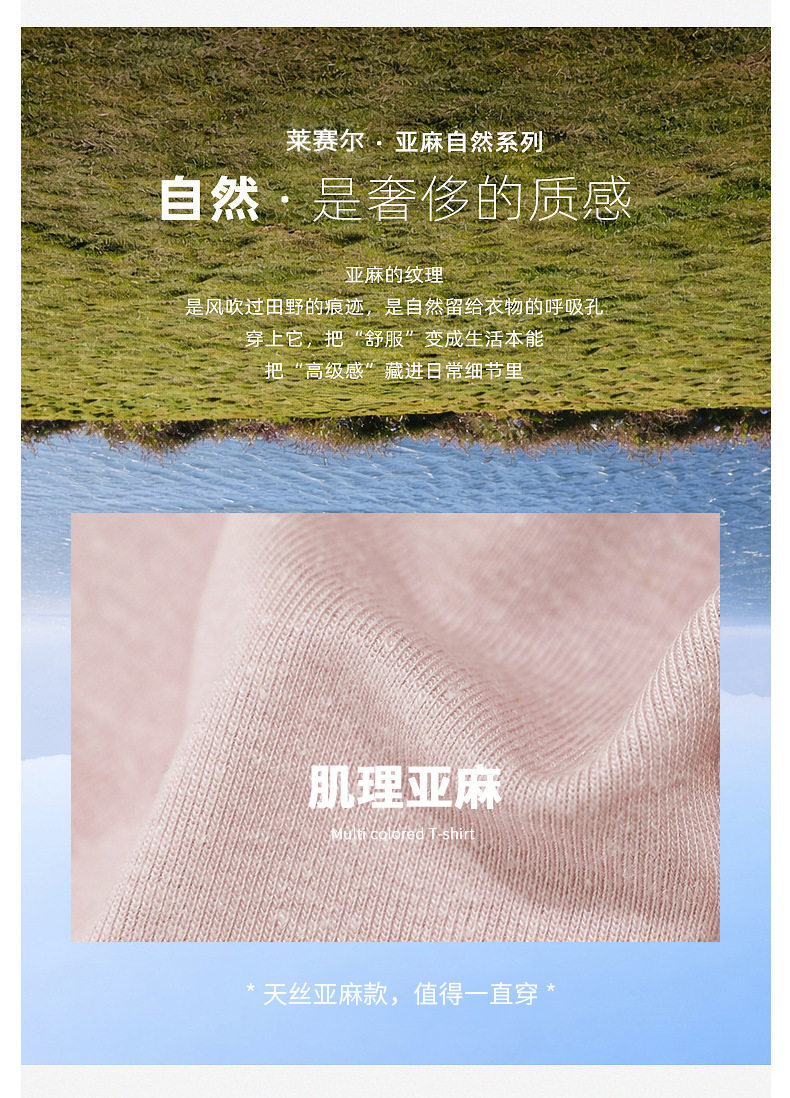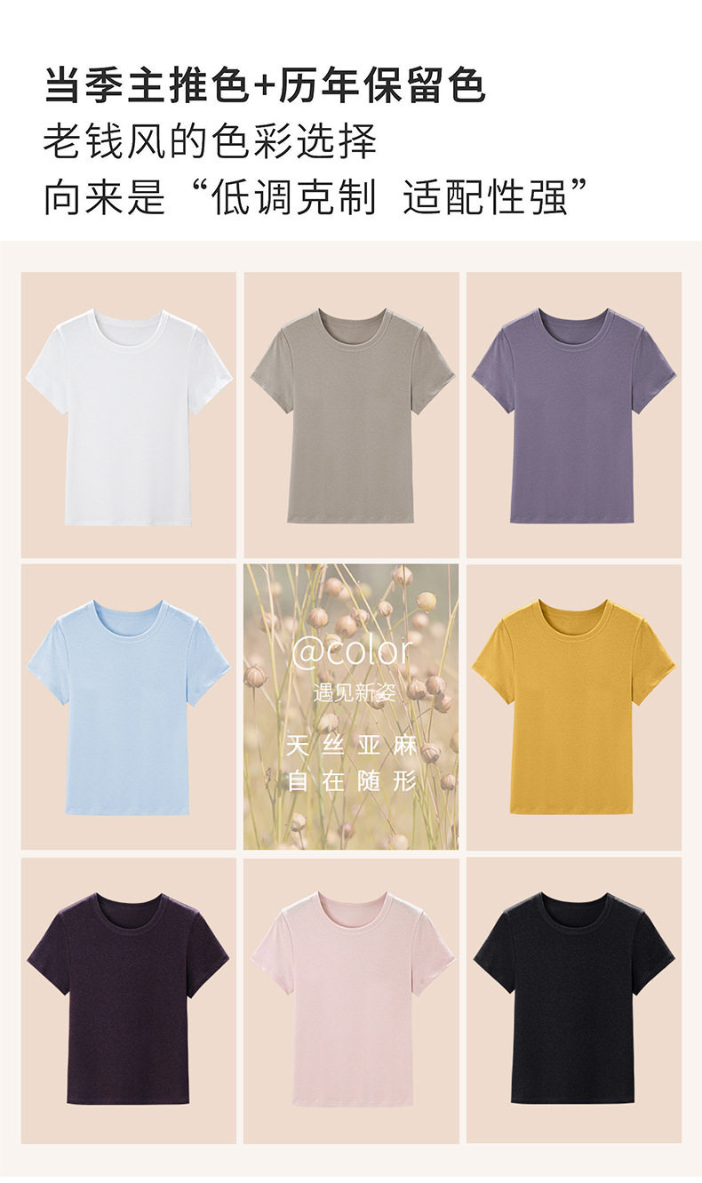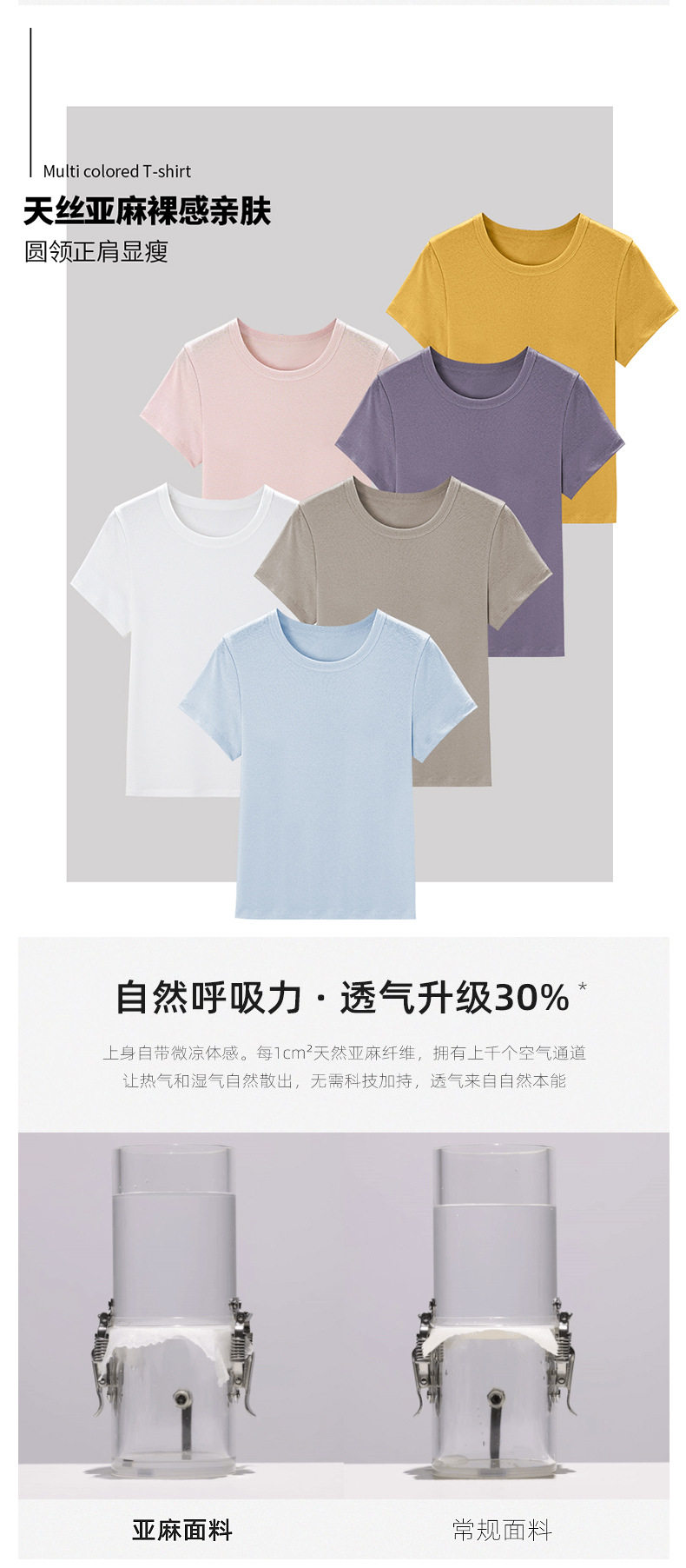 「自j」全新升级洛【铂金会员128/天猫169/差价41】(95238)诗琳莱赛尔天丝亚麻T恤女2026新款纯色圆领正肩短袖上衣
